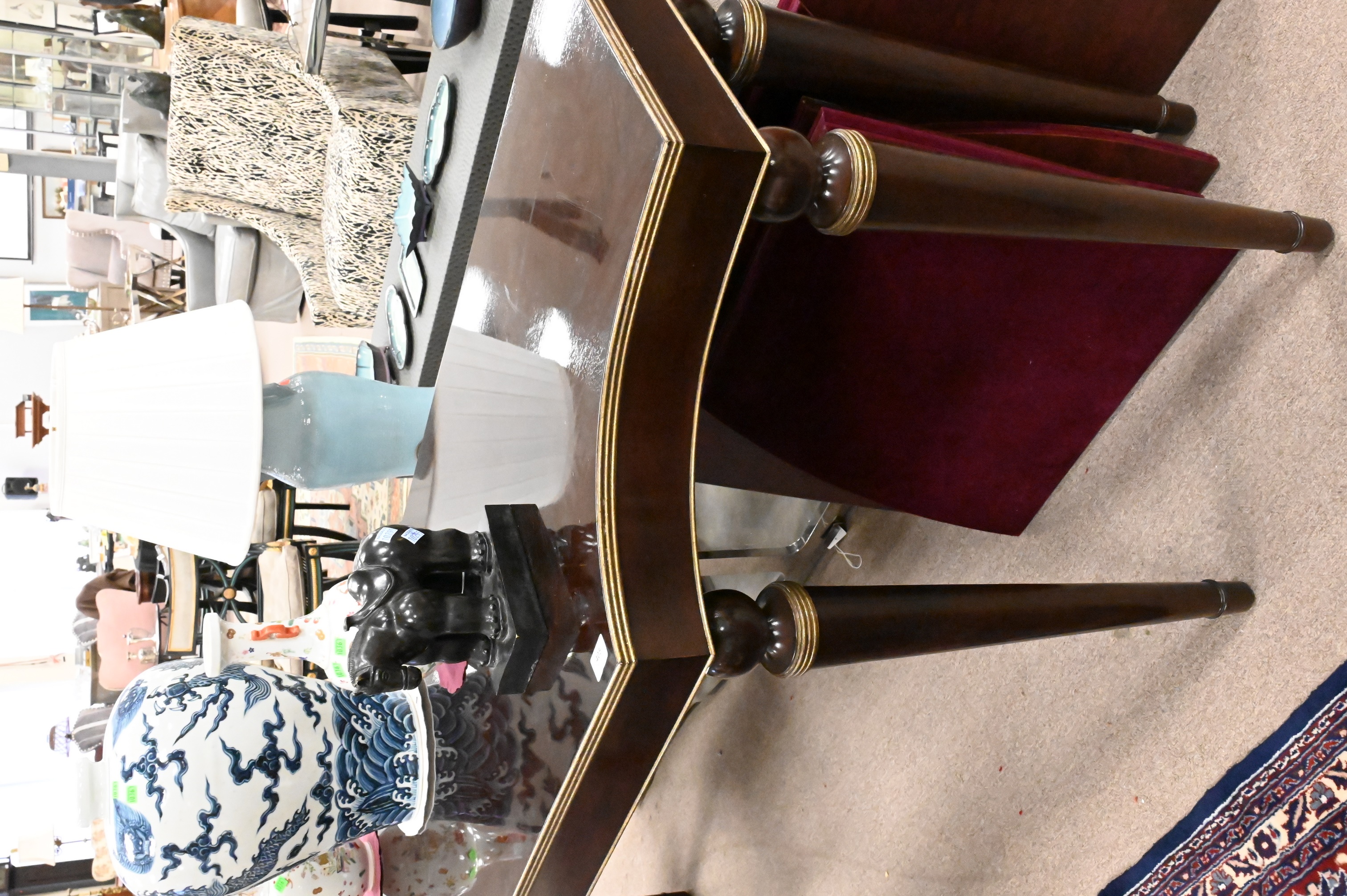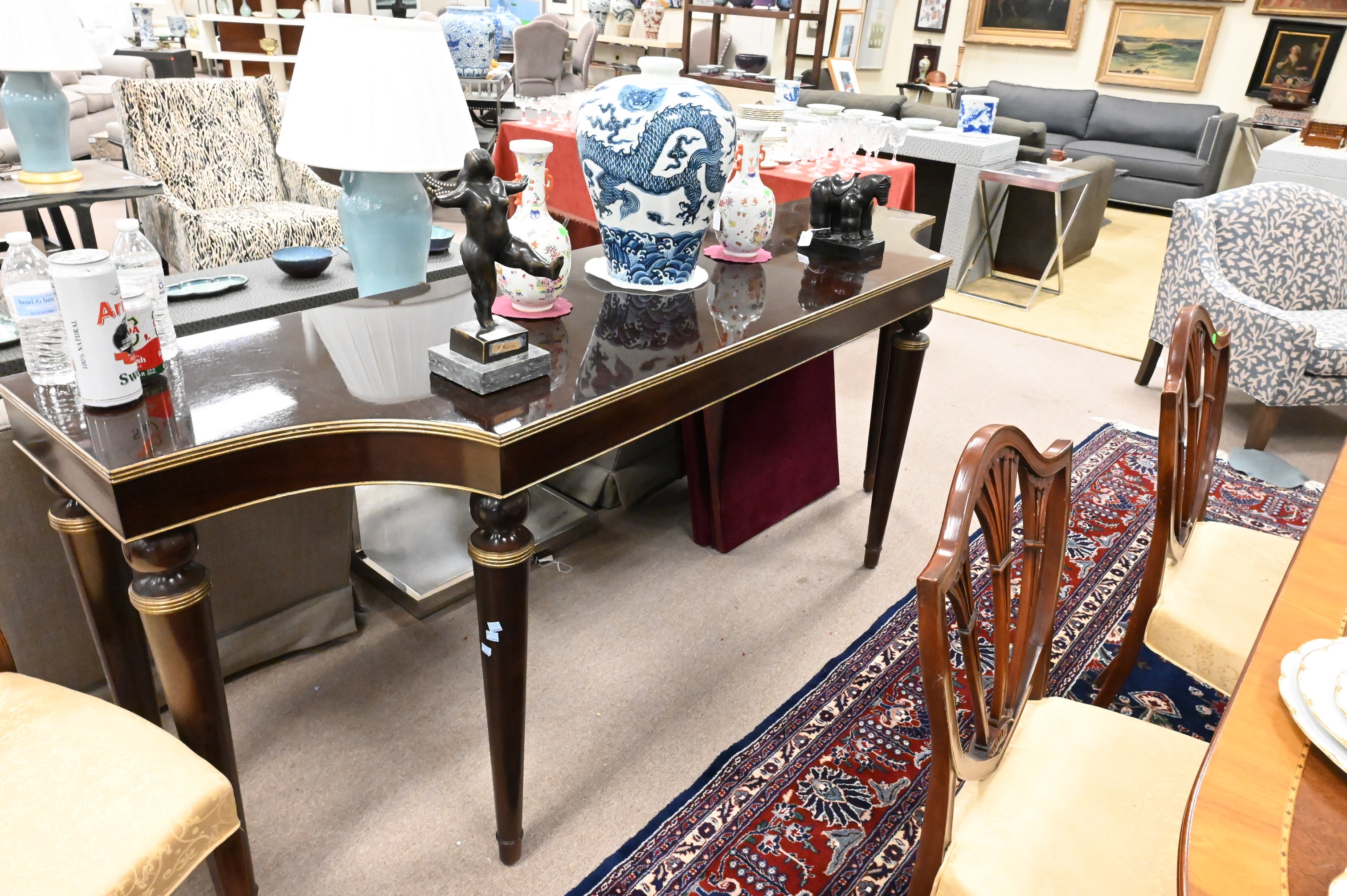 with gilt accents, marked Baker Furniture, retails for $5,995