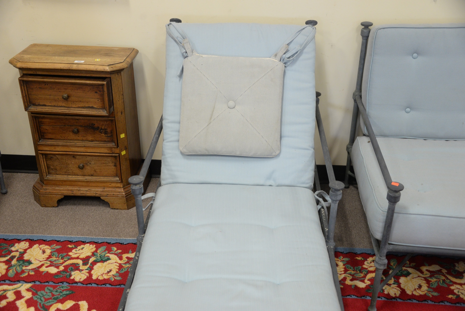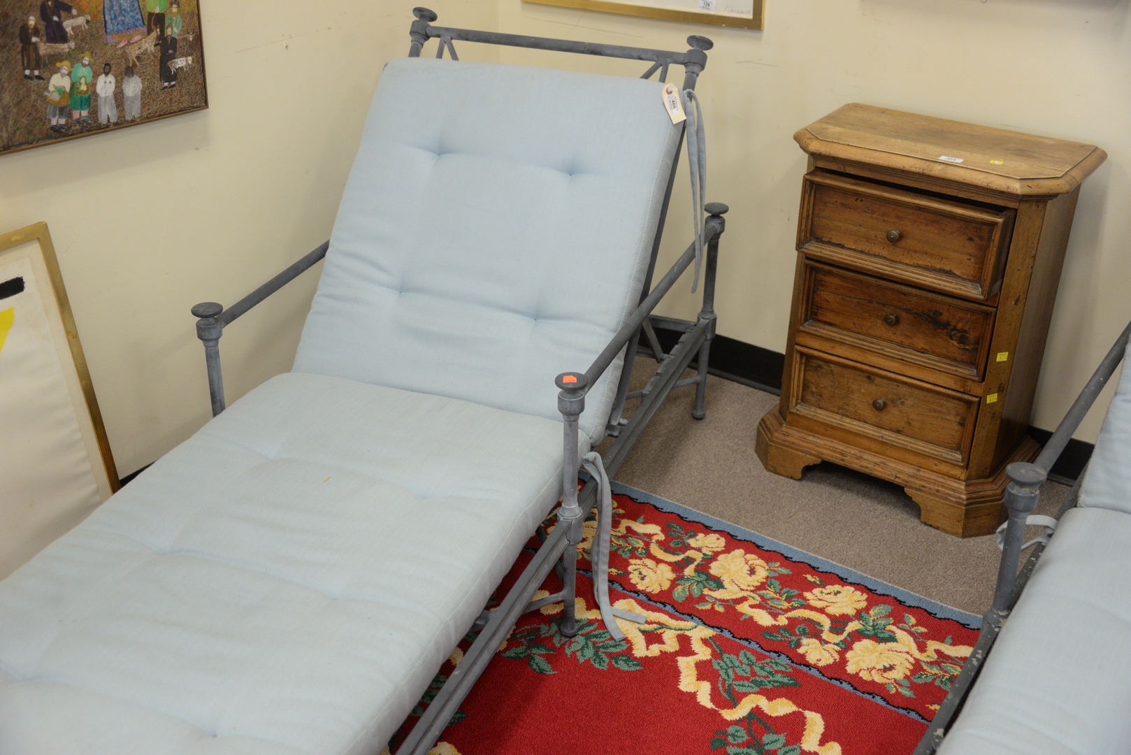 Lot 405: Pair of Restoration Hardware Chaise Lounges with upholstered cushions, width 27 1/2 inches, length 70 inches.