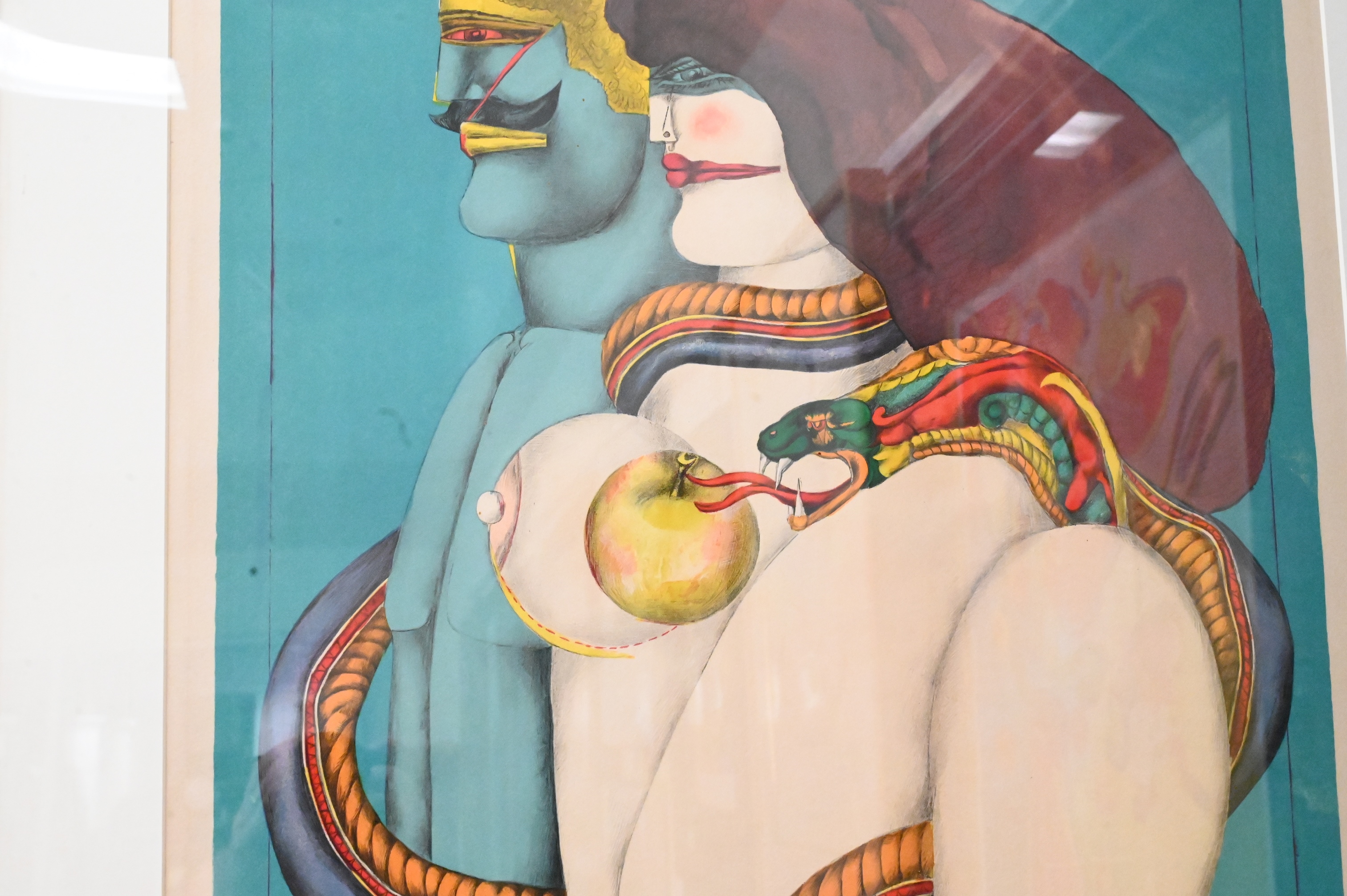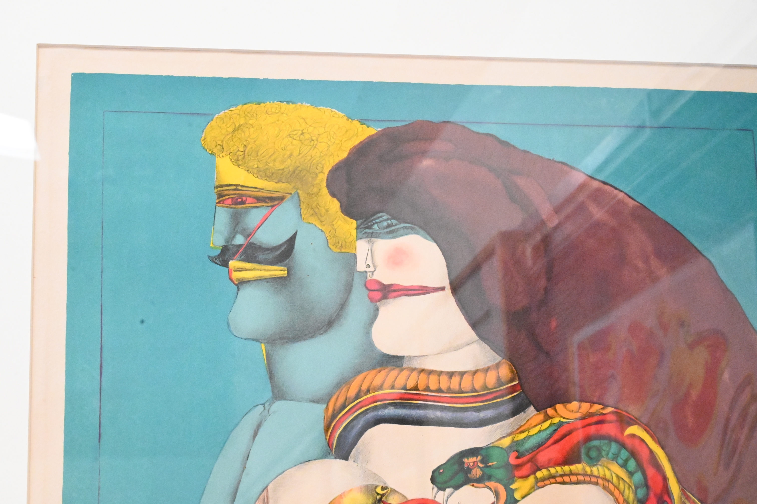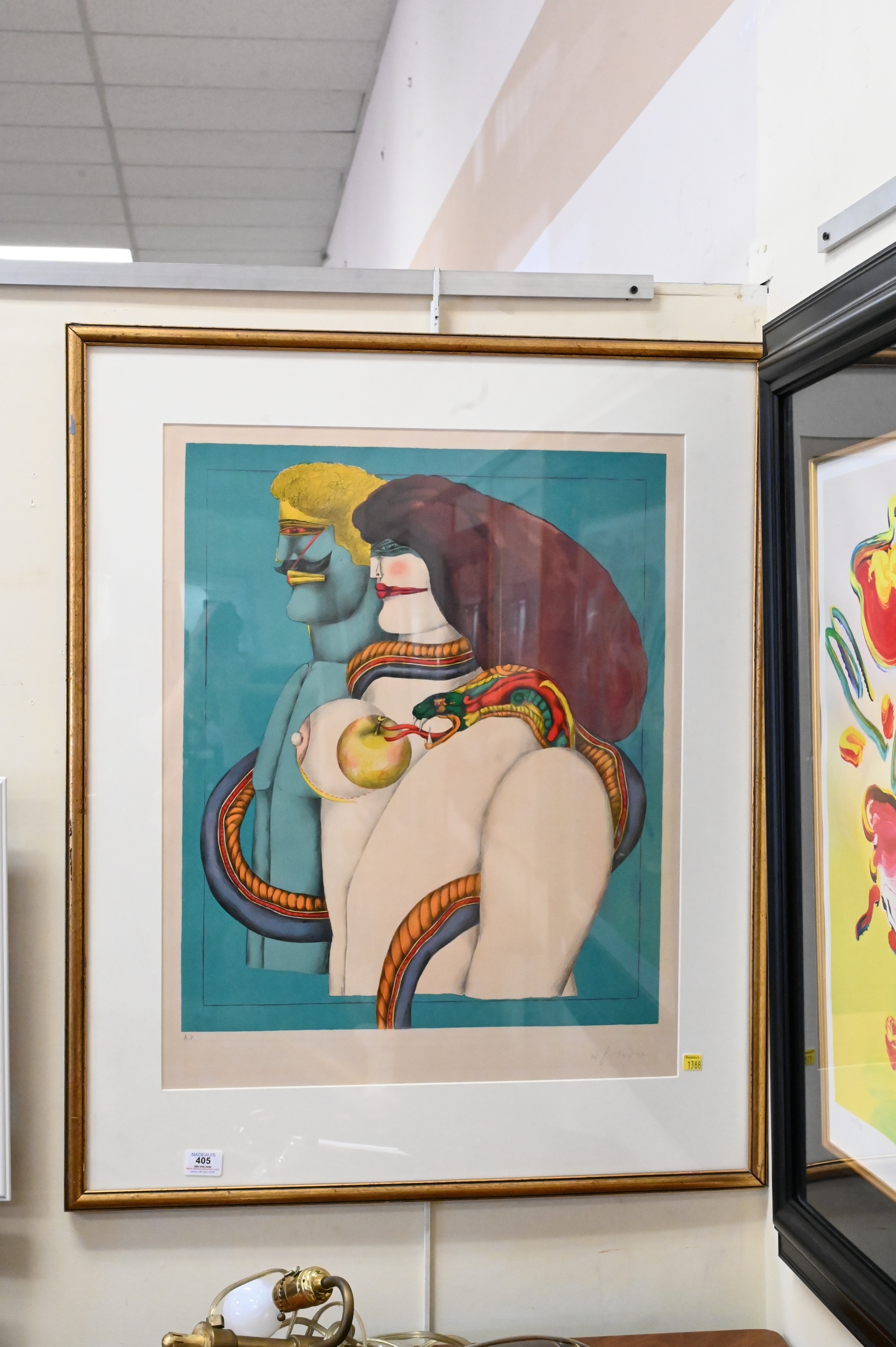 Richard Lindner (1901 – 1978), colored lithograph, “Adam and Eve”, pencil signed artist proof, 27″ x 21 1/2″.
