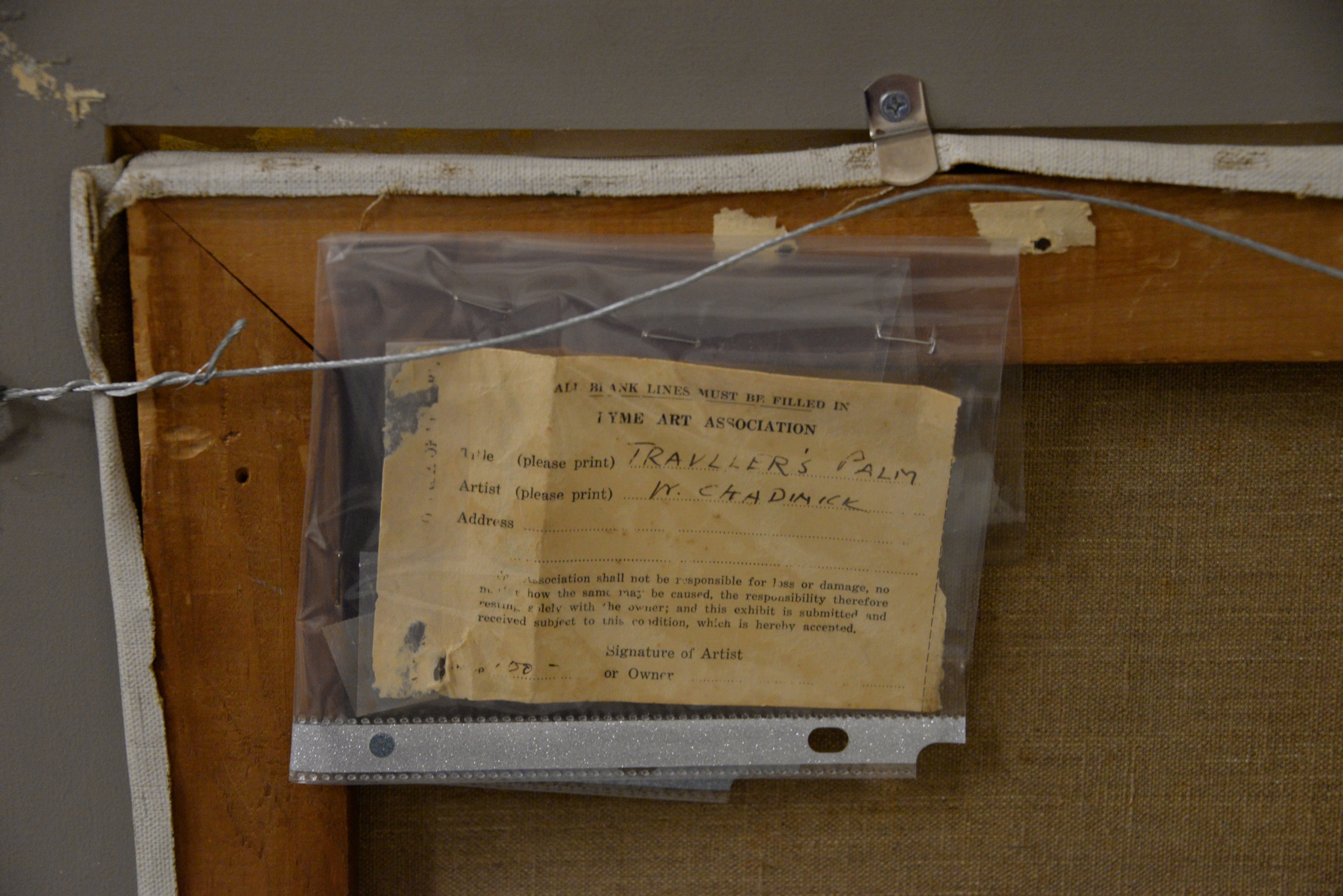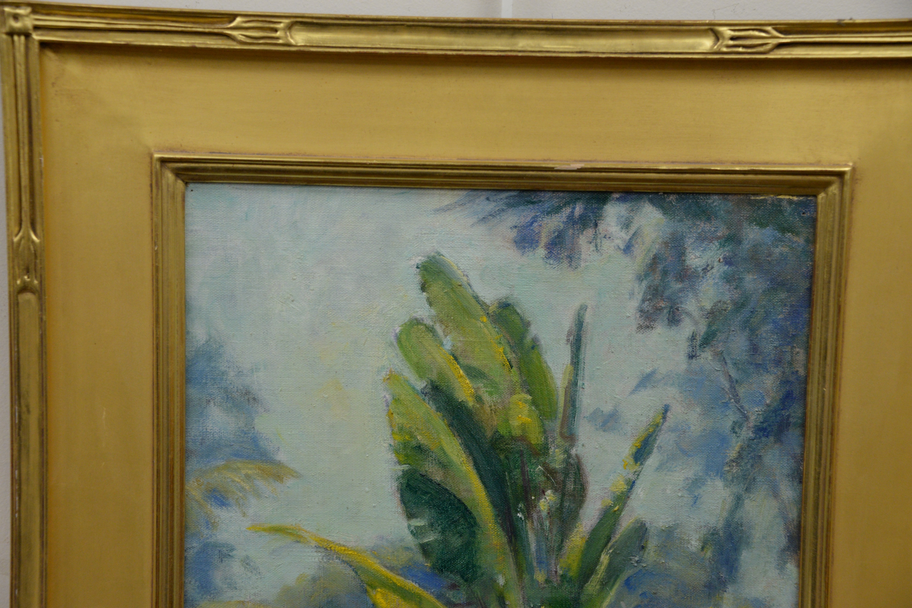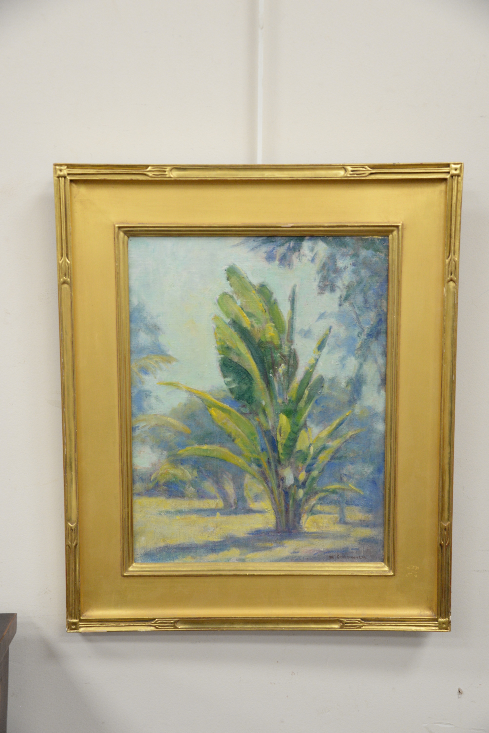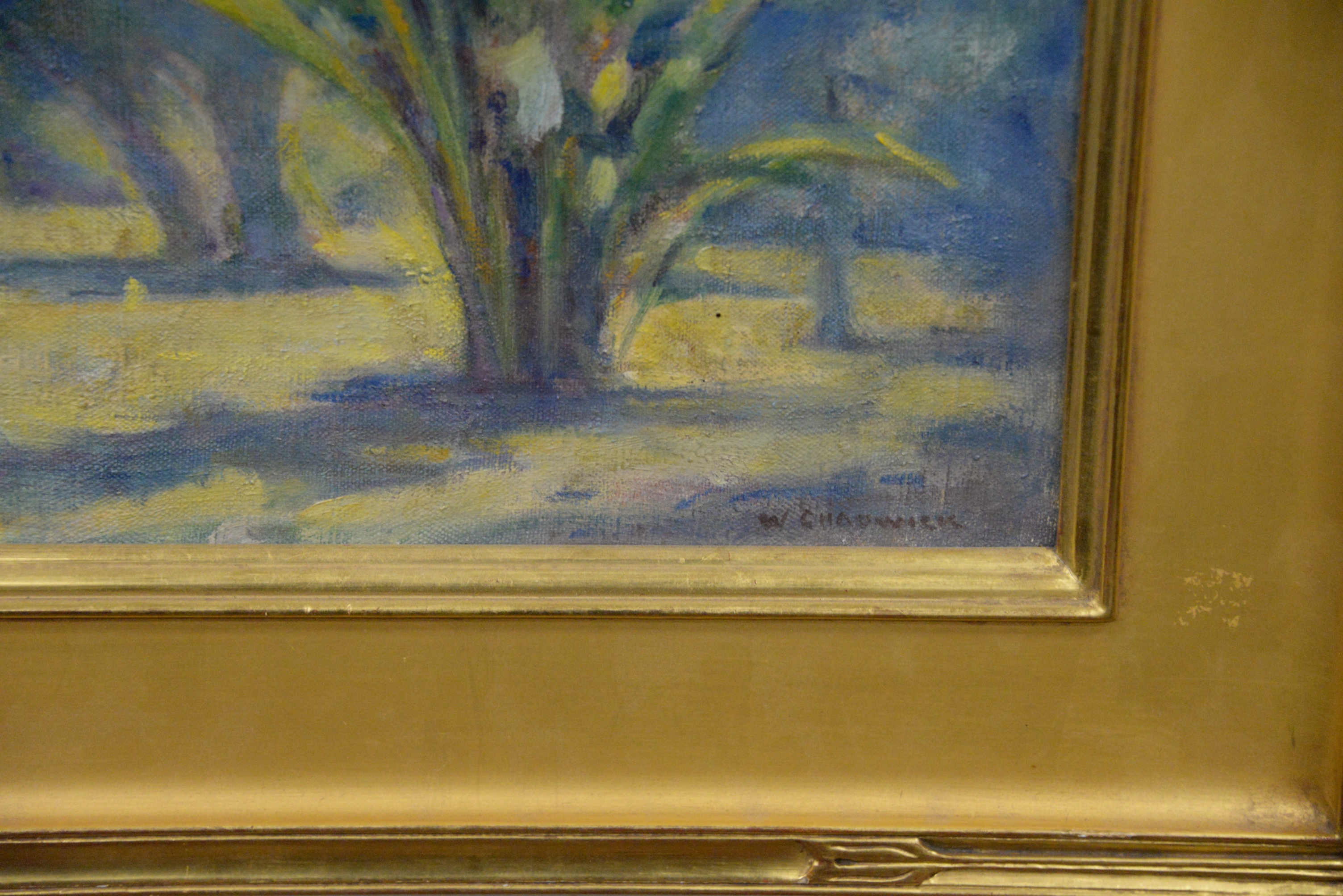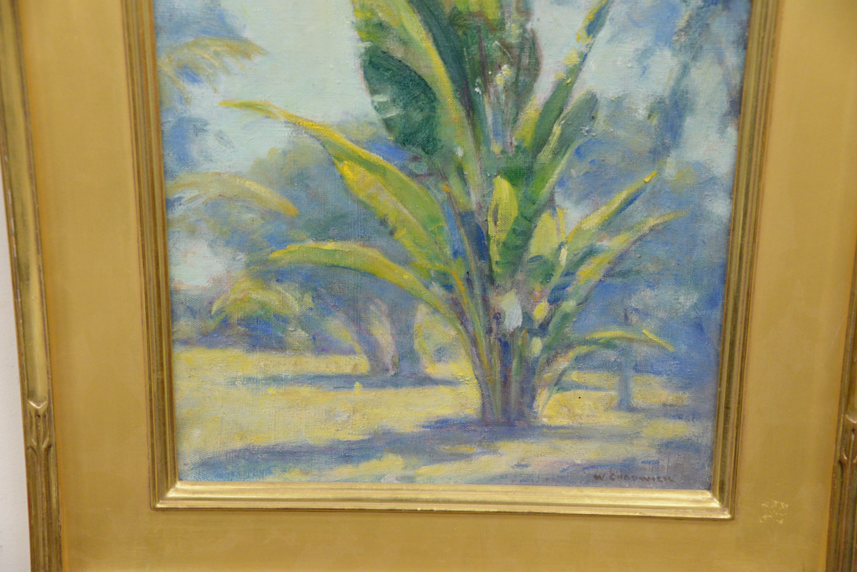 William Chadwick (American, 1879 – 1962) “Traveler’s Palm”, Florida signed lower right “W. Chadwick” 18 1/4″ x 19 1/7 inches original Lyme Art Association label on back.