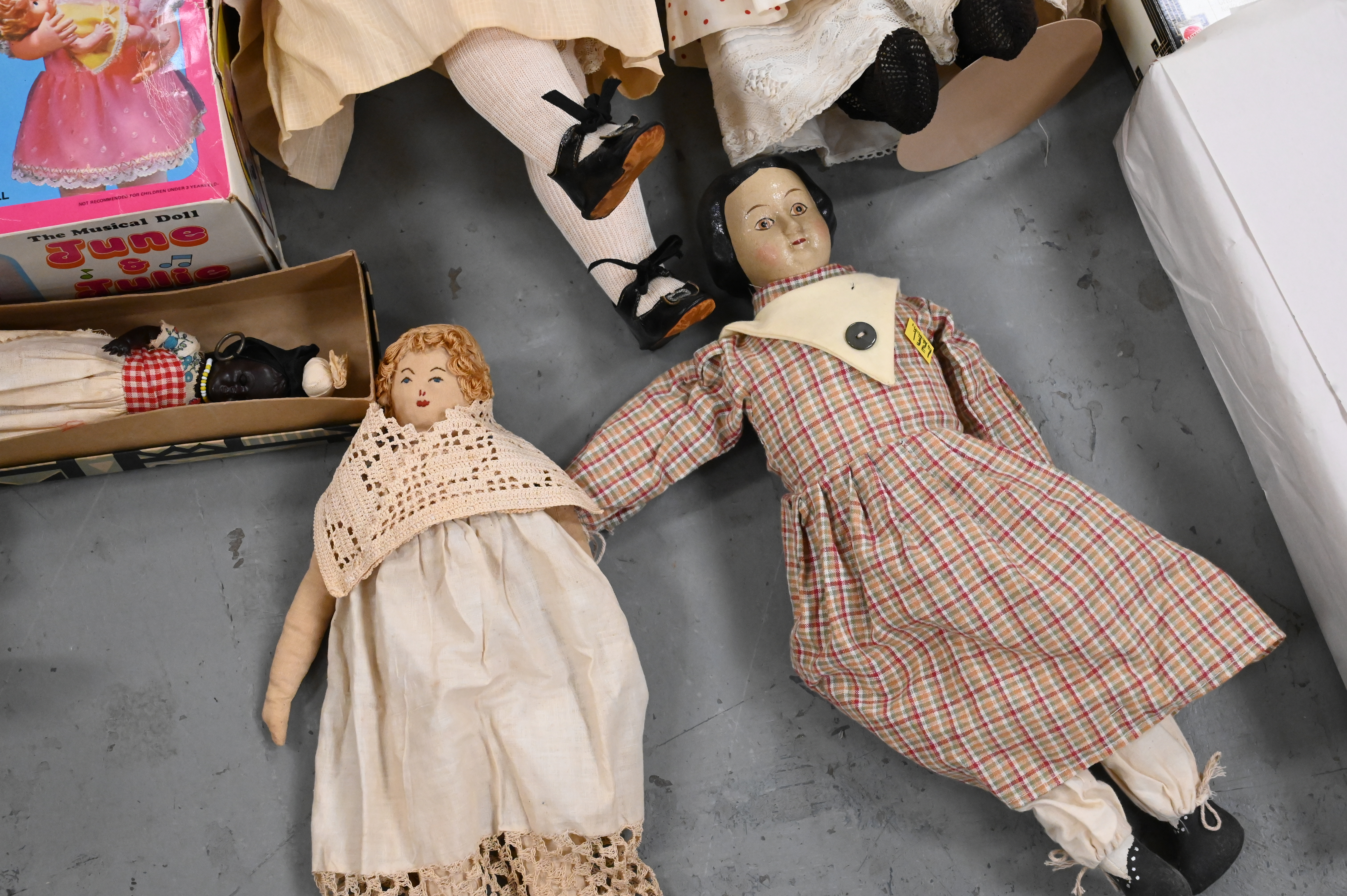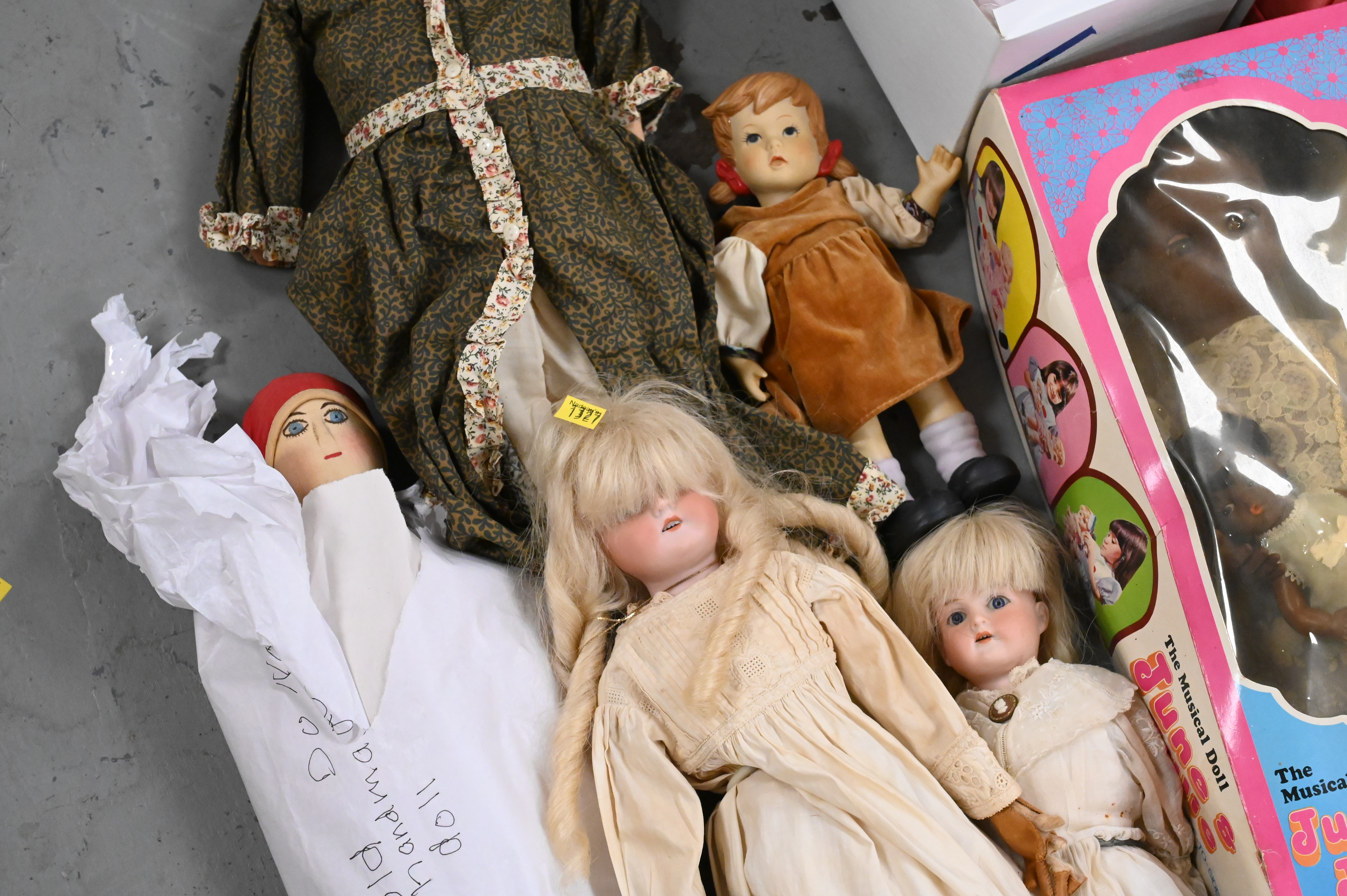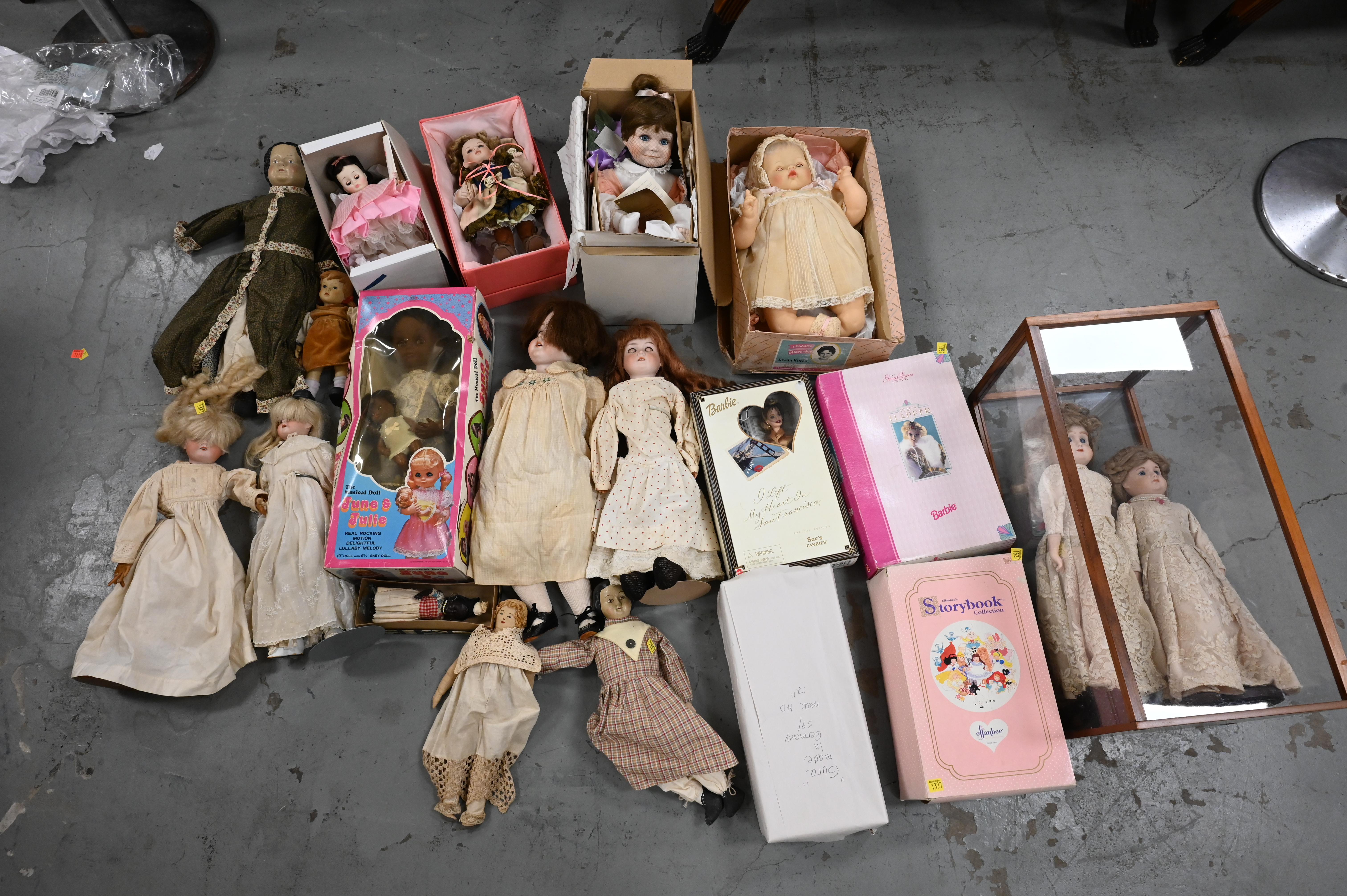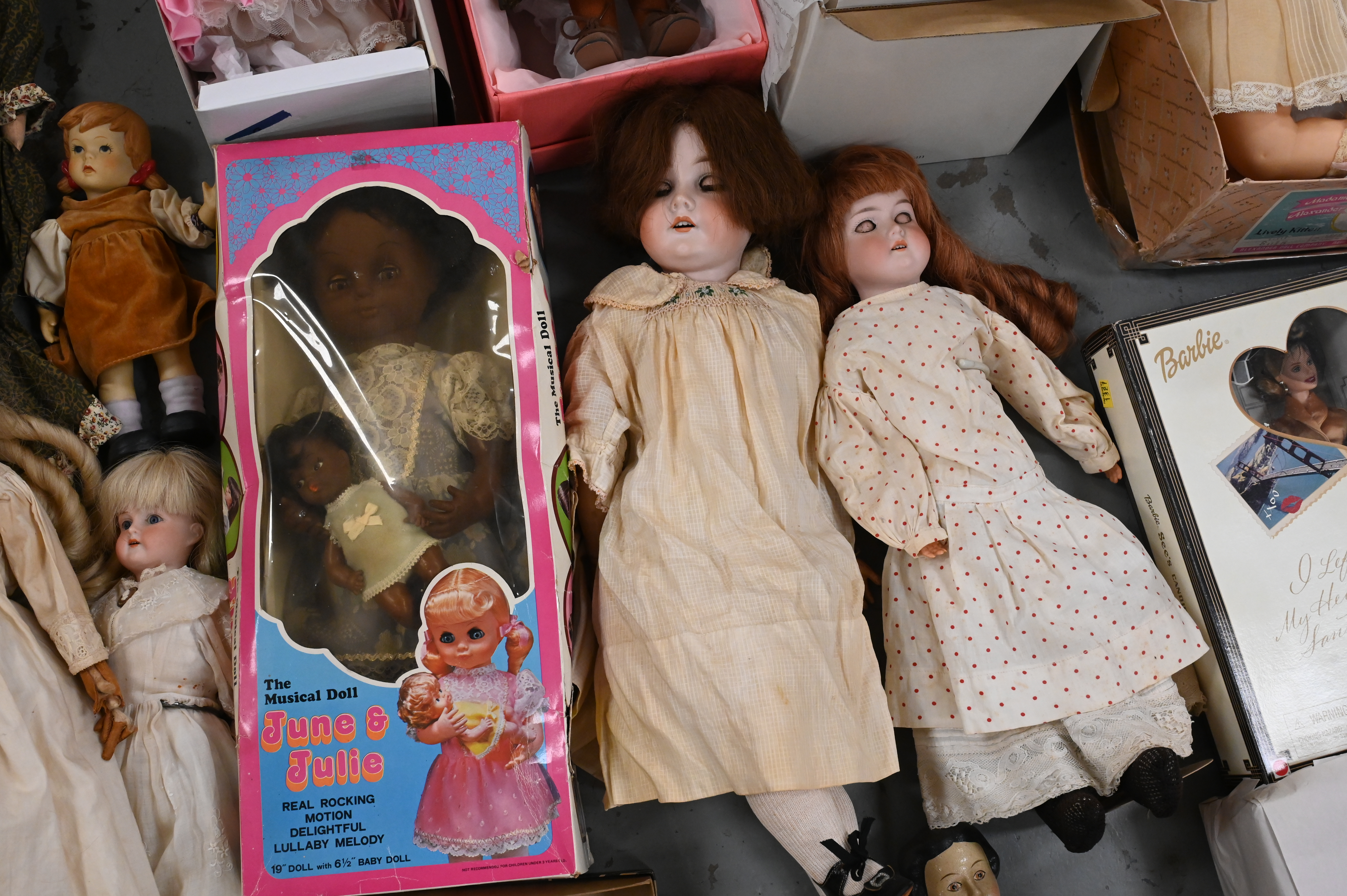 Large Lot of Dolls, to include 2 Barbie dolls, June and Julie, German made Bisanz, including Armand Marseille, along with a pair of 1990’s ice skates and wind up toys
