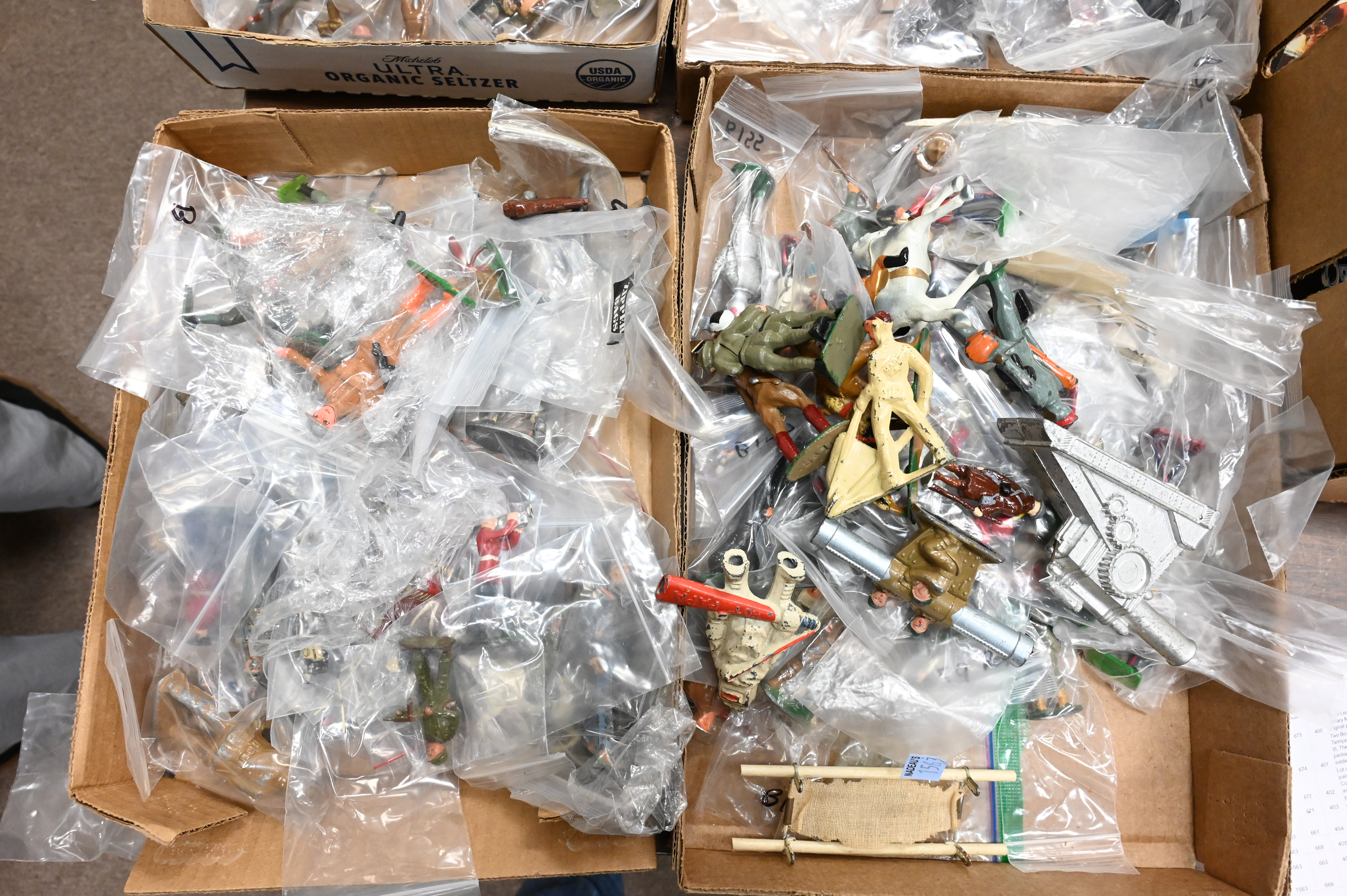 Four Box Lots of Lead Toy Soldiers and Figurines, hand painted metal, approximately 200 in total, mostly soldiers.