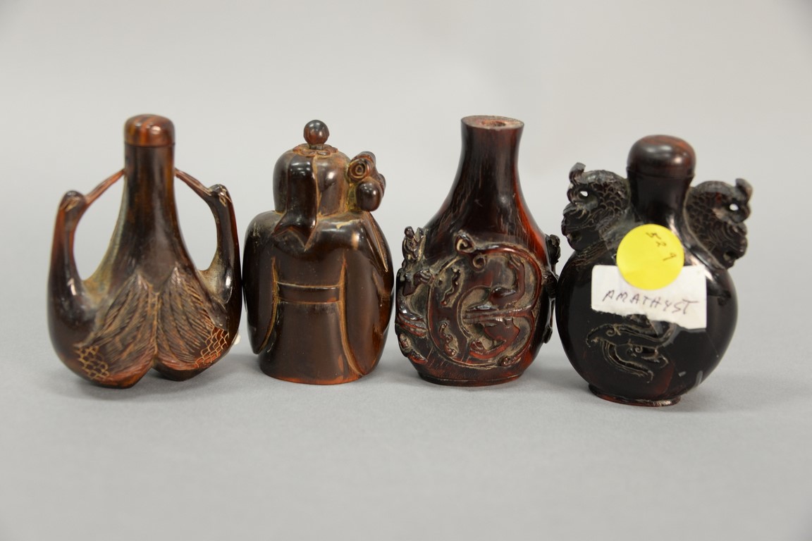Four large Chinese horn snuff bottles. ht. 3in. to ht. 3 1/4in.