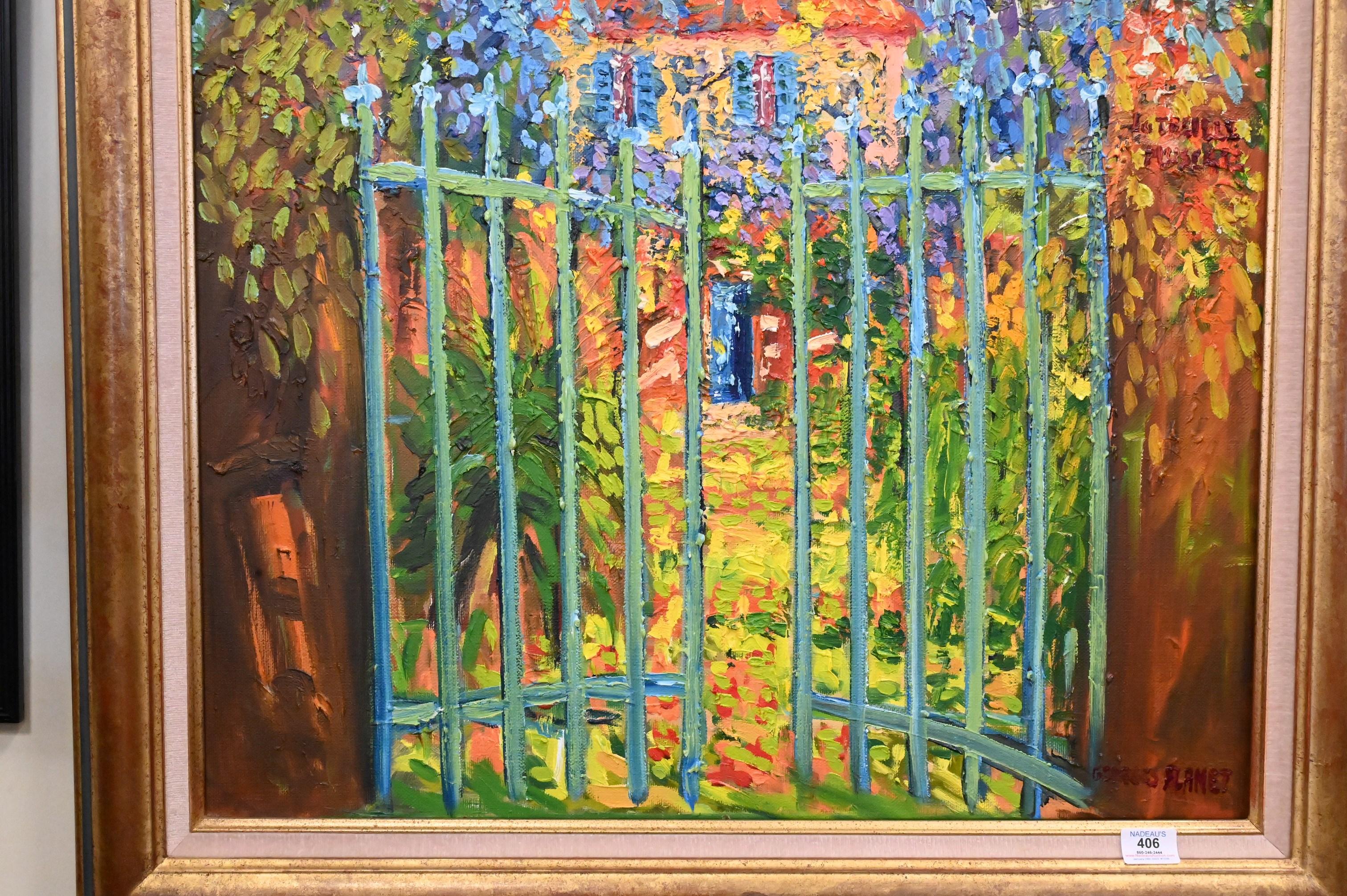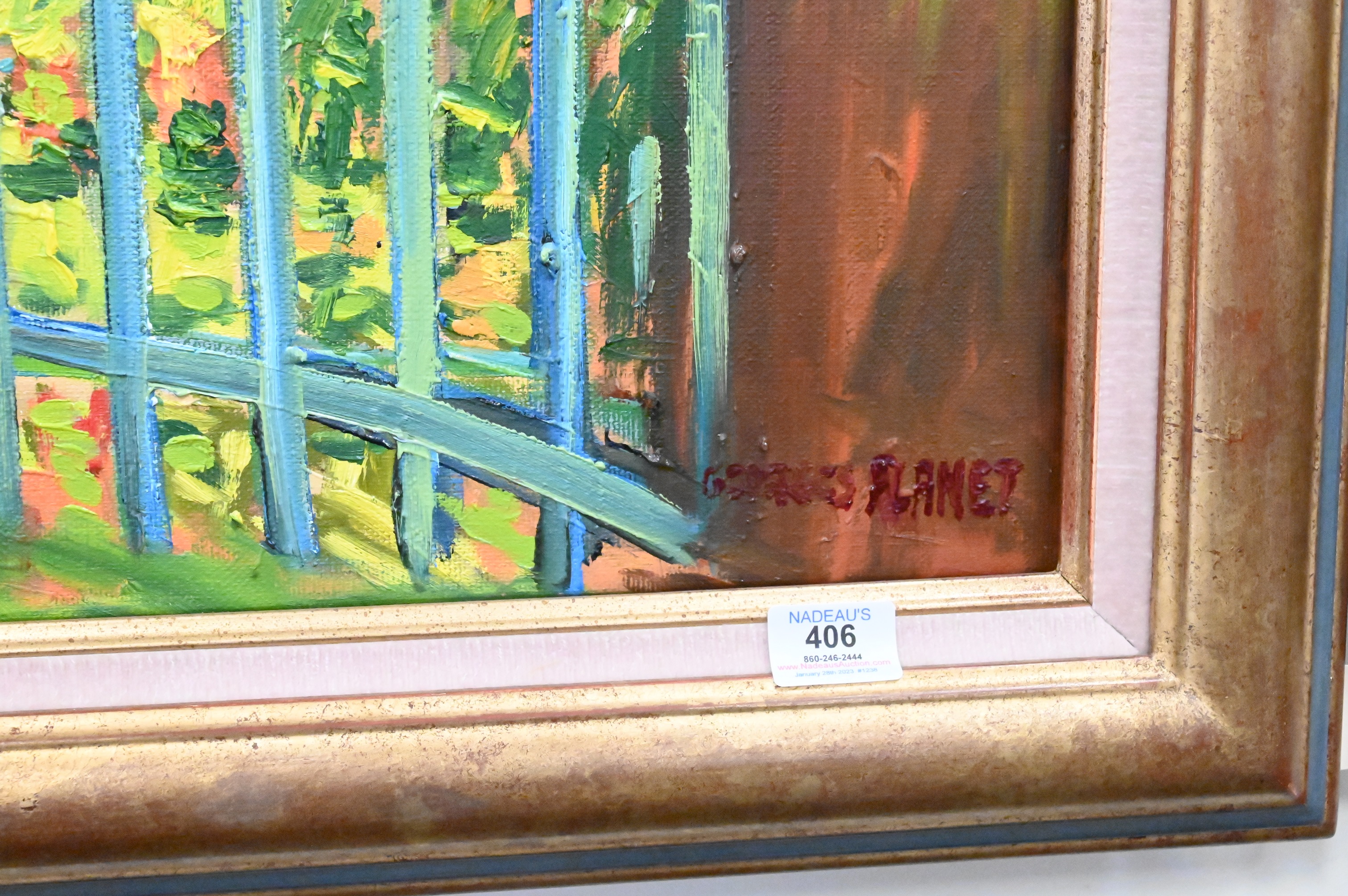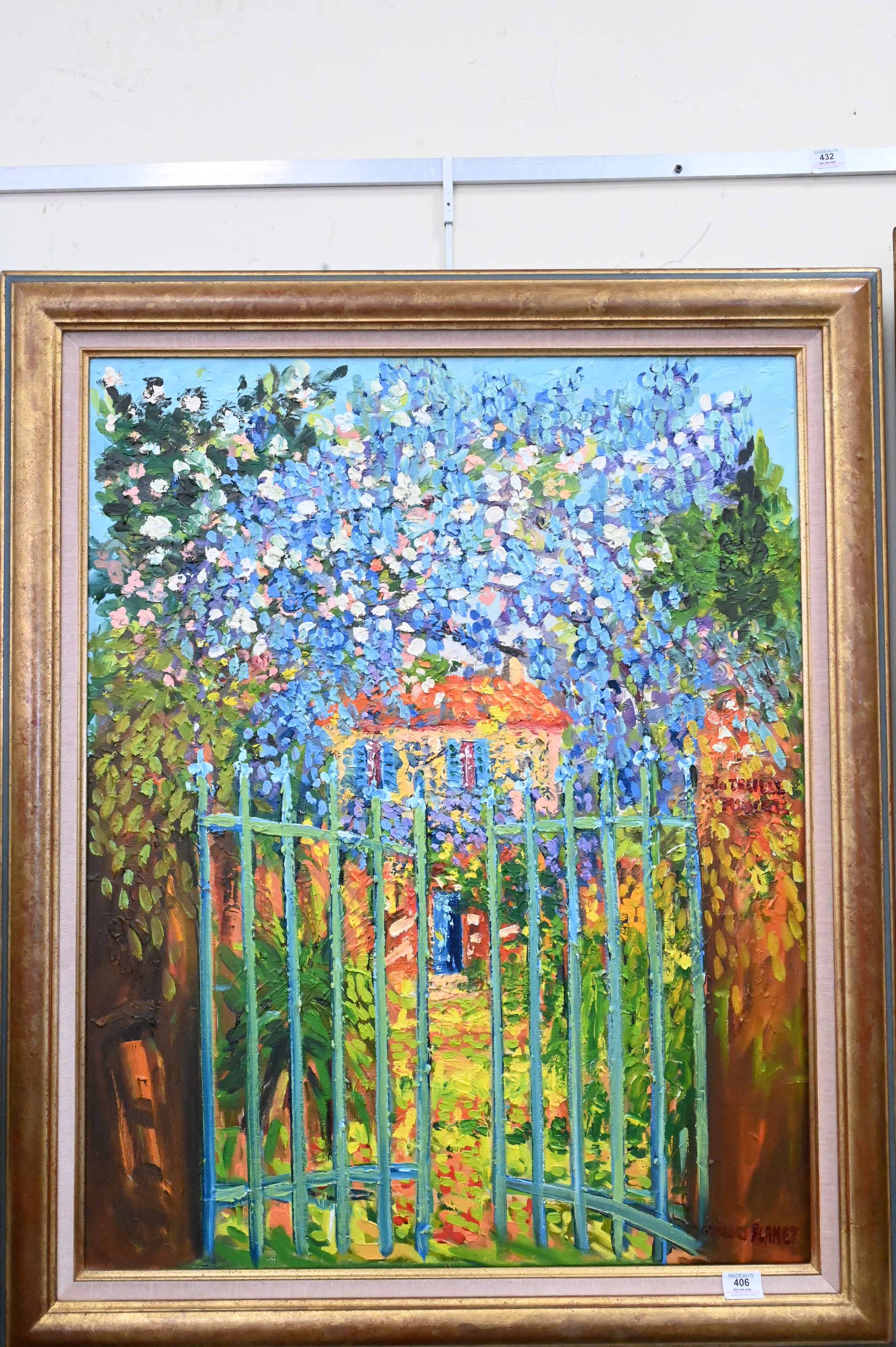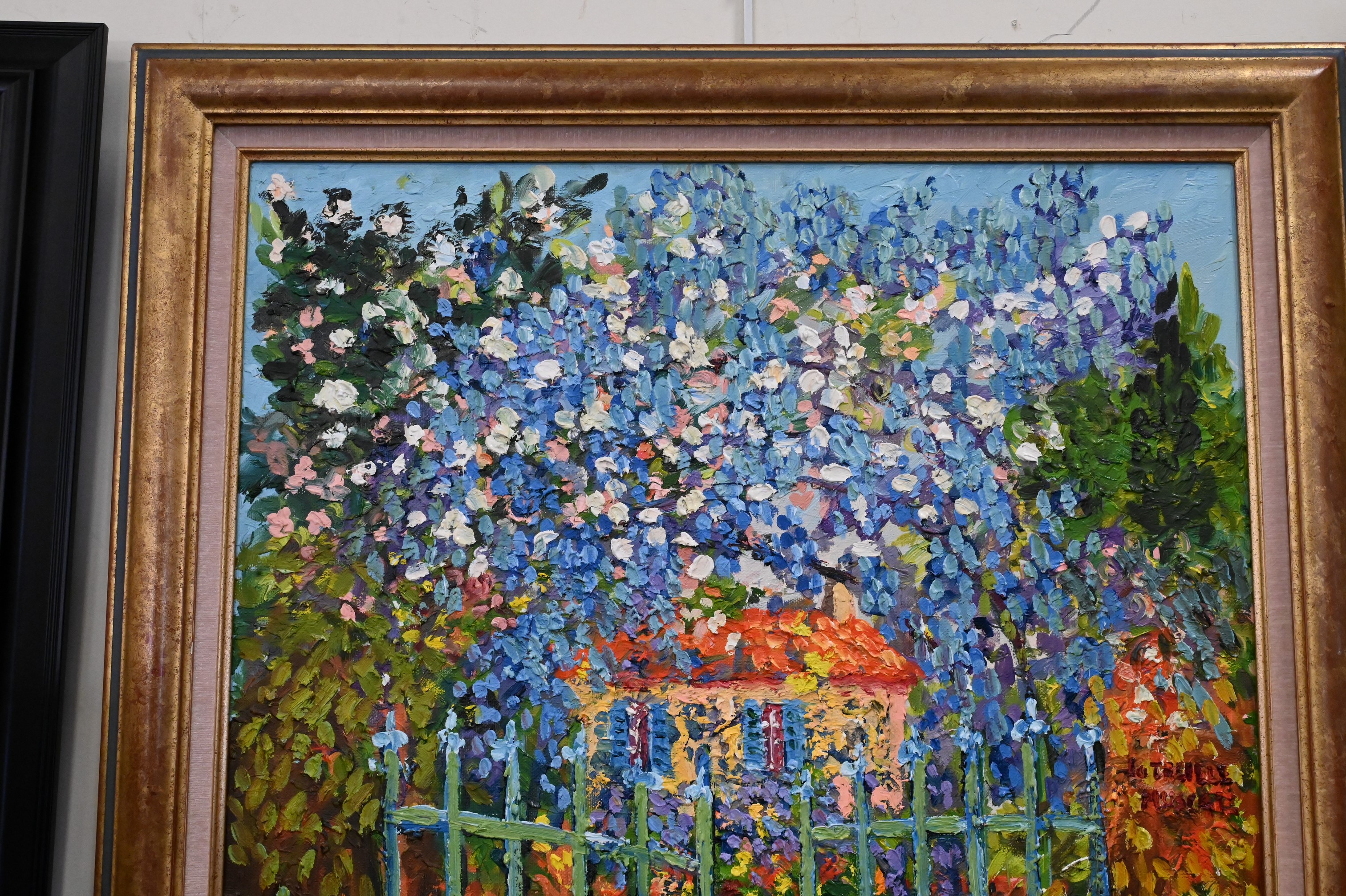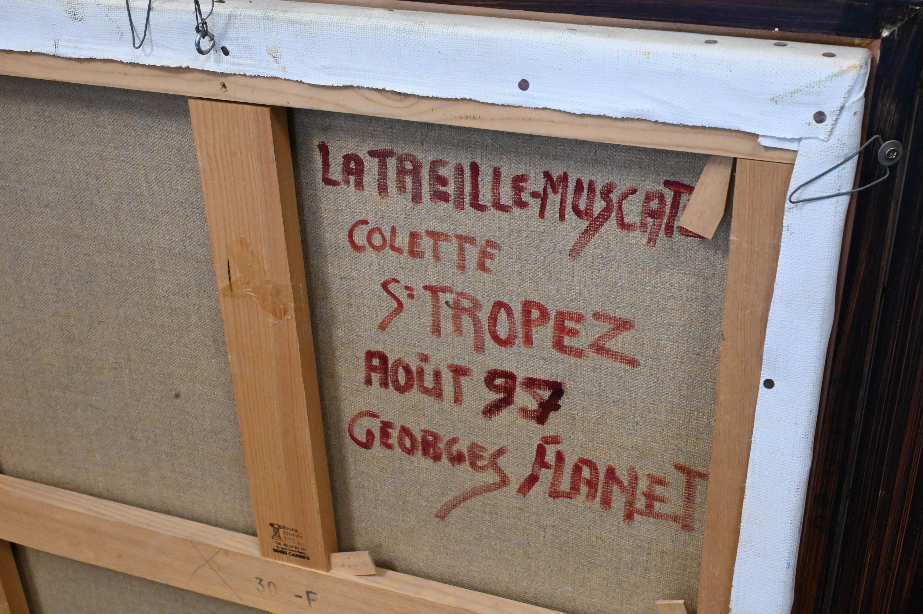 Georges Flanet (b. 1937), oil on canvas, A House in a Garden, La Treille Muscate Colette, St. Tropez, 1997, signed, titled and dated on back, 36″ x 29″, original Delf Cadres d’Art label on back, along with copy of original receipt from artist gallery for $18,000 in 1998. Provenance: Property from a private New York collection sold to benefit charitable foundations.