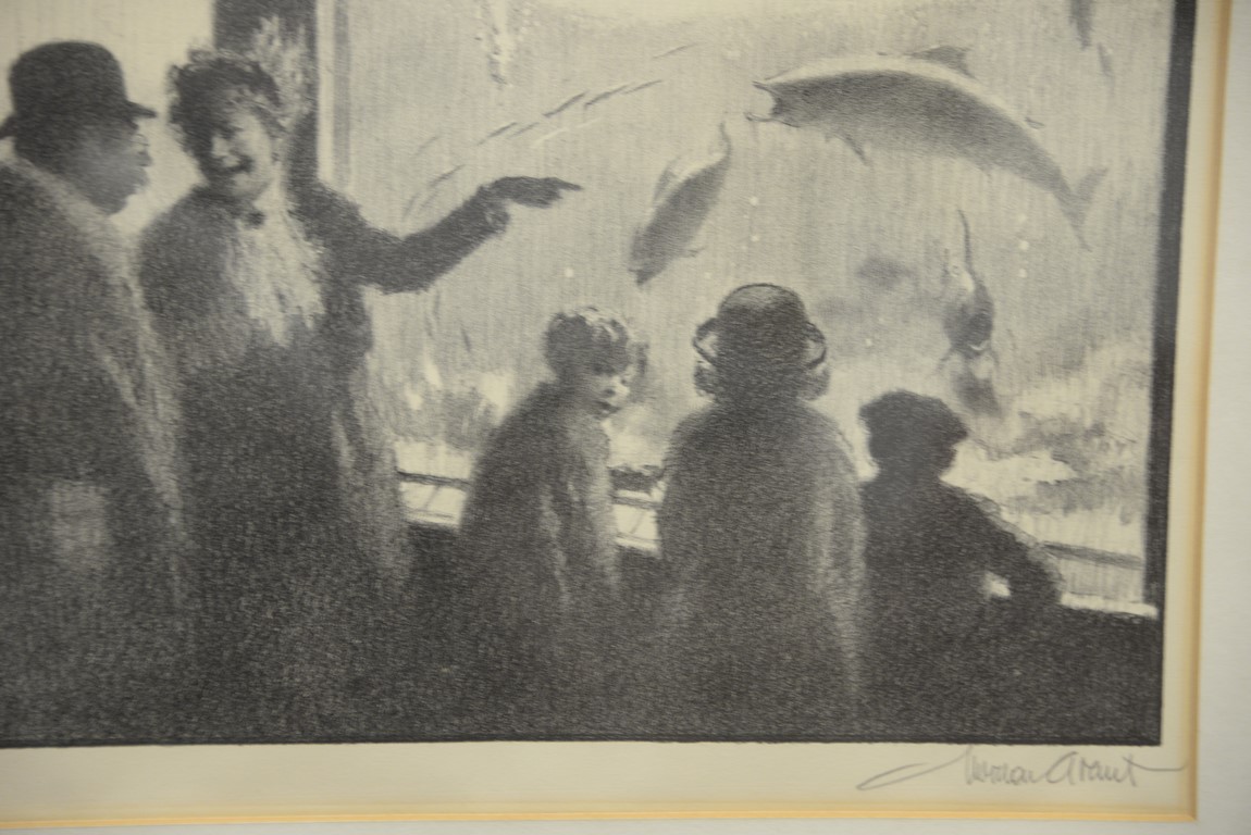 Lot 406: Gordon Grant 1875-1962 original lithograph The Aquarium signed lower right in pencil Gordon Grant. 9 1/2 x 12 1/2