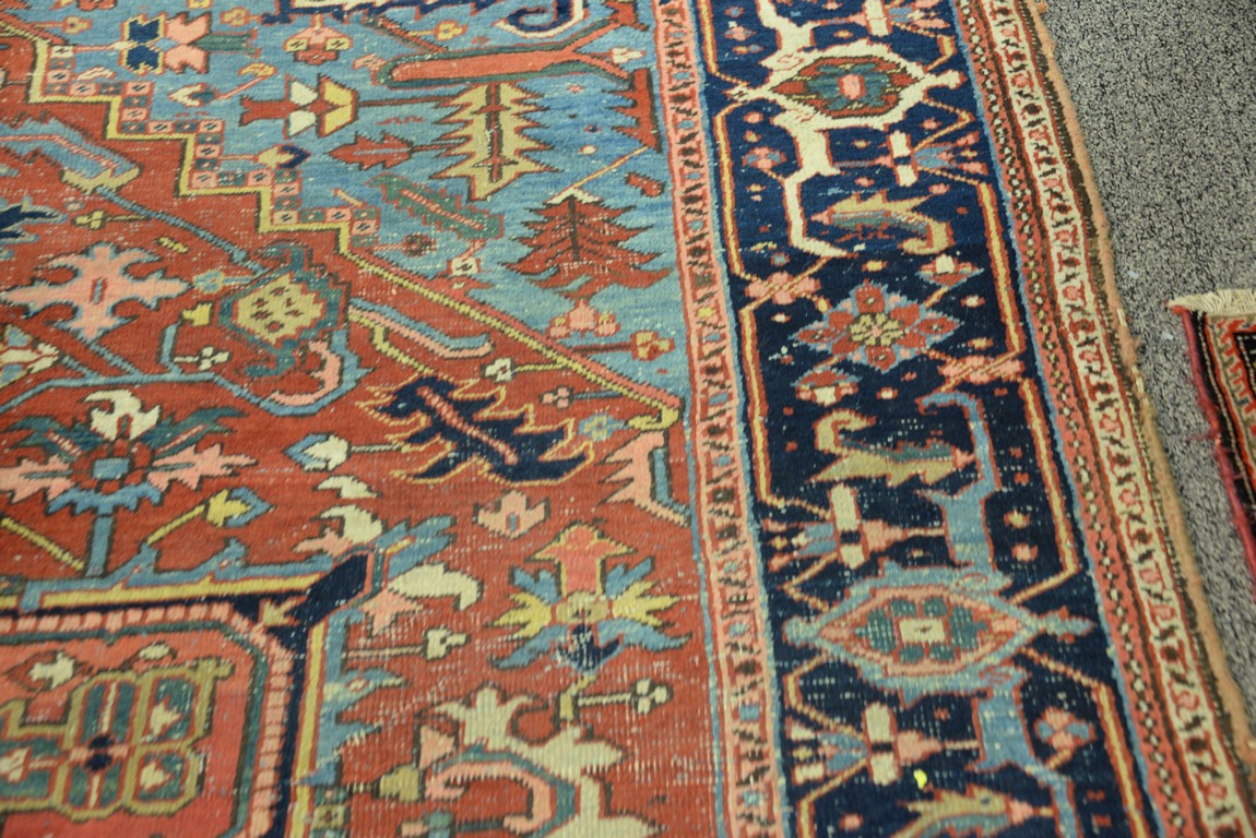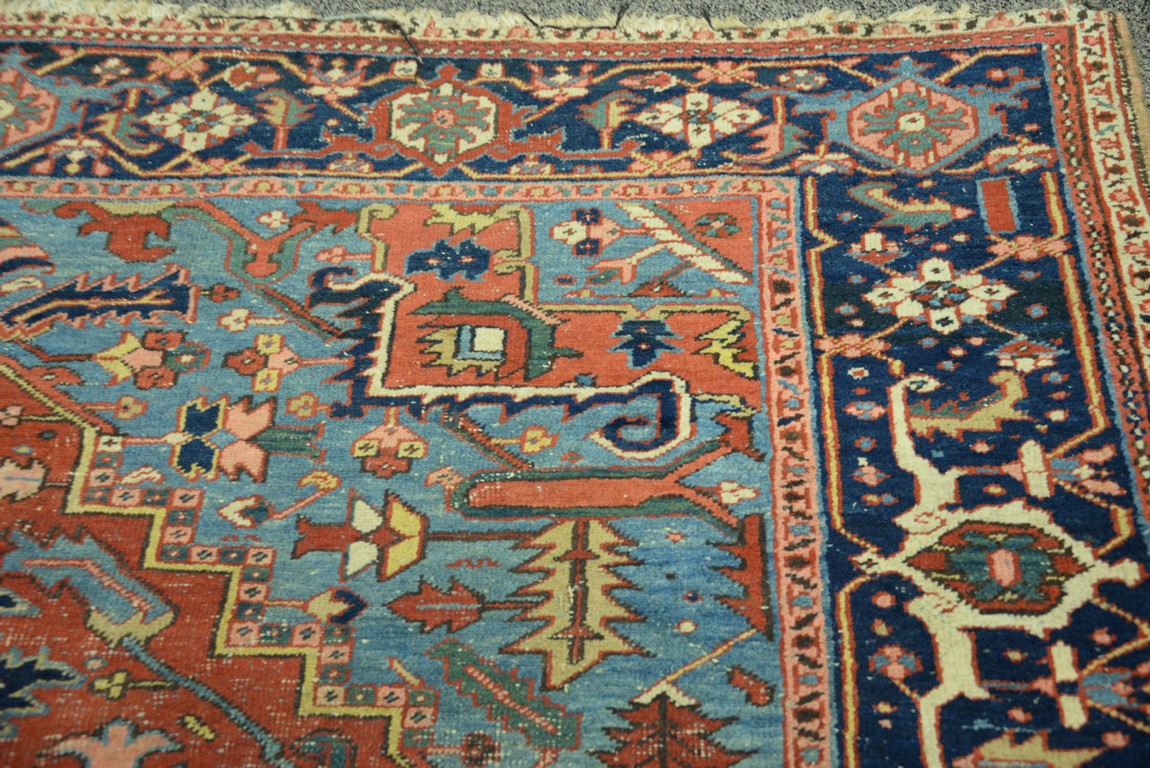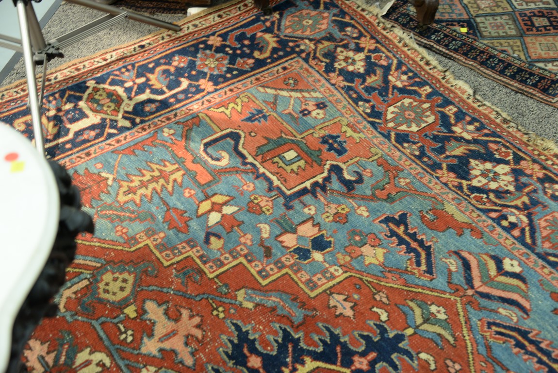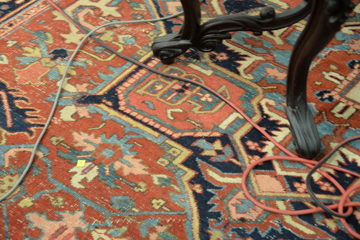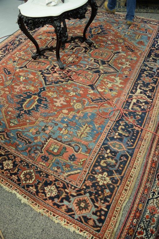 Heriz Oriental carpet, worn. 8′ 5 x 11′