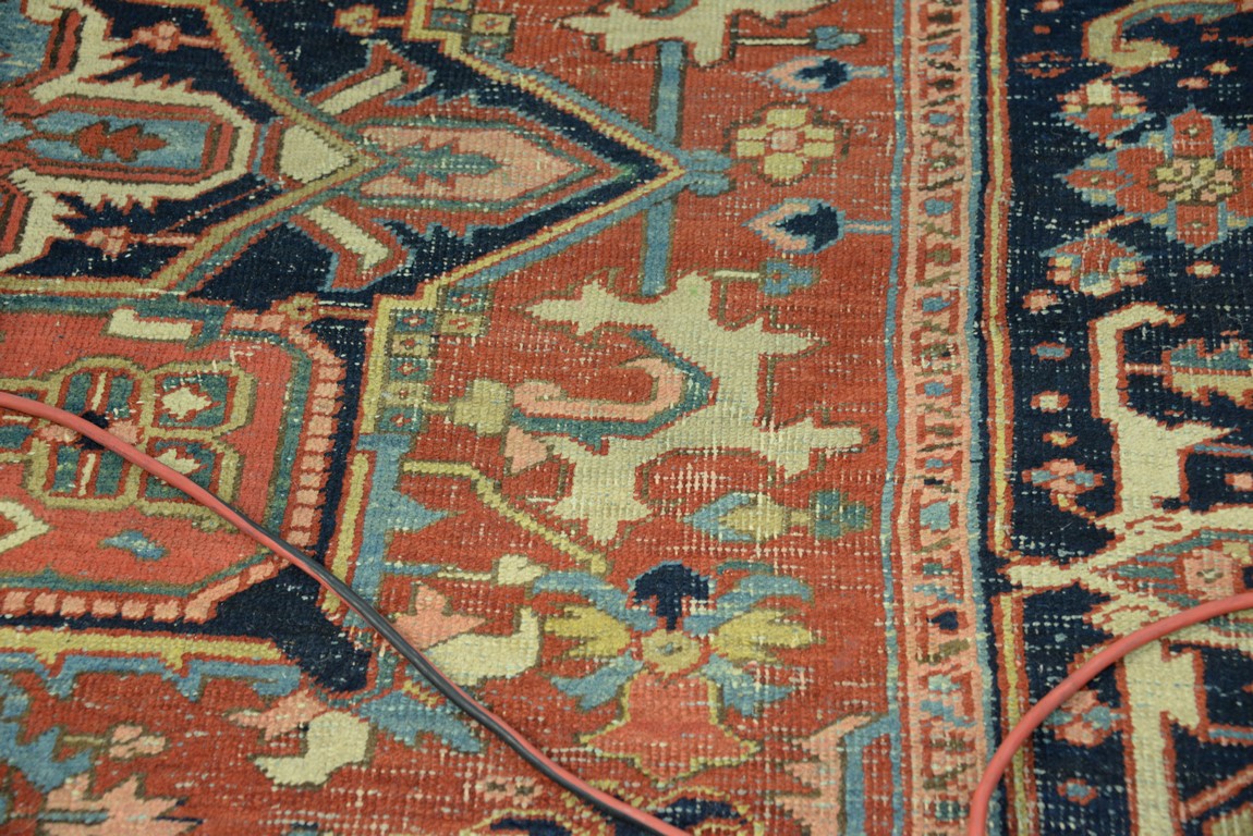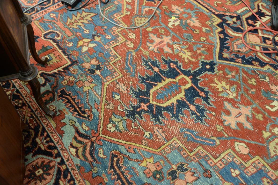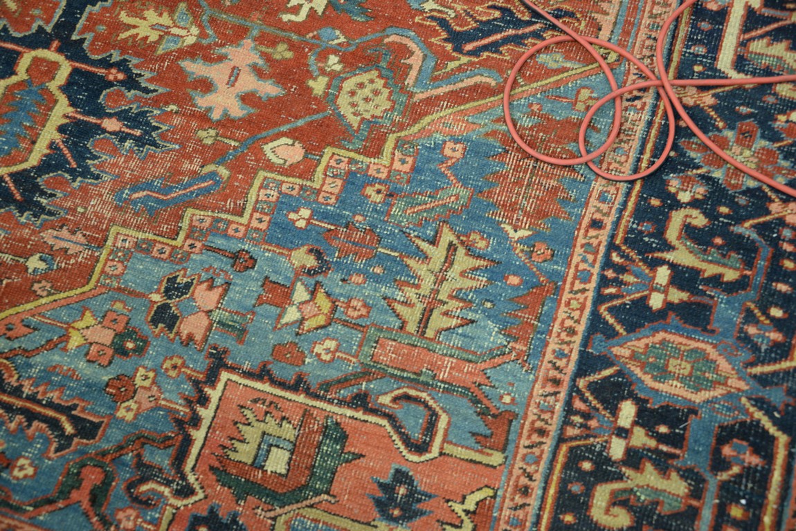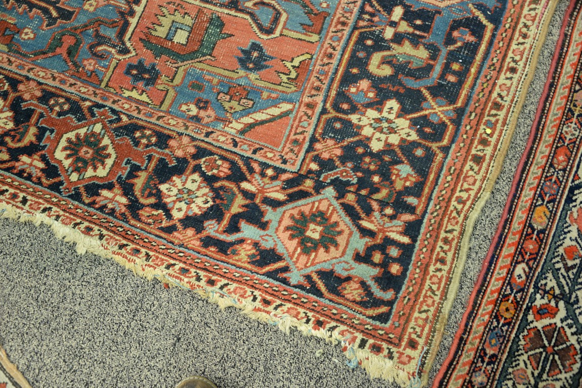 Heriz Oriental carpet, worn. 8′ 5 x 11′