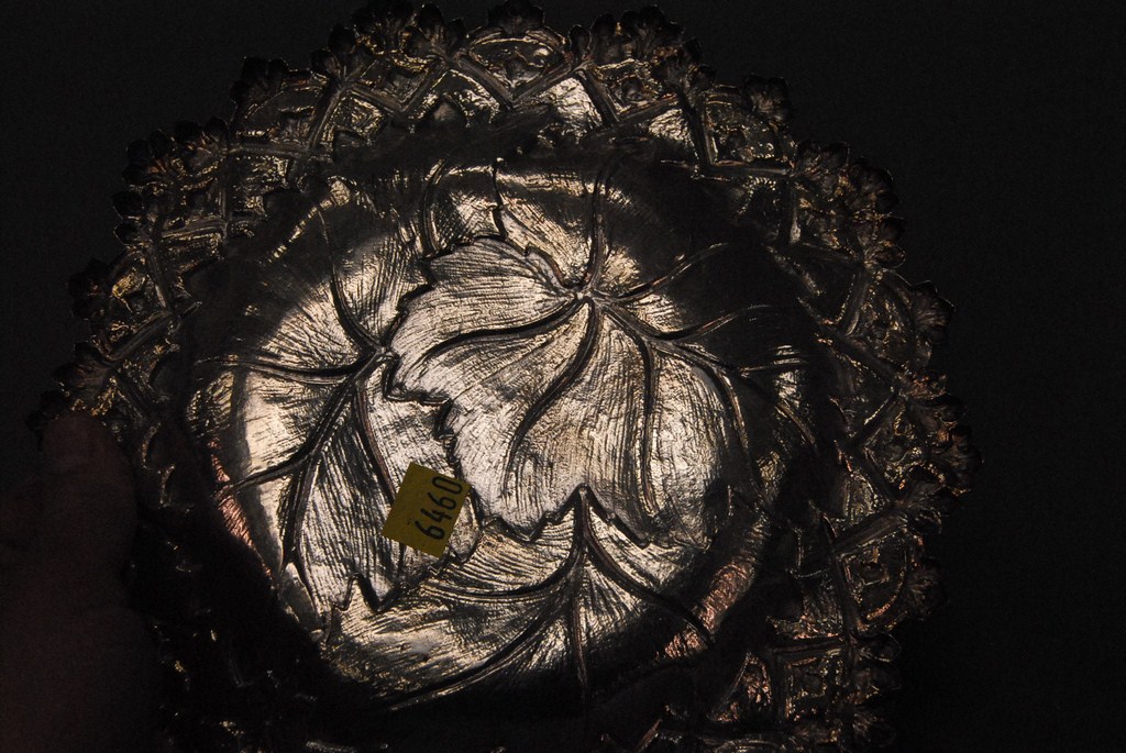 Pair of silver plates, leave designs. 19.6 t oz., dia. 9 1/2in.