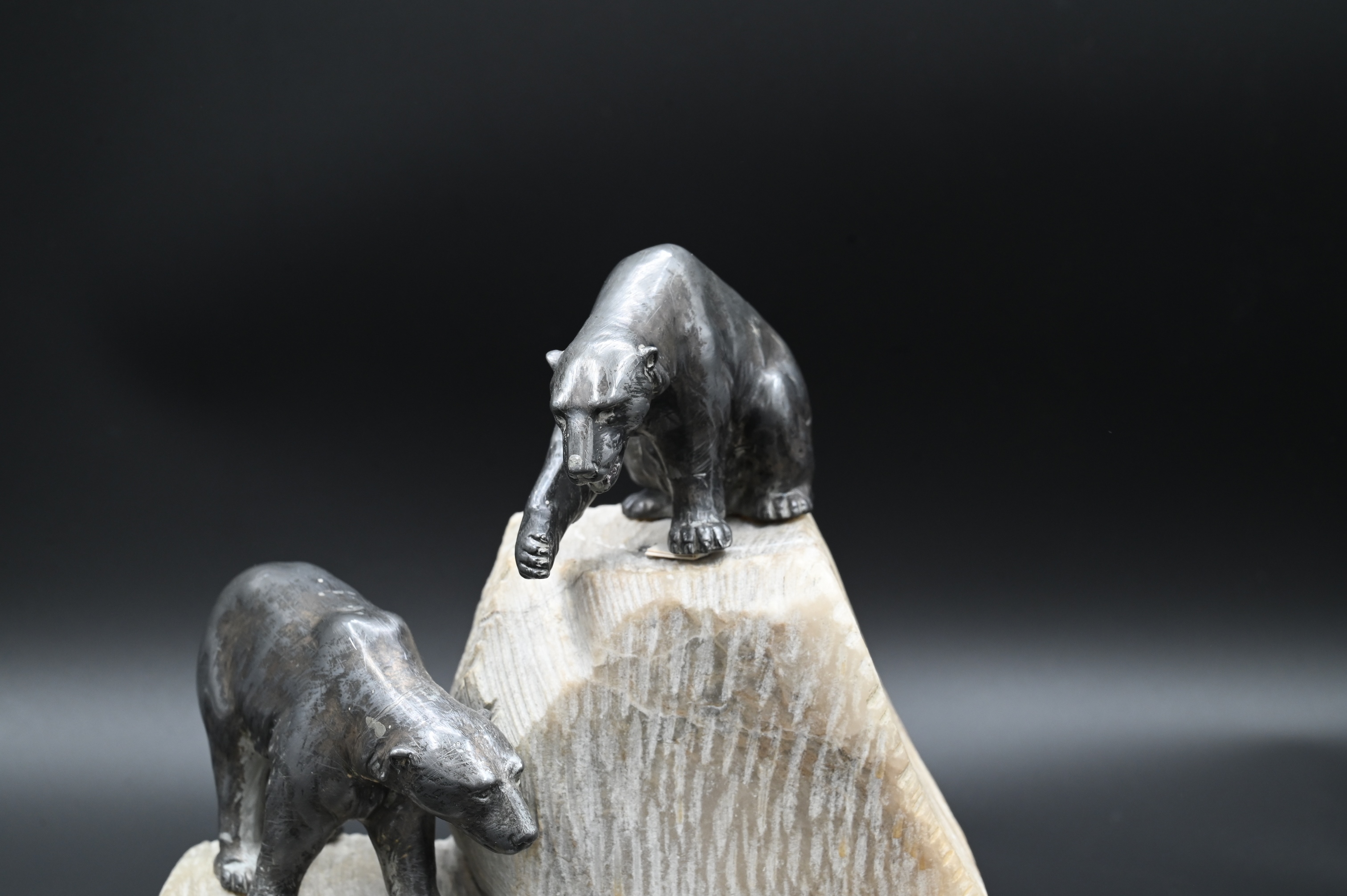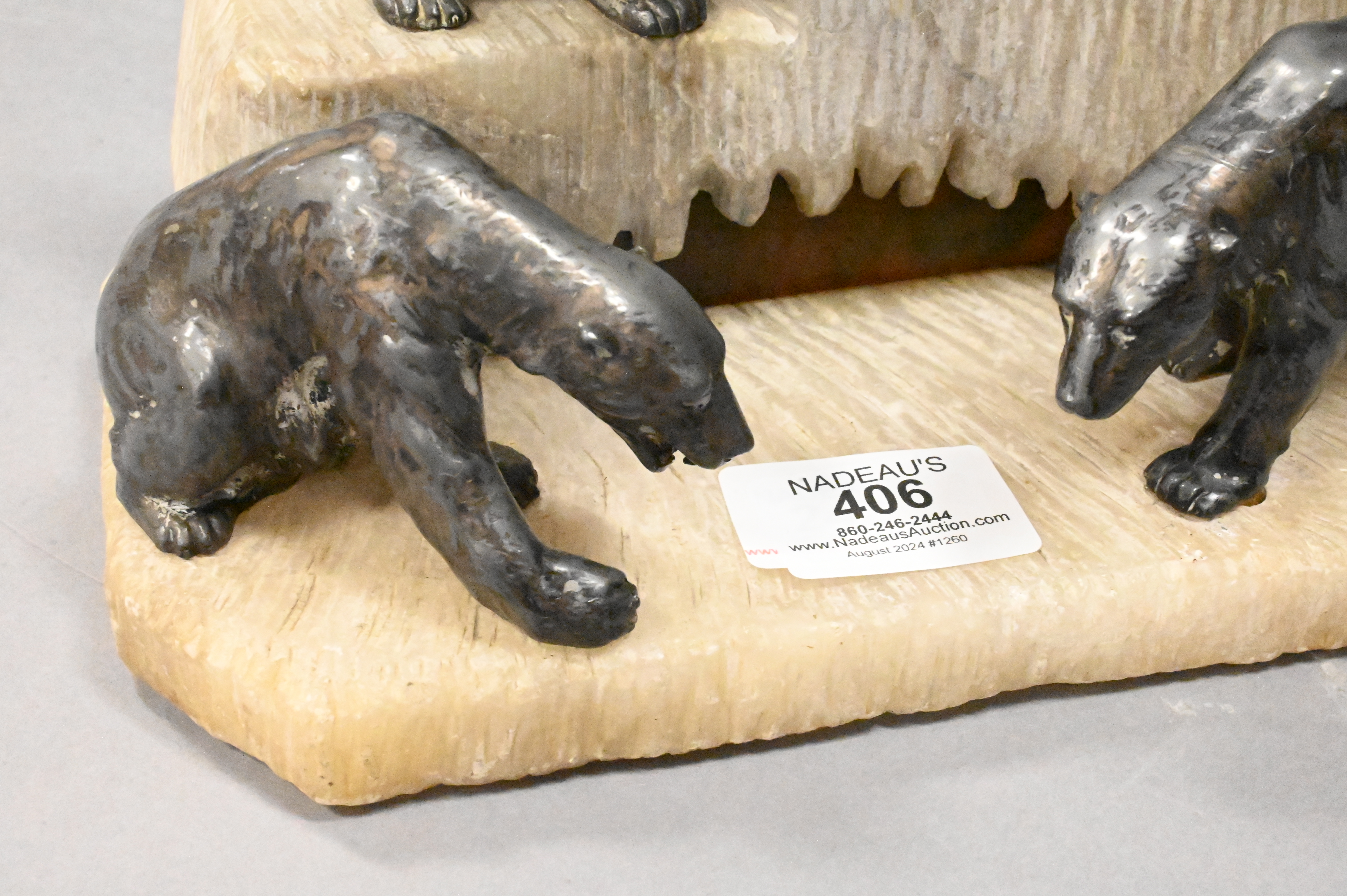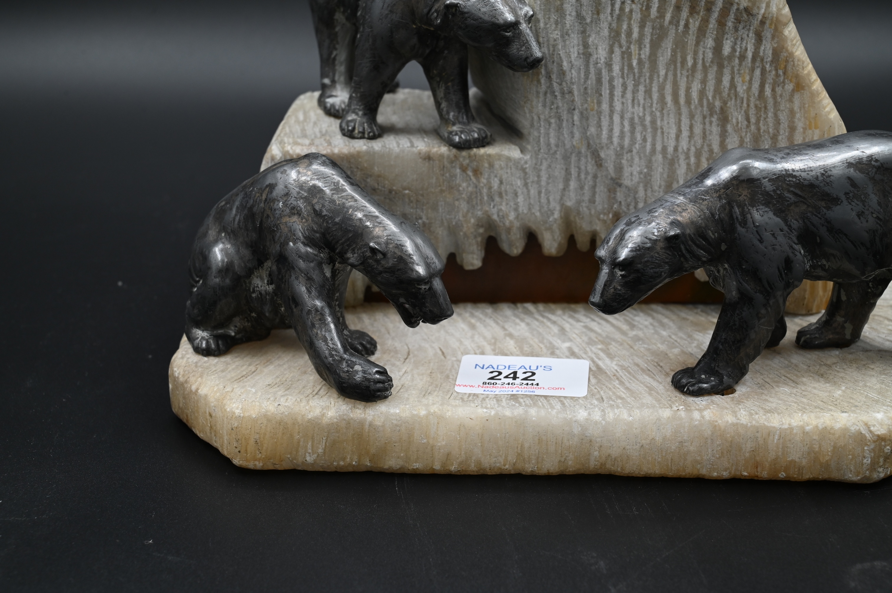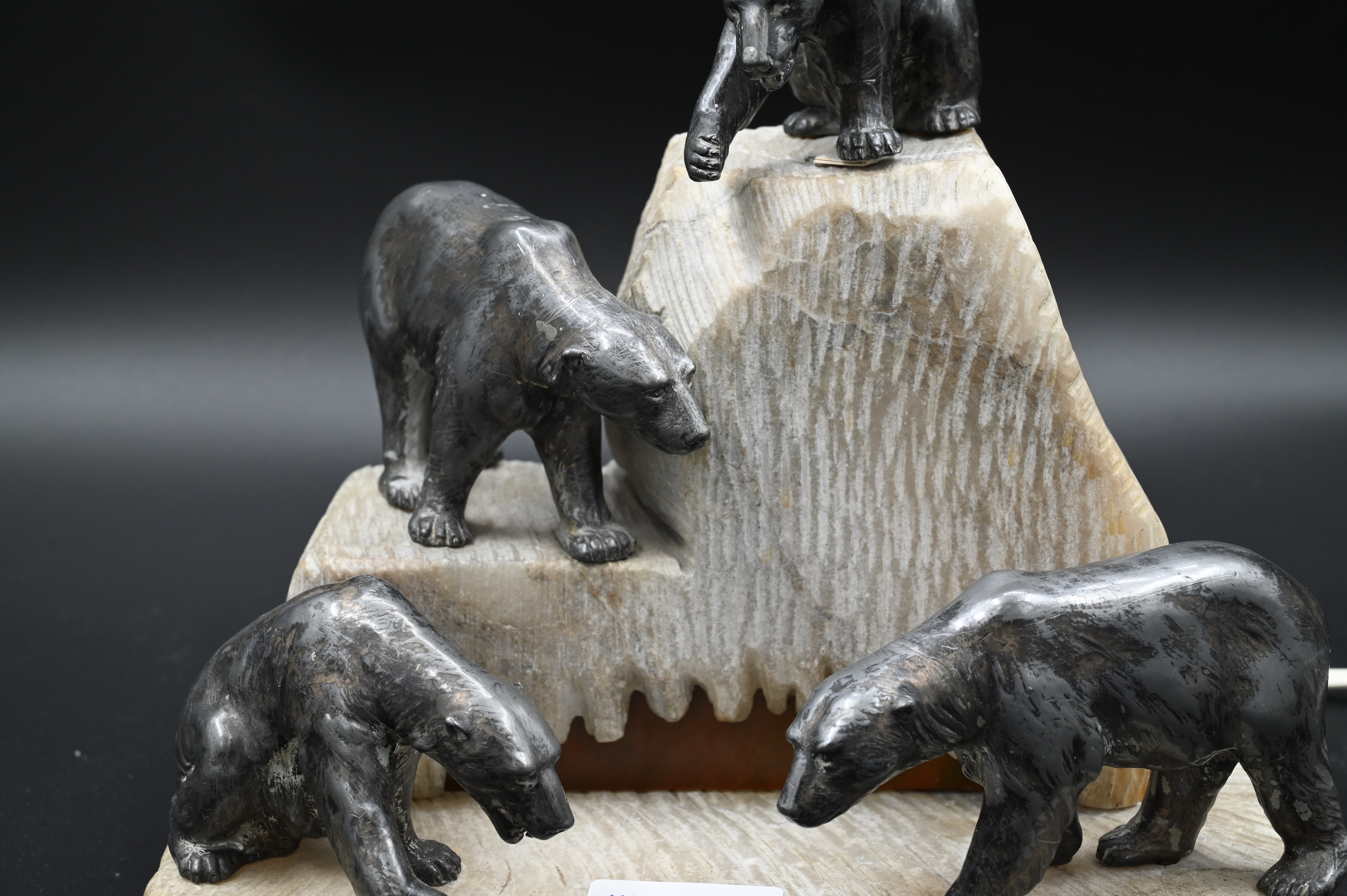 featuring four cast polar bears on a carved iceberg form base, marked “Germany”