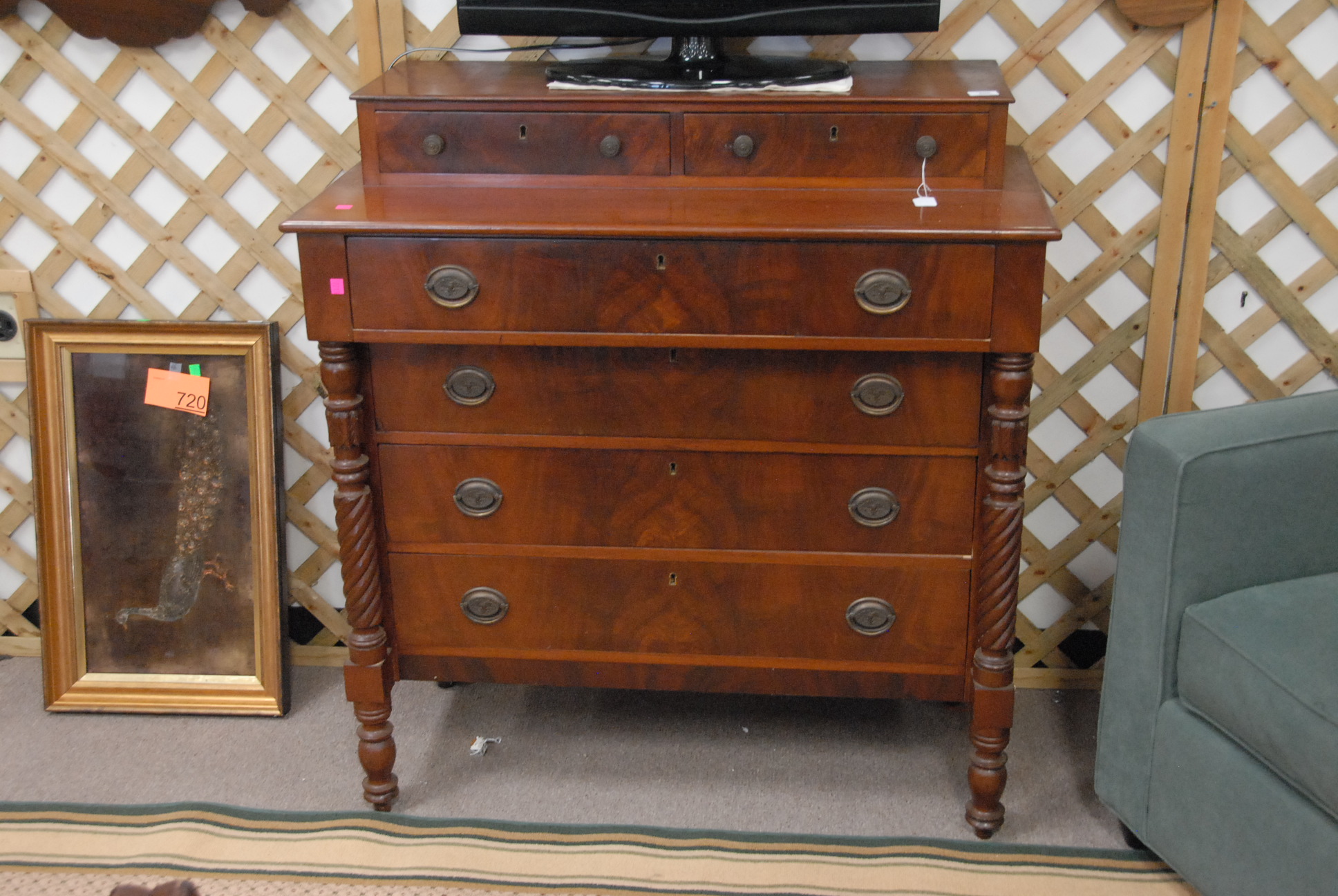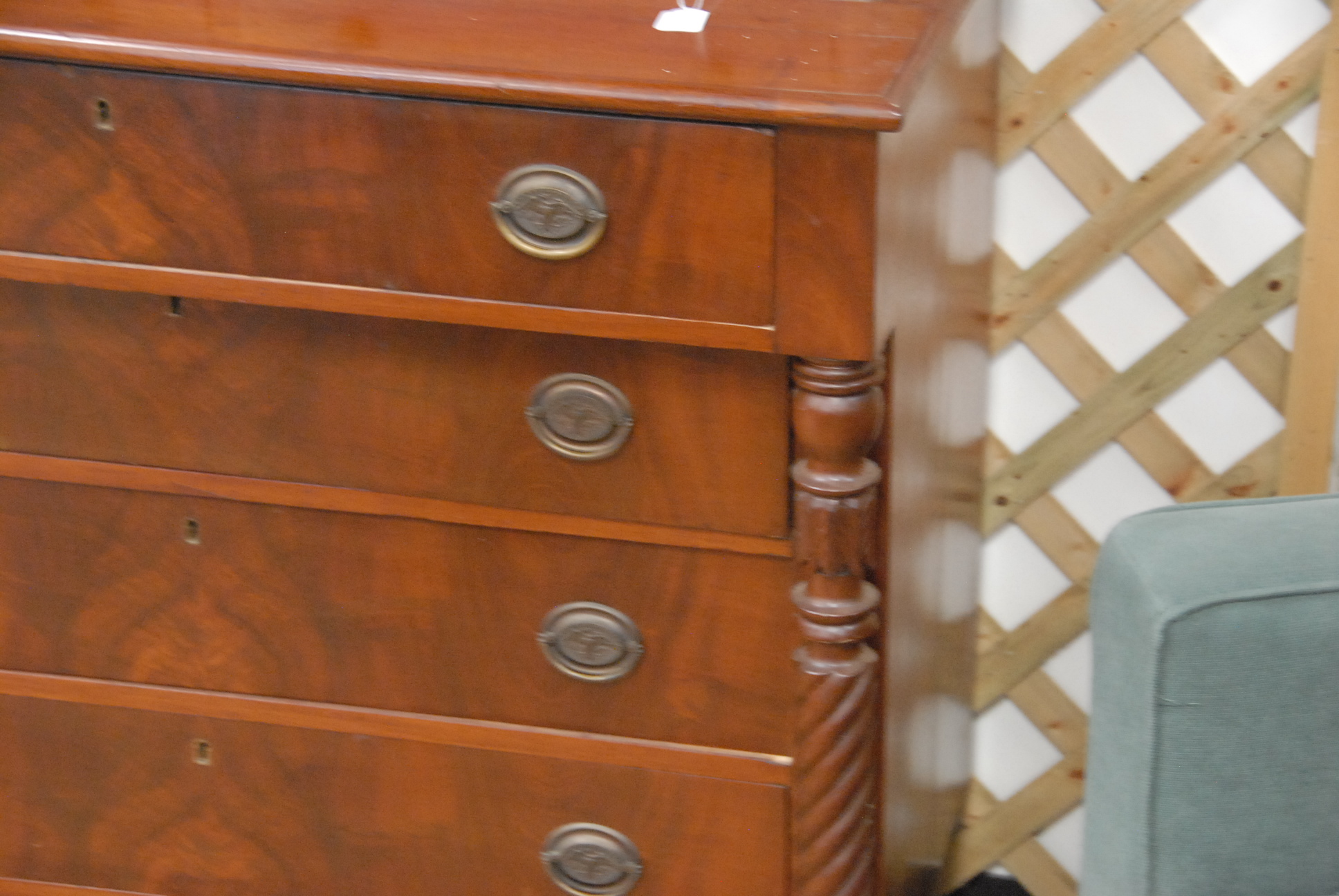 Sheraton mahogany two over four drawer chest, circa 1840.