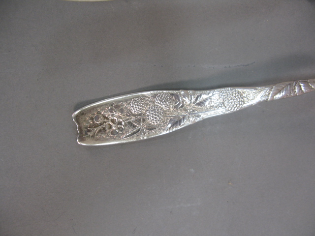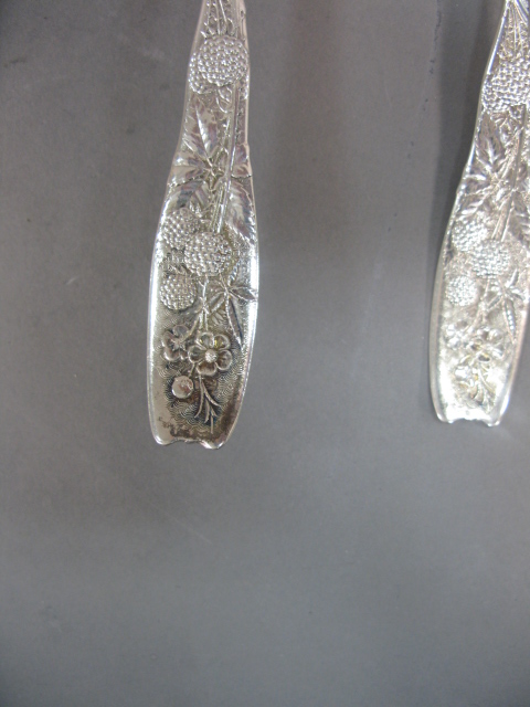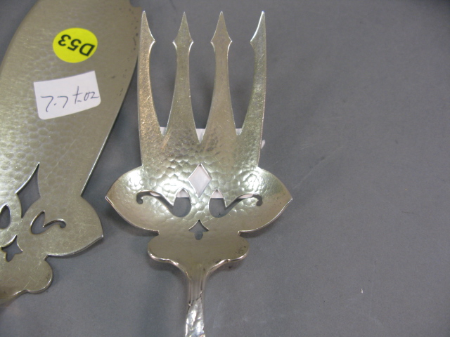 Two piece sterling silver fish set, hand hammered with blackberry design handles marked Theodore Starr. Provenance: Governor Henry Roberts Edward Roberts 1110 Prospect Ave Hartford to present owner.