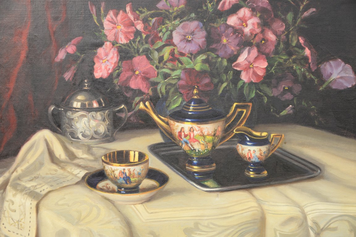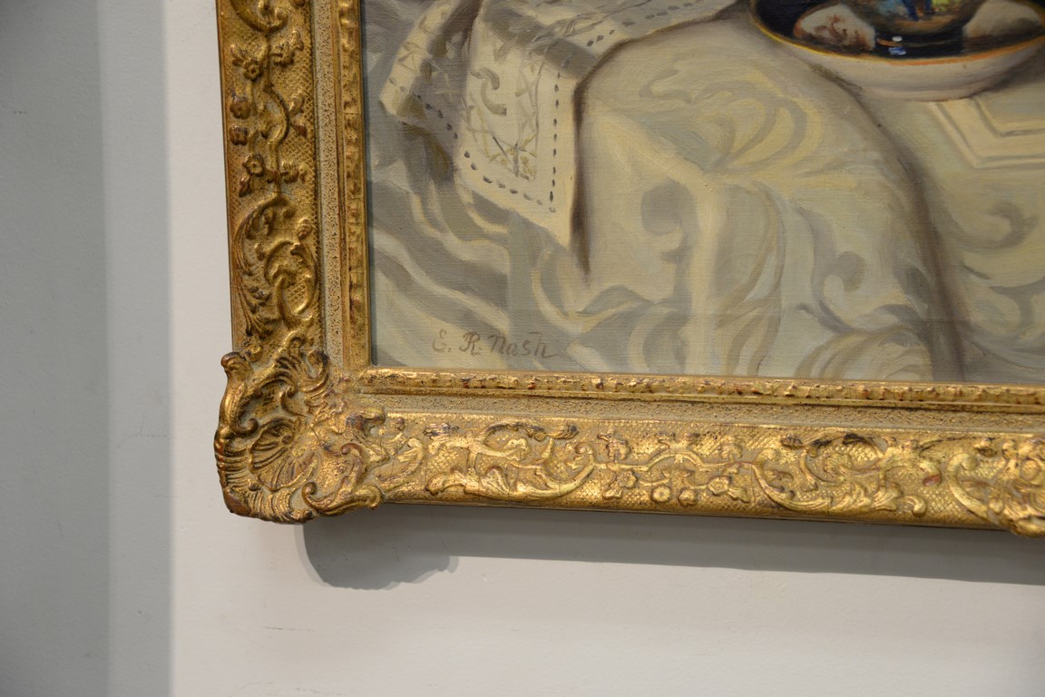 Lot 407: E. R. Nash 20th century oil on canvas still life of flowers signed lower left E. R. Nash, 23 x 29.