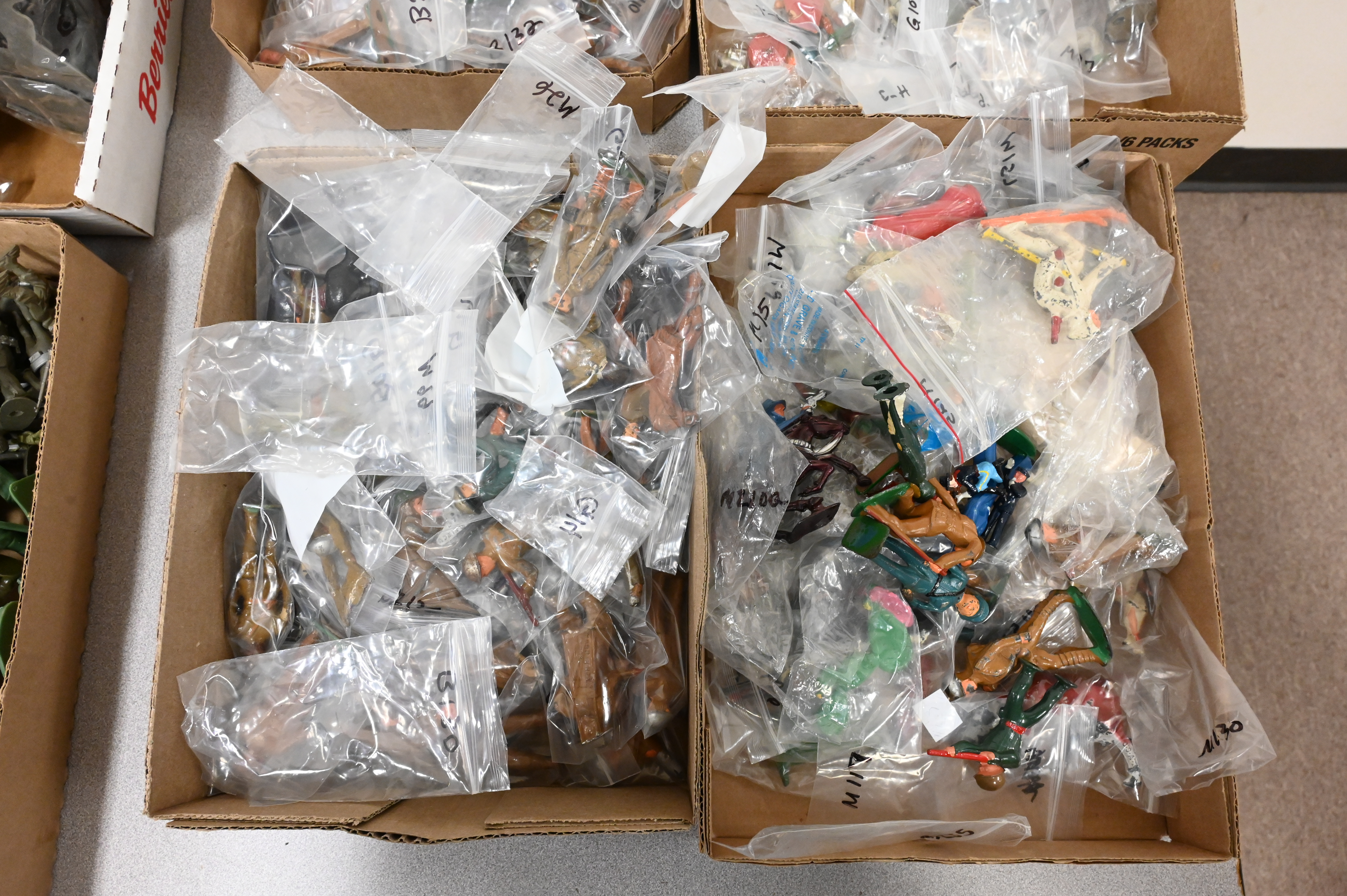 Four Box Lots of Lead Toy Soldiers and Figurines, hand painted metal, approximately 200 in total, to include WWI and WWII.