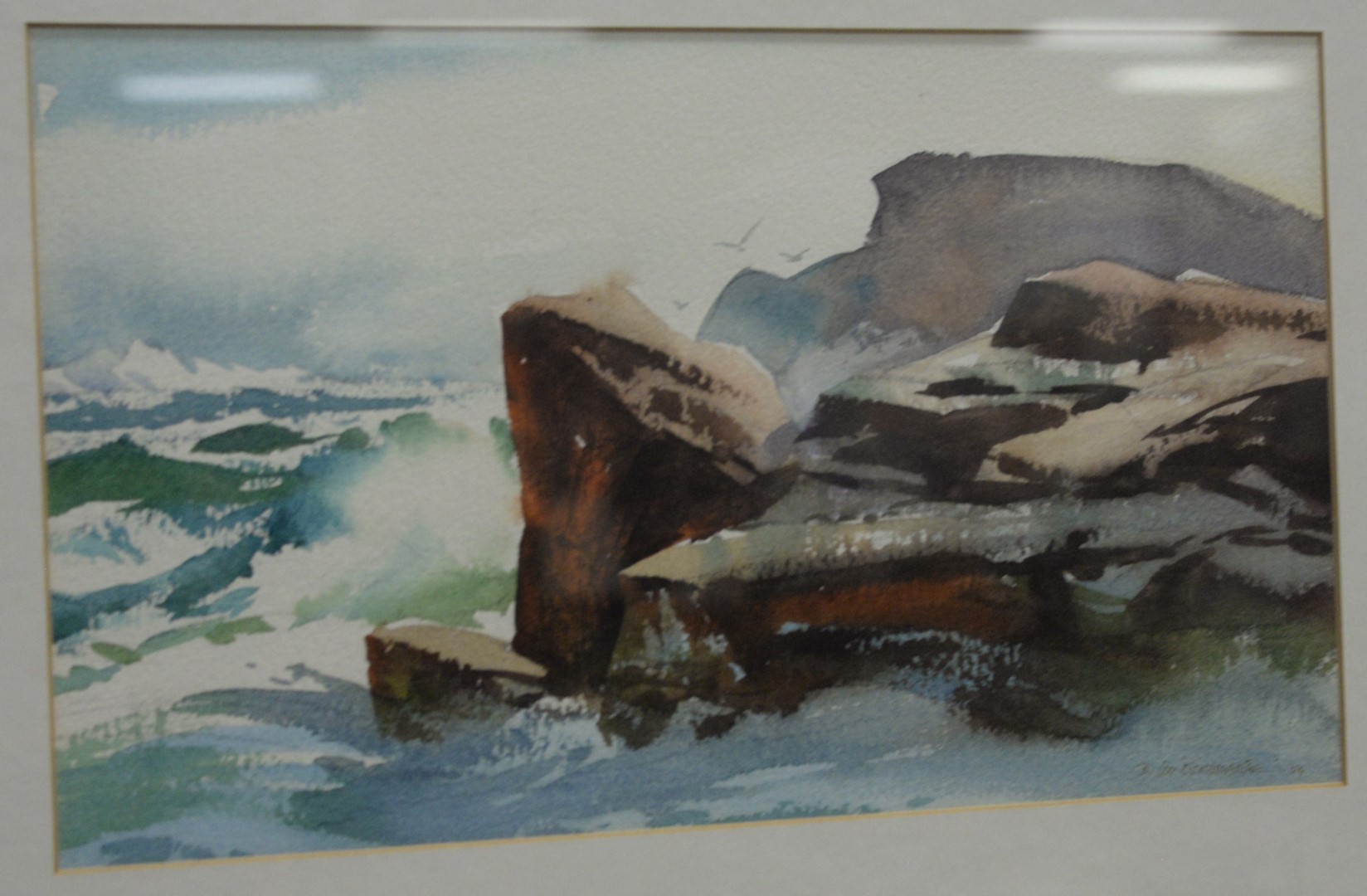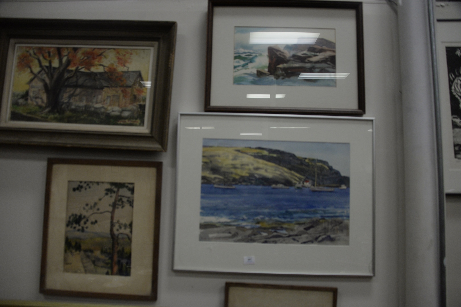 Lot 407: Group of Six Framed Watercolors to include Jessie Hull Mayer 1910 – 2009, watercolor, inlet cove Lou Bonamarte Rocky Coast Eliz…