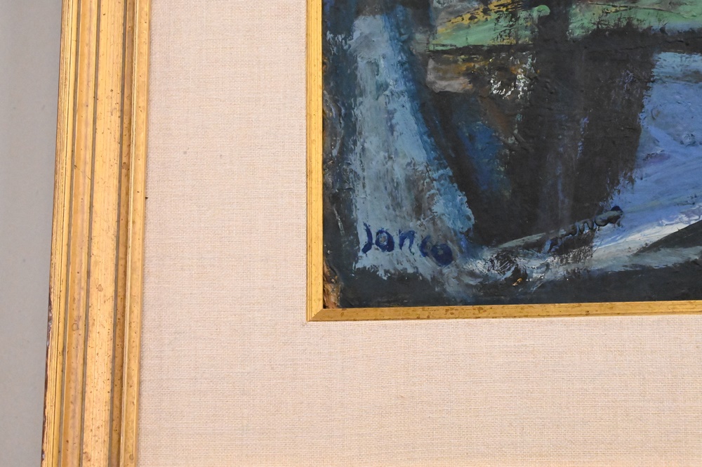 Marcel Janco (1895 – 1984), untitled abstract, oil on board, signed Janco lower left, 19″ x 27″.