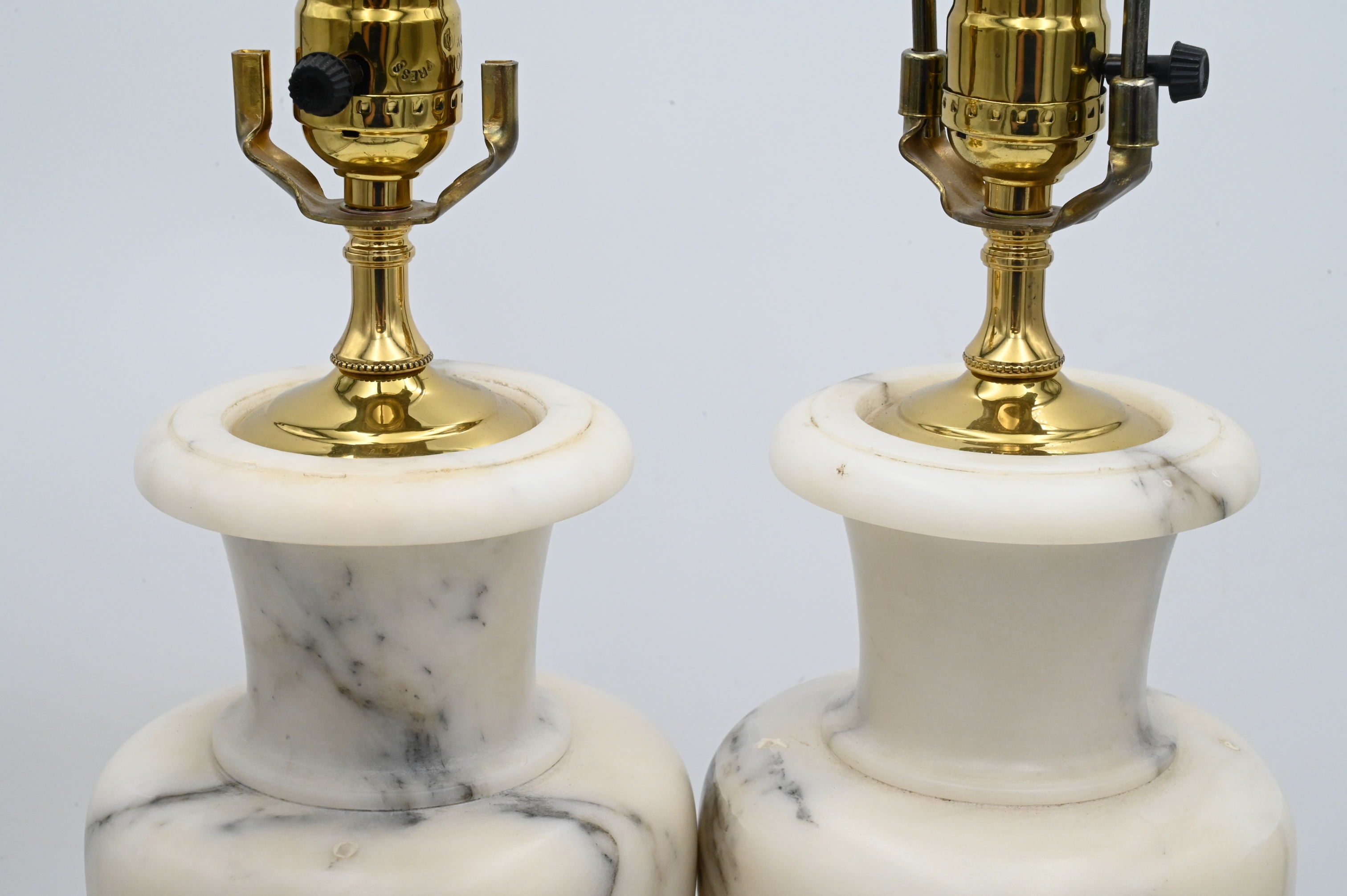 Lot 407: Pair of White Marble Urn Form Lamps on Stepped Bases