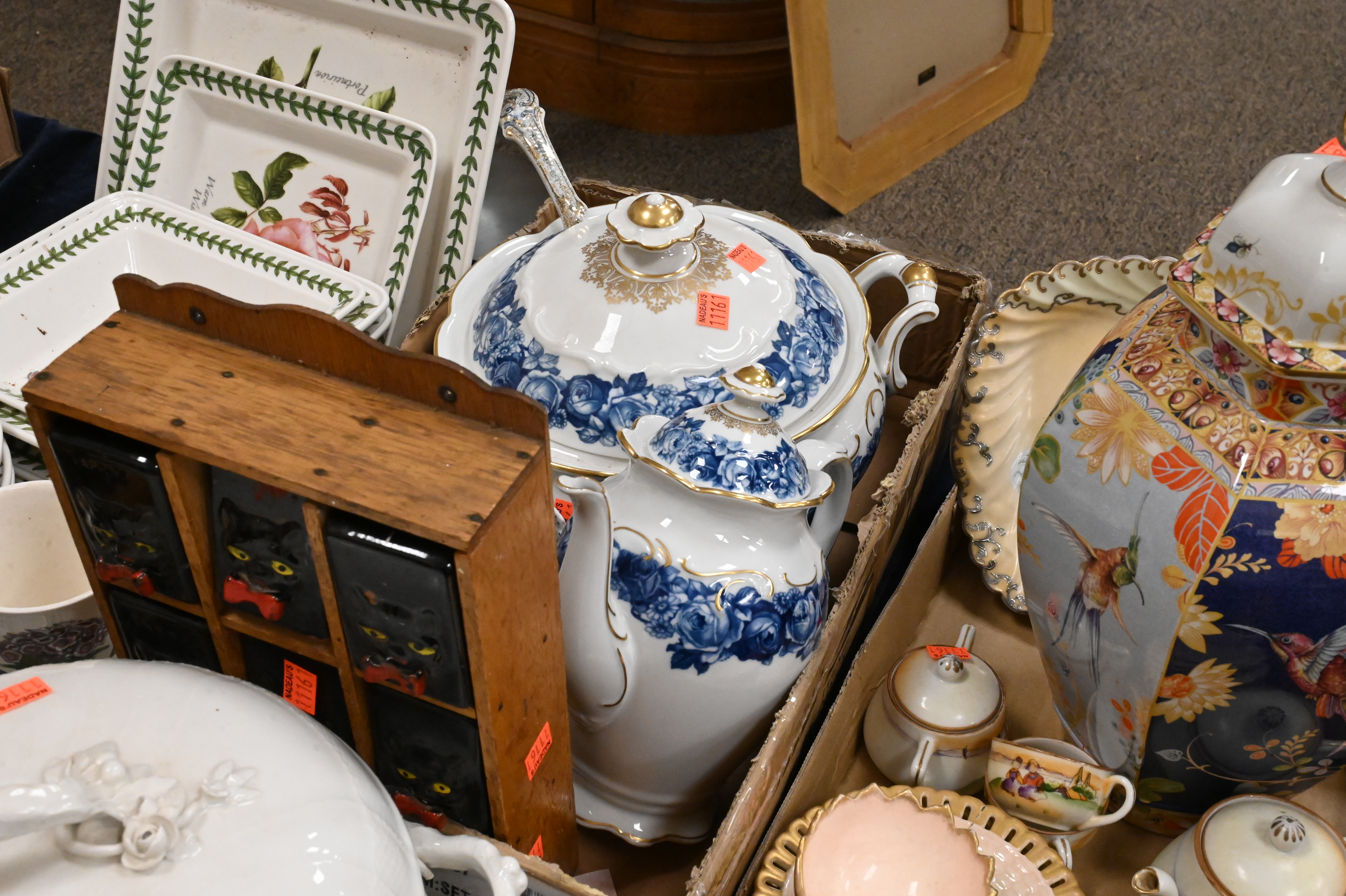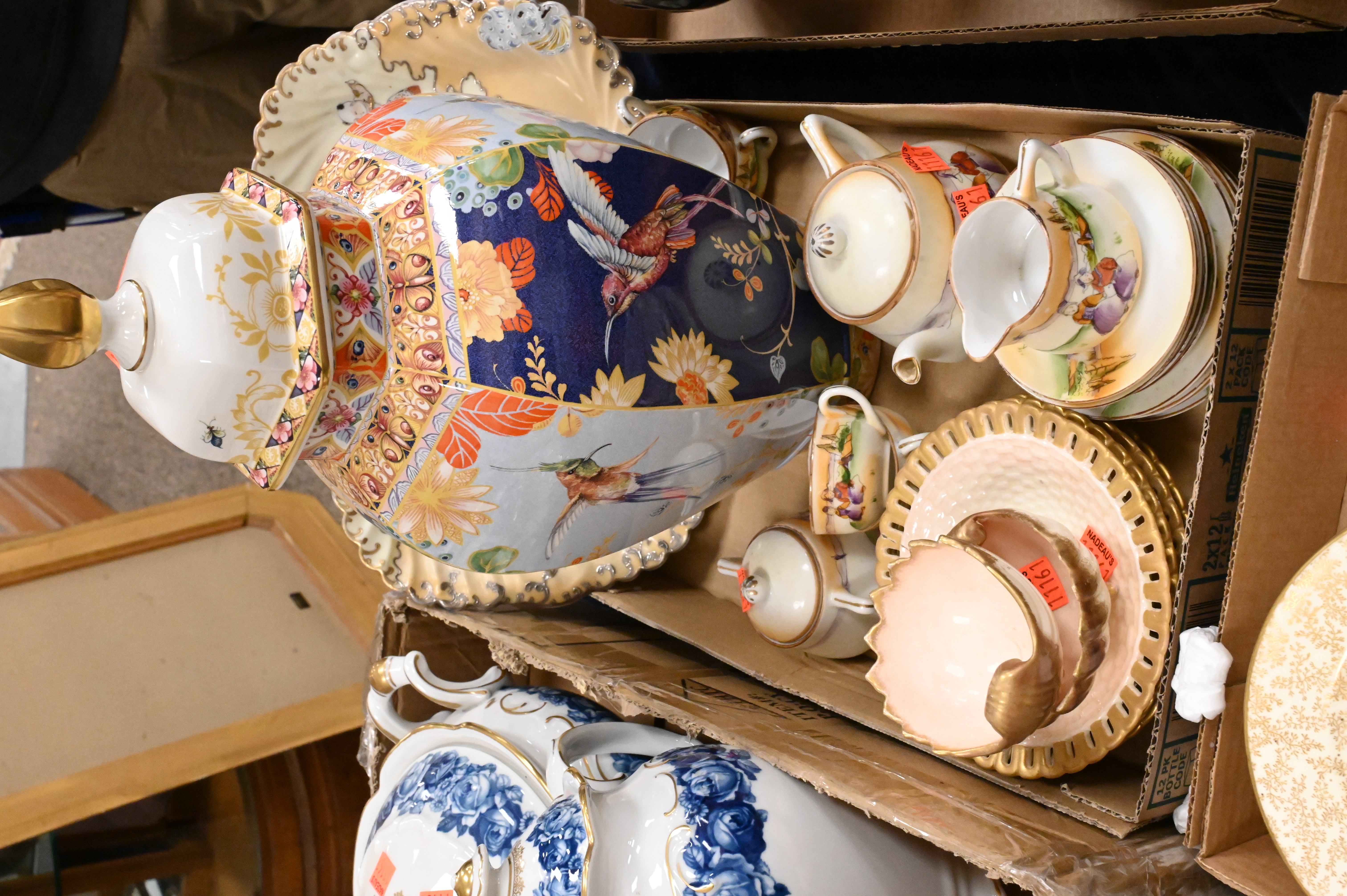 including lidded tureens, floral-decorated plates, teapot, cabbage plates and assorted serving pieces, polychrome floral-decorated plates, scalloped-edge saucers, Spode Imari style jar, Nippon tea set etc…