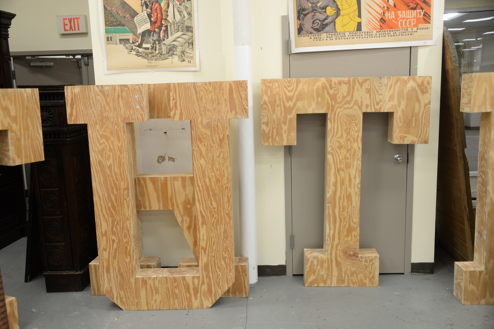 Tao Rey (American, b. 1978), untitled (word jumble, TRUTH), 2007; wood, nails, and glue, 79″ x 72″ x 72″. Provenance: Purchased from and exhibited at Reunion, The Fireplace Project, East Hampton, New York, July 11th – July 28th, 2008.