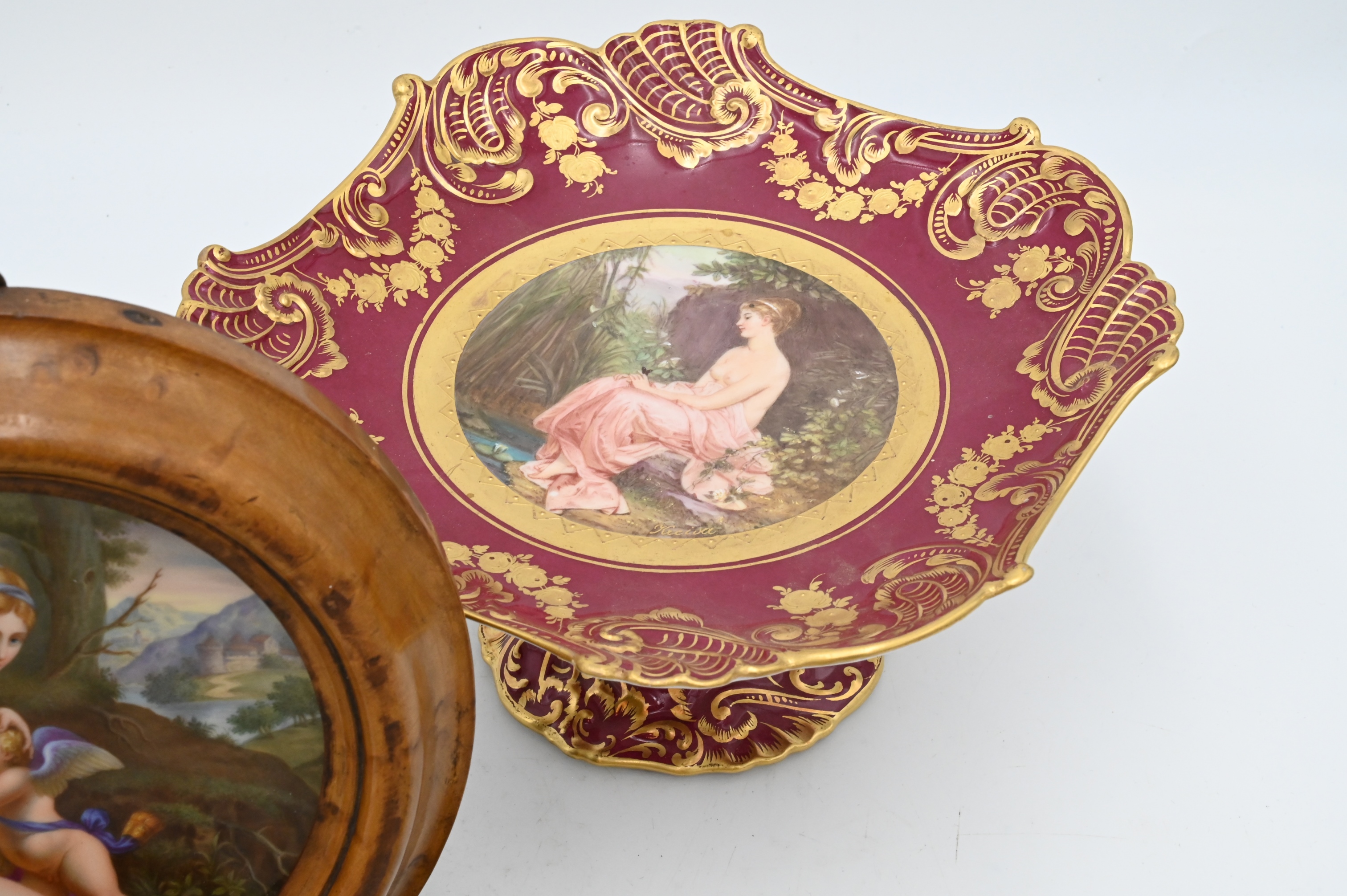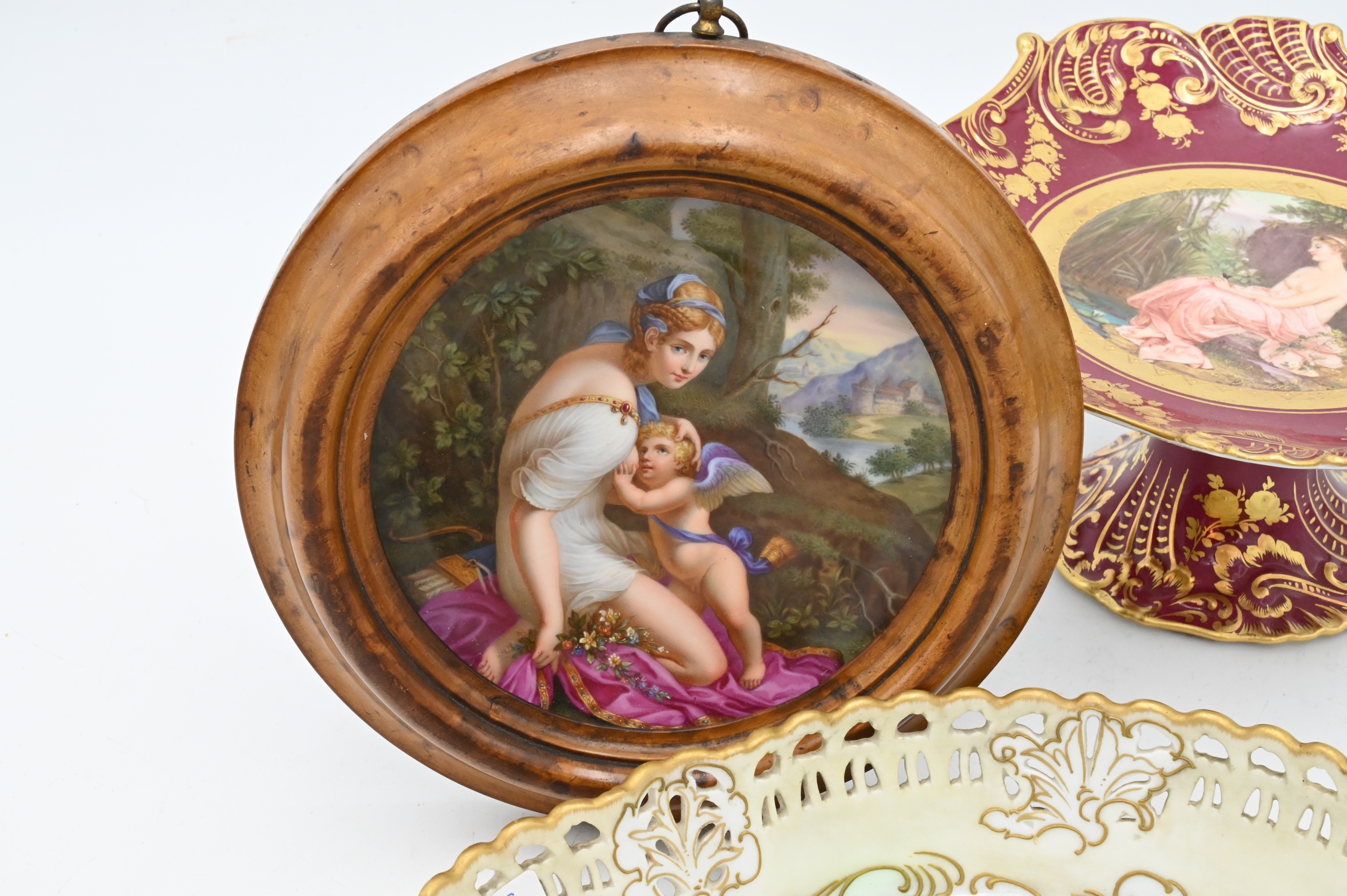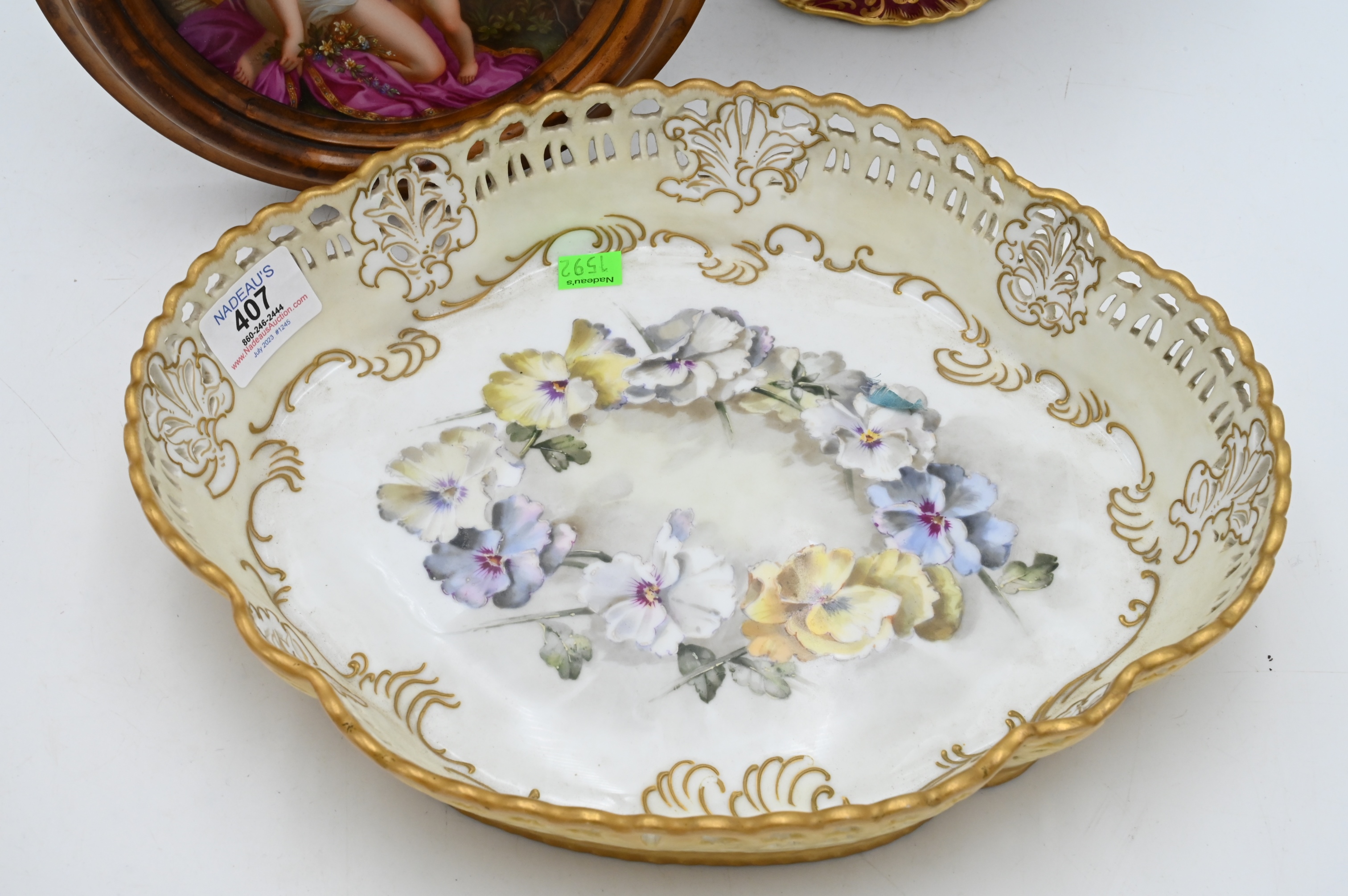 Three Piece Hand Painted Porcelain Grouping, to include, two Royal Vienna, signed plate and one Limoge hand painted tray, 18 inches x 12 1/4 inches