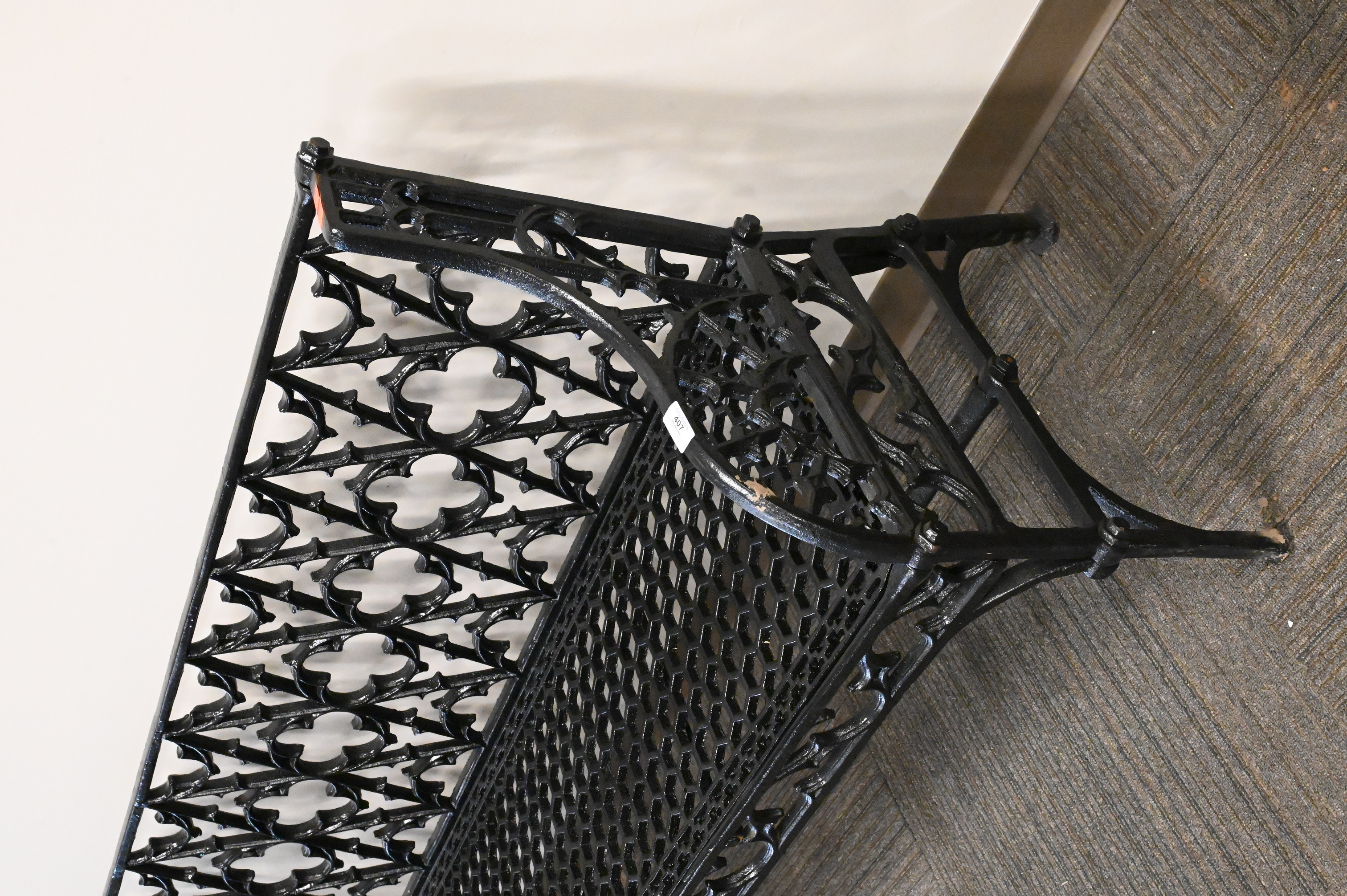 Lot 407: Victorian Iron Bench having Openwork Gothic Design