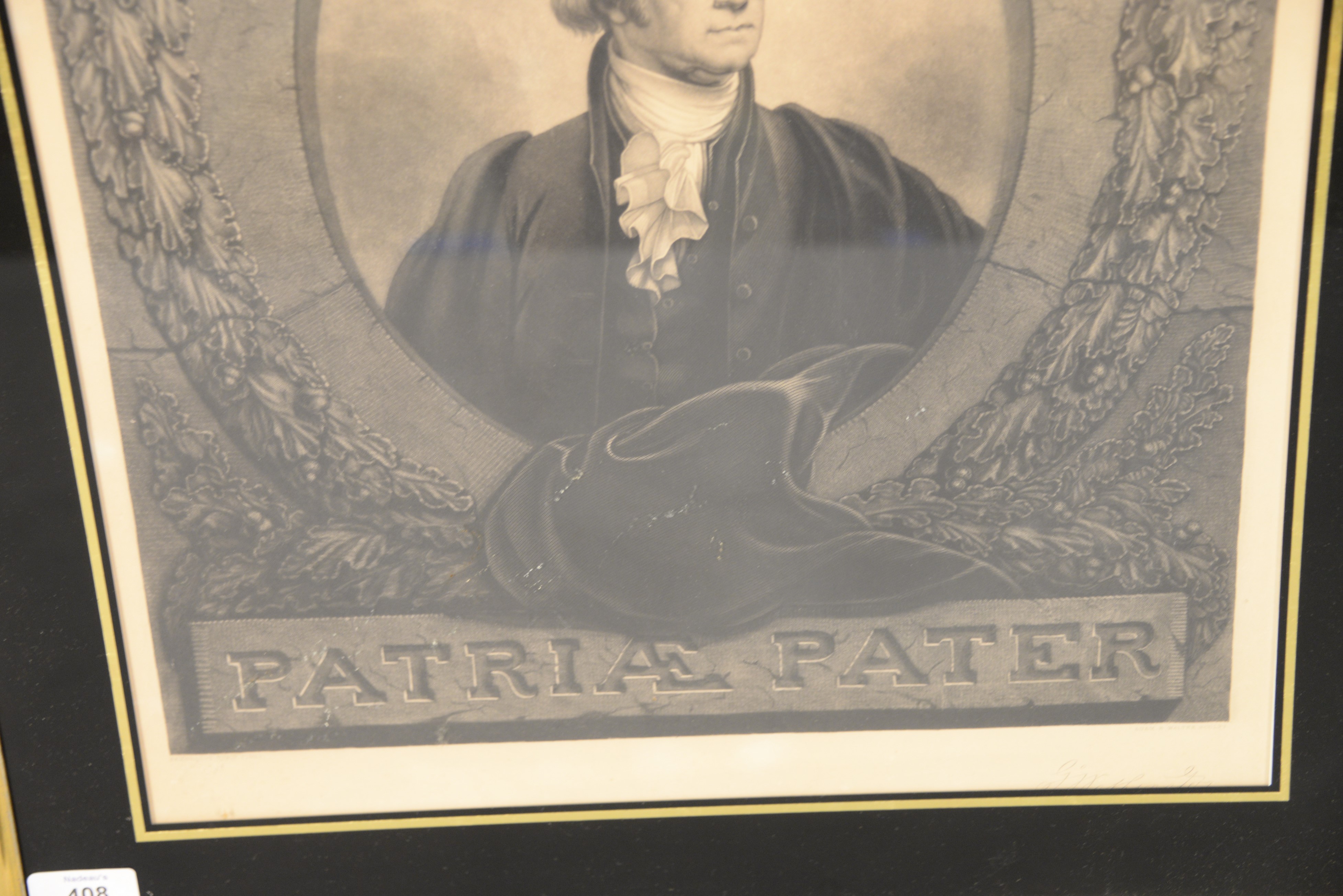 Lot 408: After Rembrant Peale, engraving, Patriae Pater George Washington Parthole portrait, signed lower left Rembrandt Peal, signed lower…