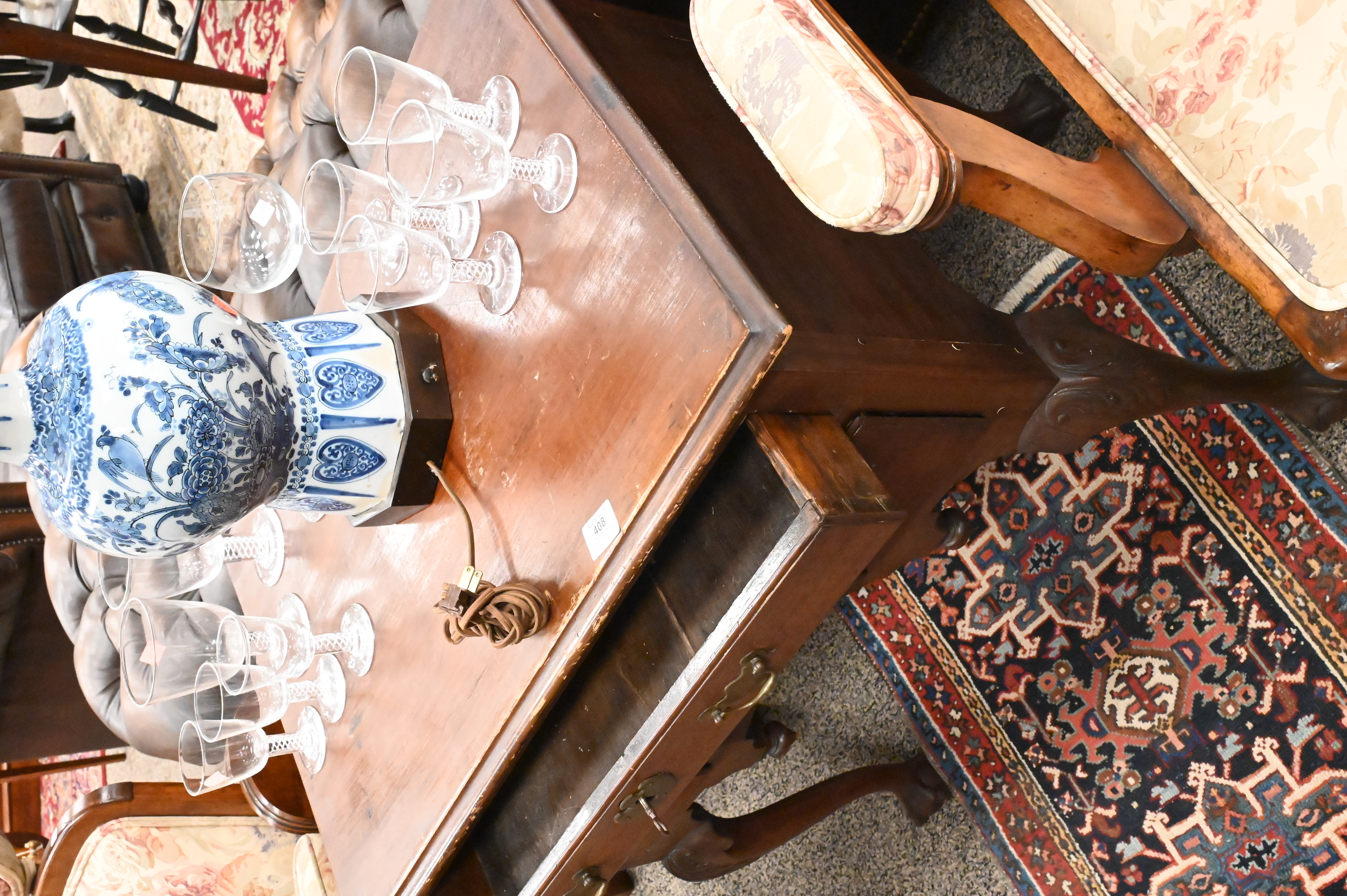having fan carved center drawer, raised on cabriole legs, ending in claw and ball feet, partially made using older elements
