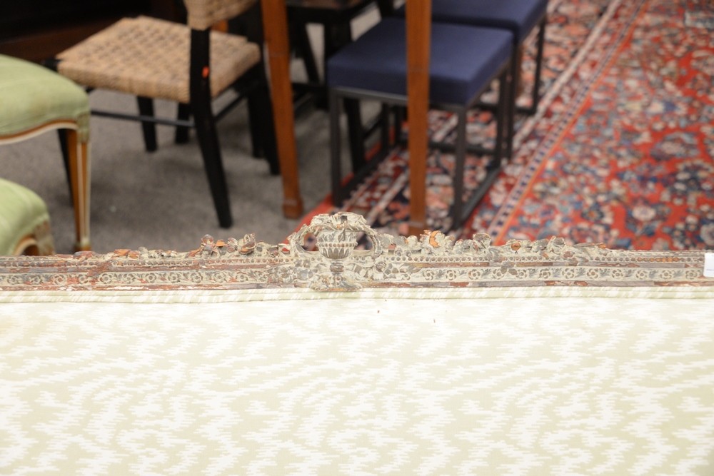 Louis XVI Settee, having carved frame, height 35 inches, length 47 inches, depth 29 inches.