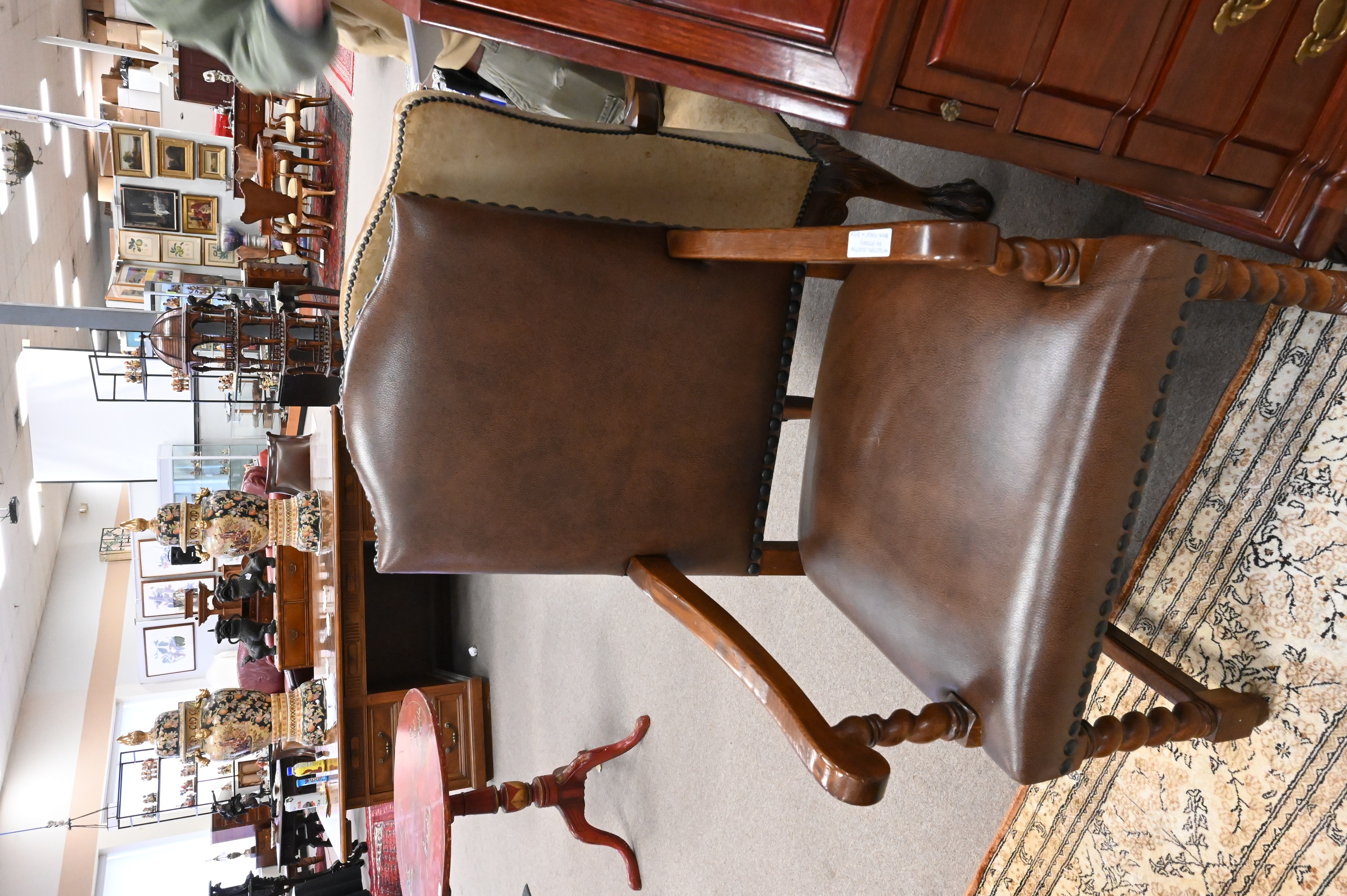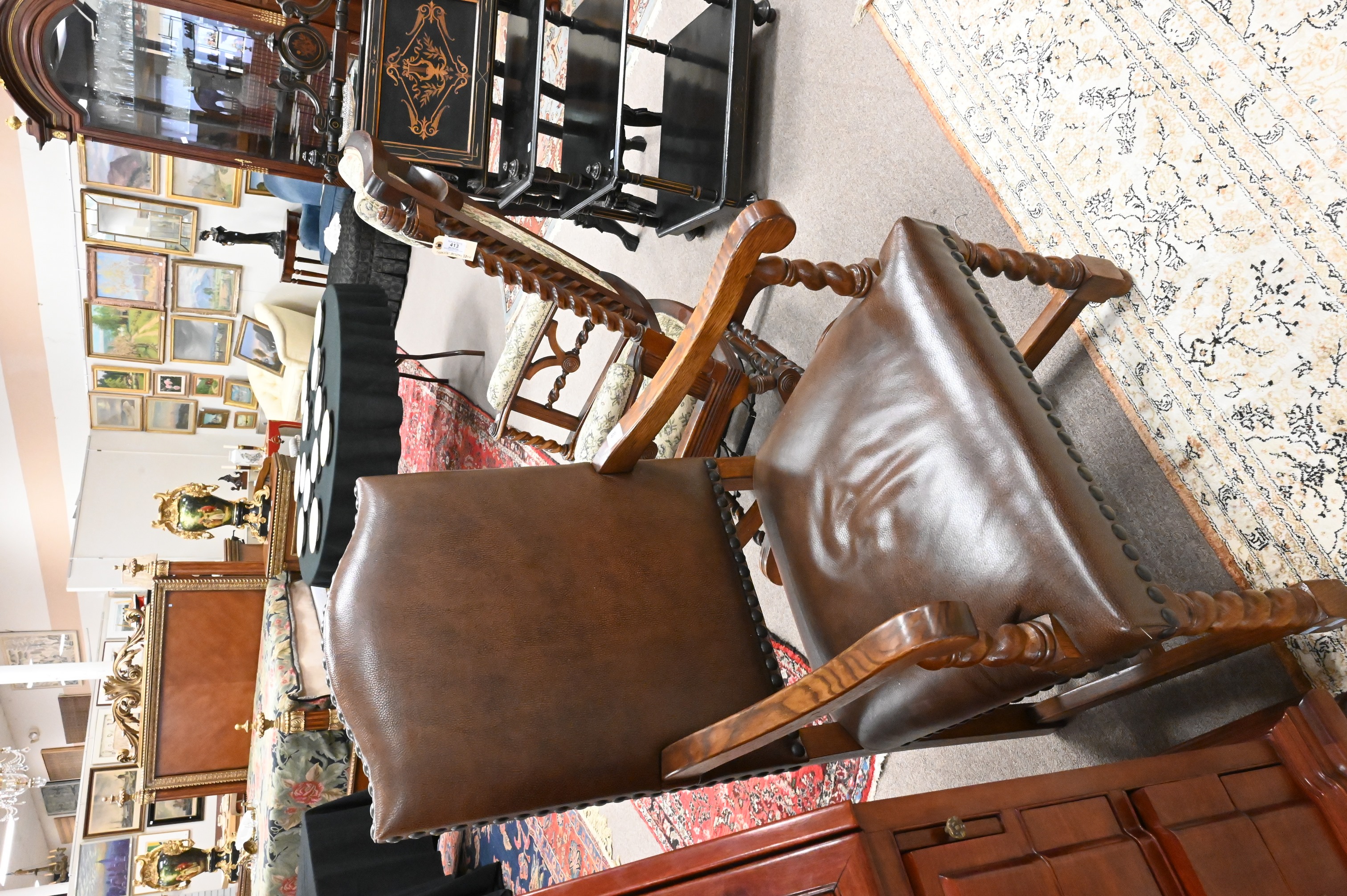 having leather upholstery and oak frames