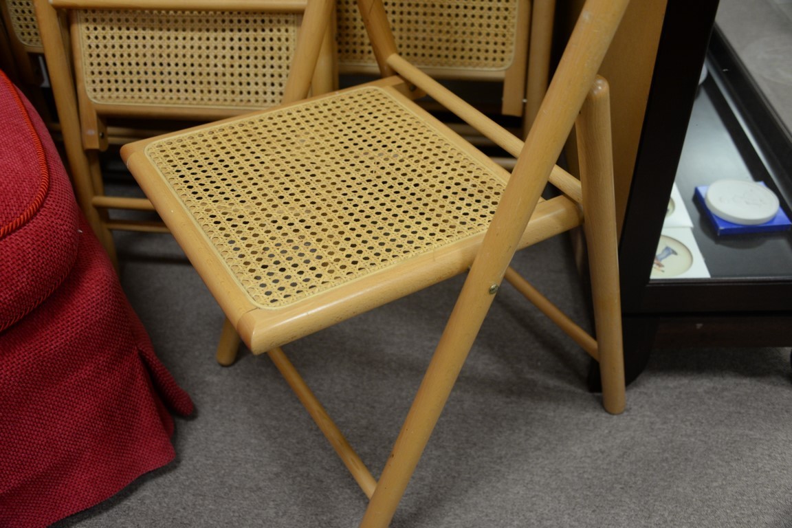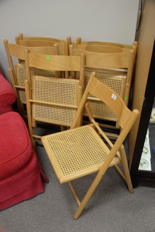 Lot 408: Set of eight maple folding chairs having caned seats.