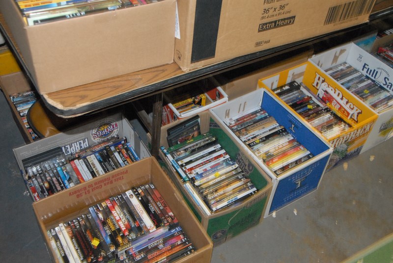Twenty-six boxes of DVDs, some new.