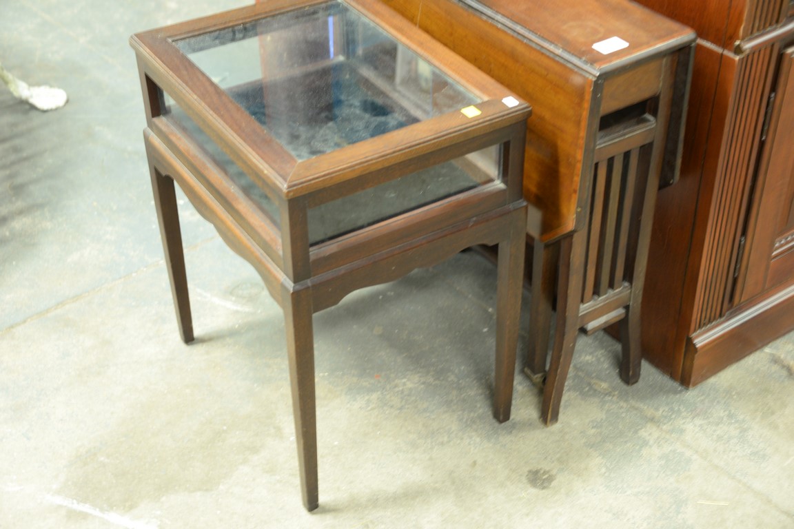 Two piece lot to include small drop leaf table and a curio cabinet.