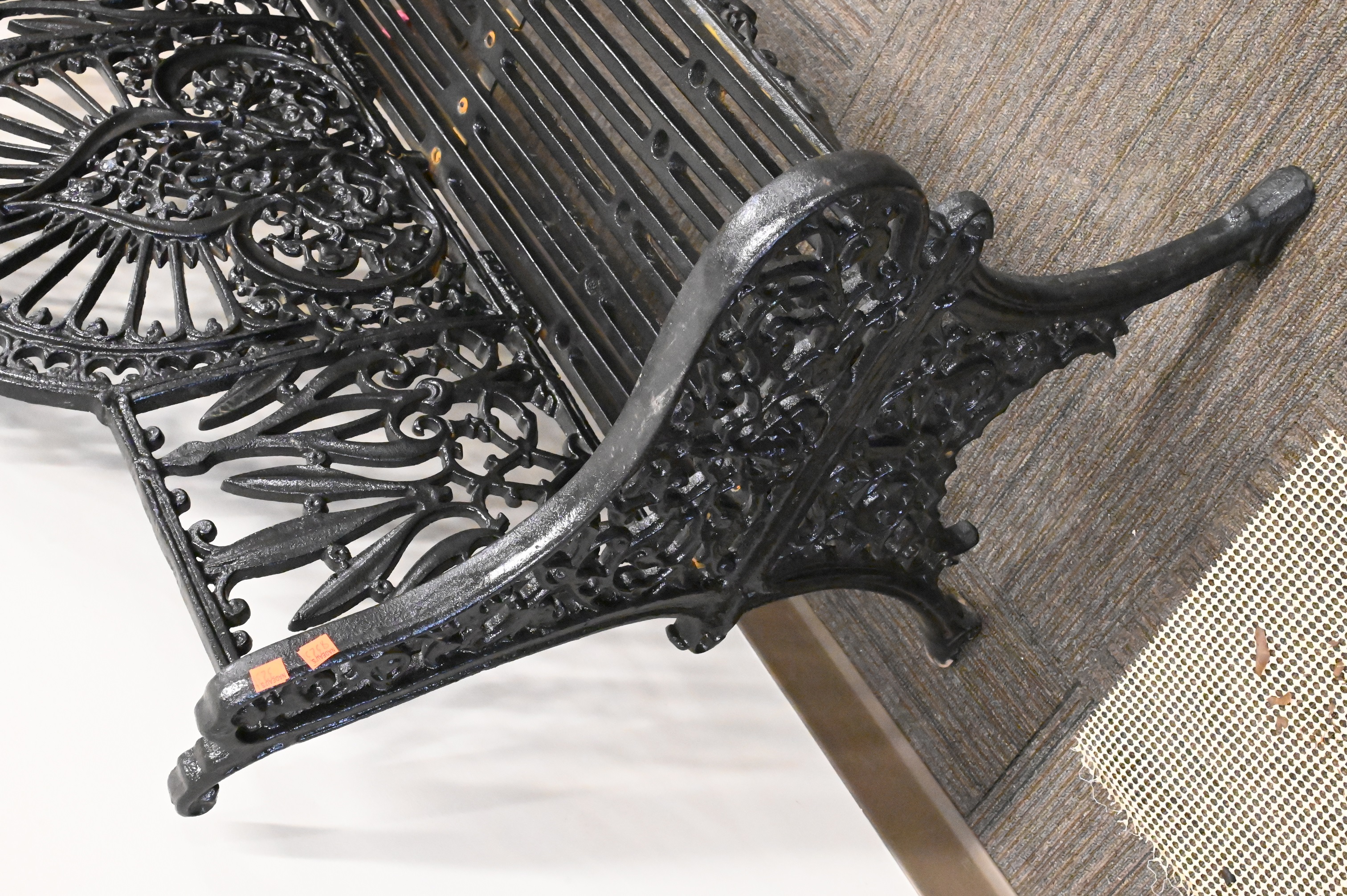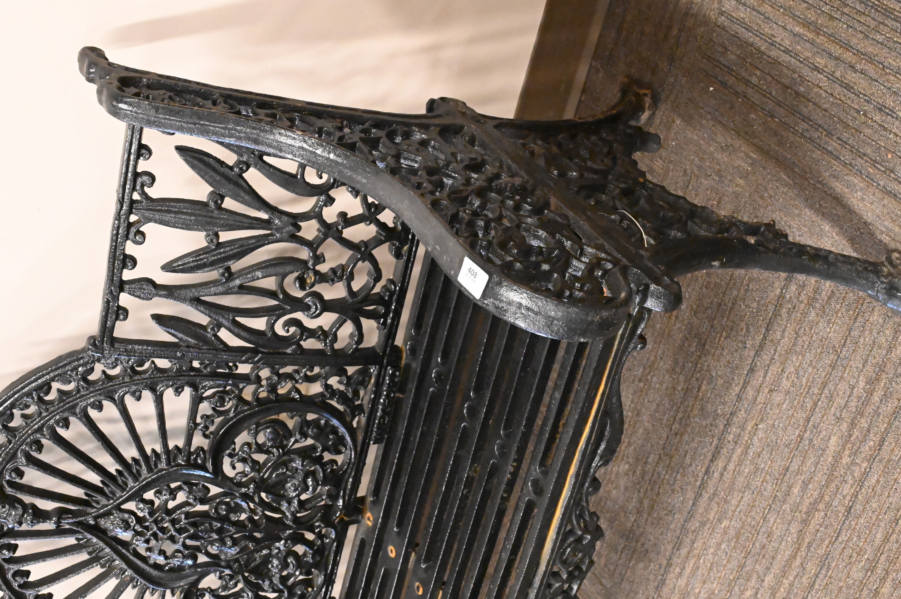 Lot 408: Victorian Iron Bench having Foliate and Leaf Back Signed Pierce Wexford
