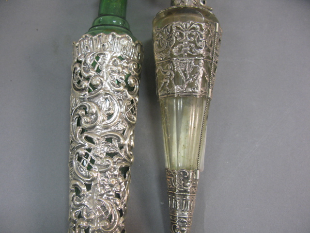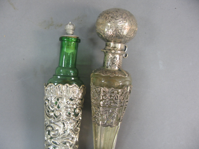 Lot 408A: Two large scent bottles with silver overlay, one