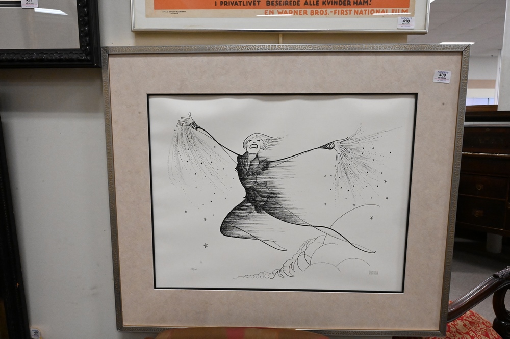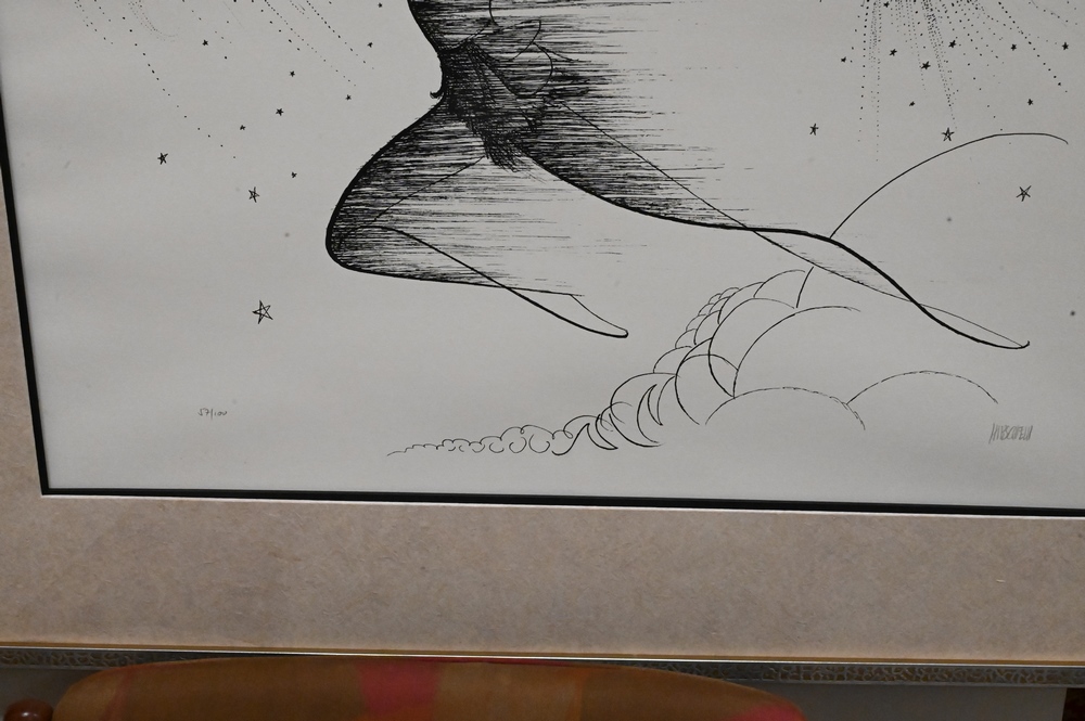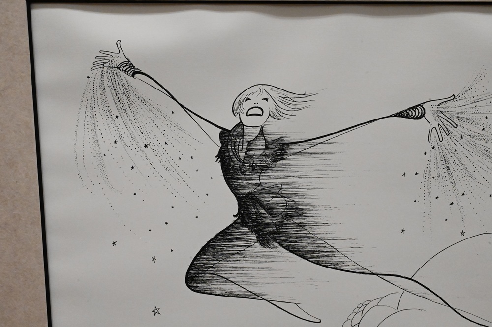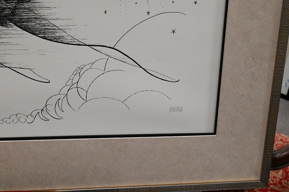 Lot 409: Al Hirschfeld Etching of Cathy Rigby as Peter Pan, pencil signed lower right Hirschfeld, edition 57/100, 19 1/4″ x 23 3/4″.