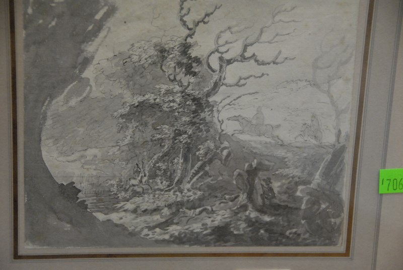 Dirk Maes 1659-1717 LANDSCAPE pen and ink grey wash on paper unsigned 8 1/2 x 7 1/2