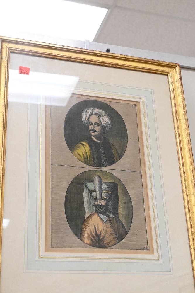 Lot 409: Group of Four Framed Engravings of Turkish Headdresses, largest plate size 12 x 7 1/4 inches, frame size 16 x 10 3/4 inches.