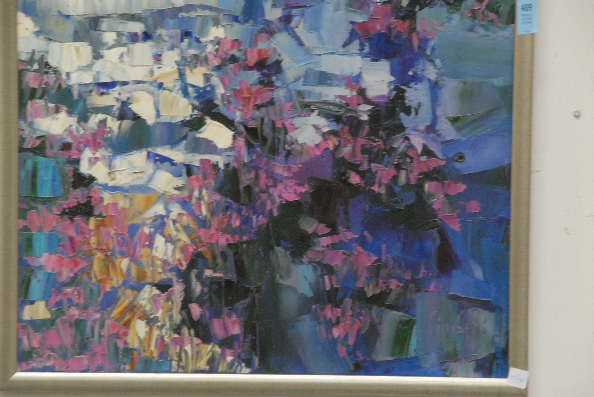 Lot 409: Oil on canvas Nicola Simbari 1927 with flowers, 25 x 21