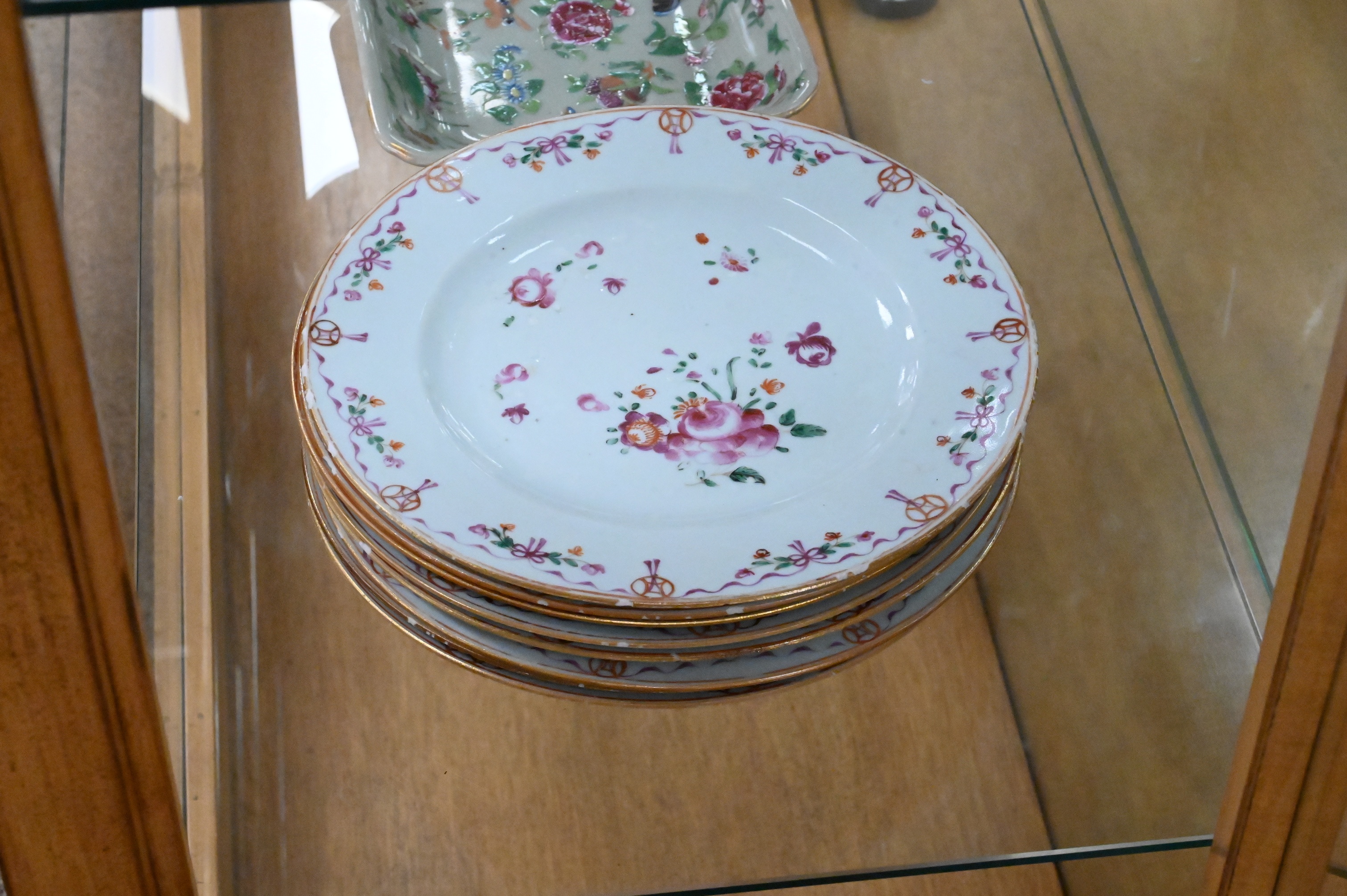 Lot 409: Set of Eight Chinese Famille Rose Plates with Deer and Floral Decoration