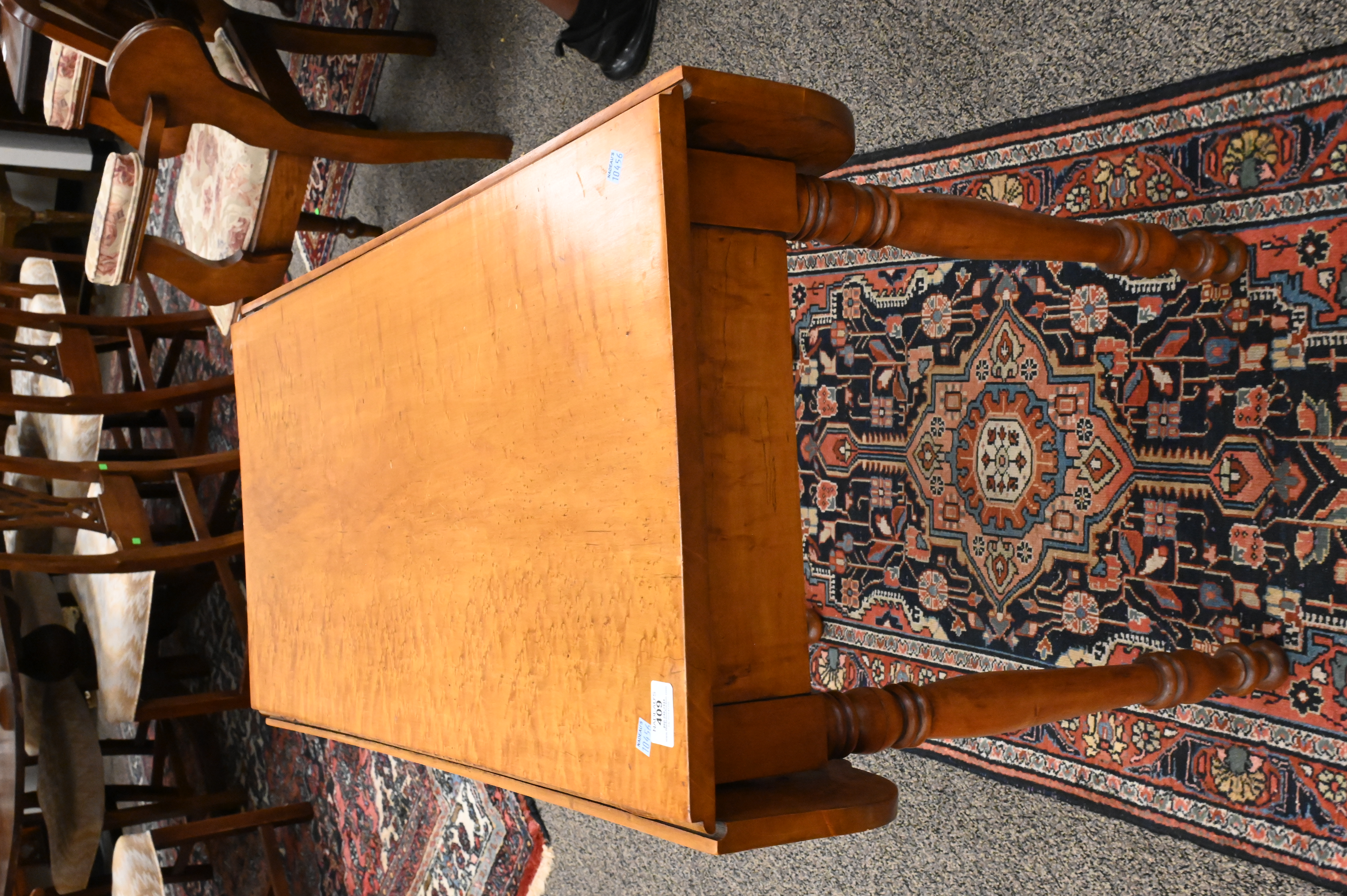 Lot 409: Sheraton Curley Maple Demilune Table