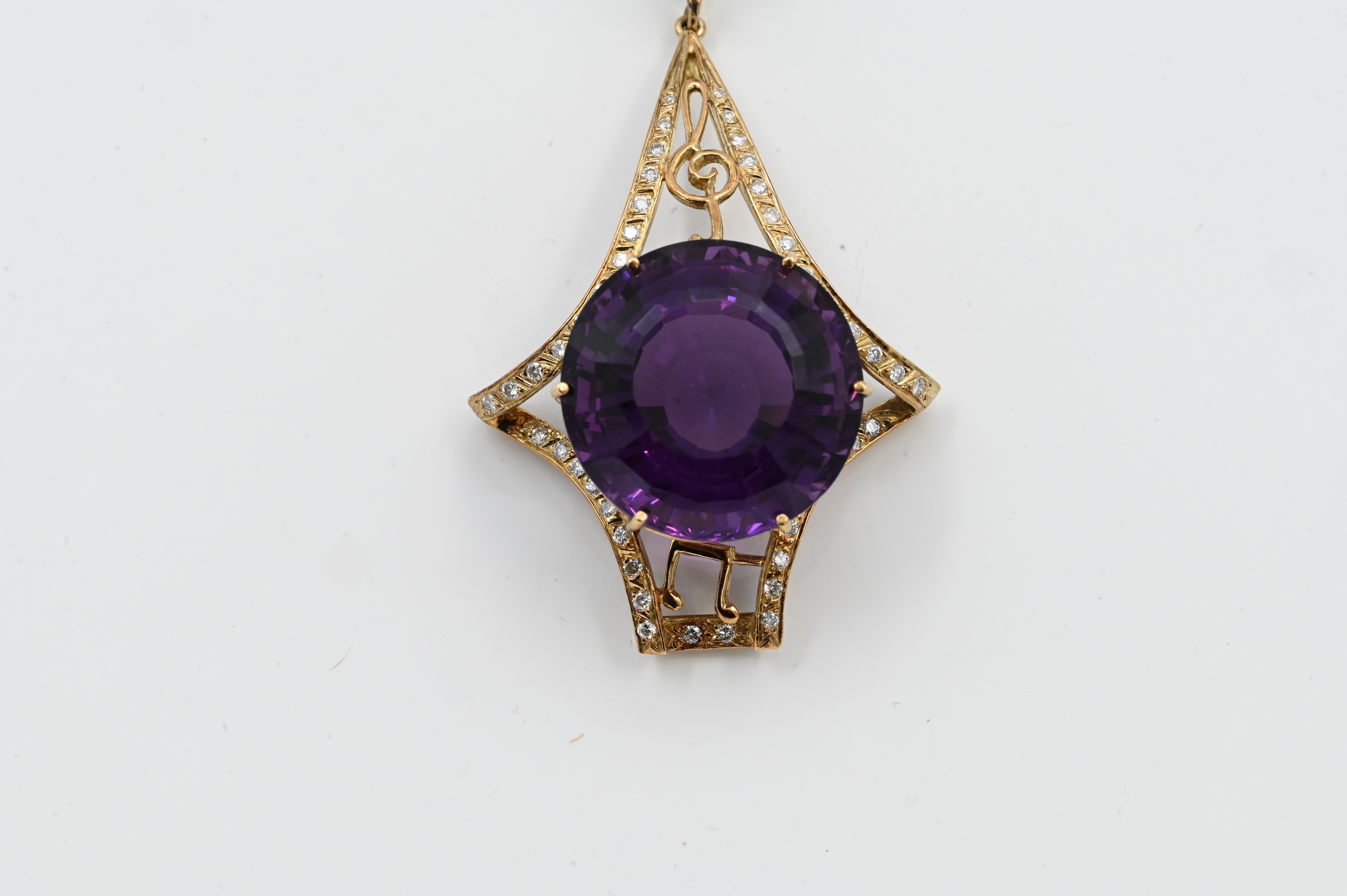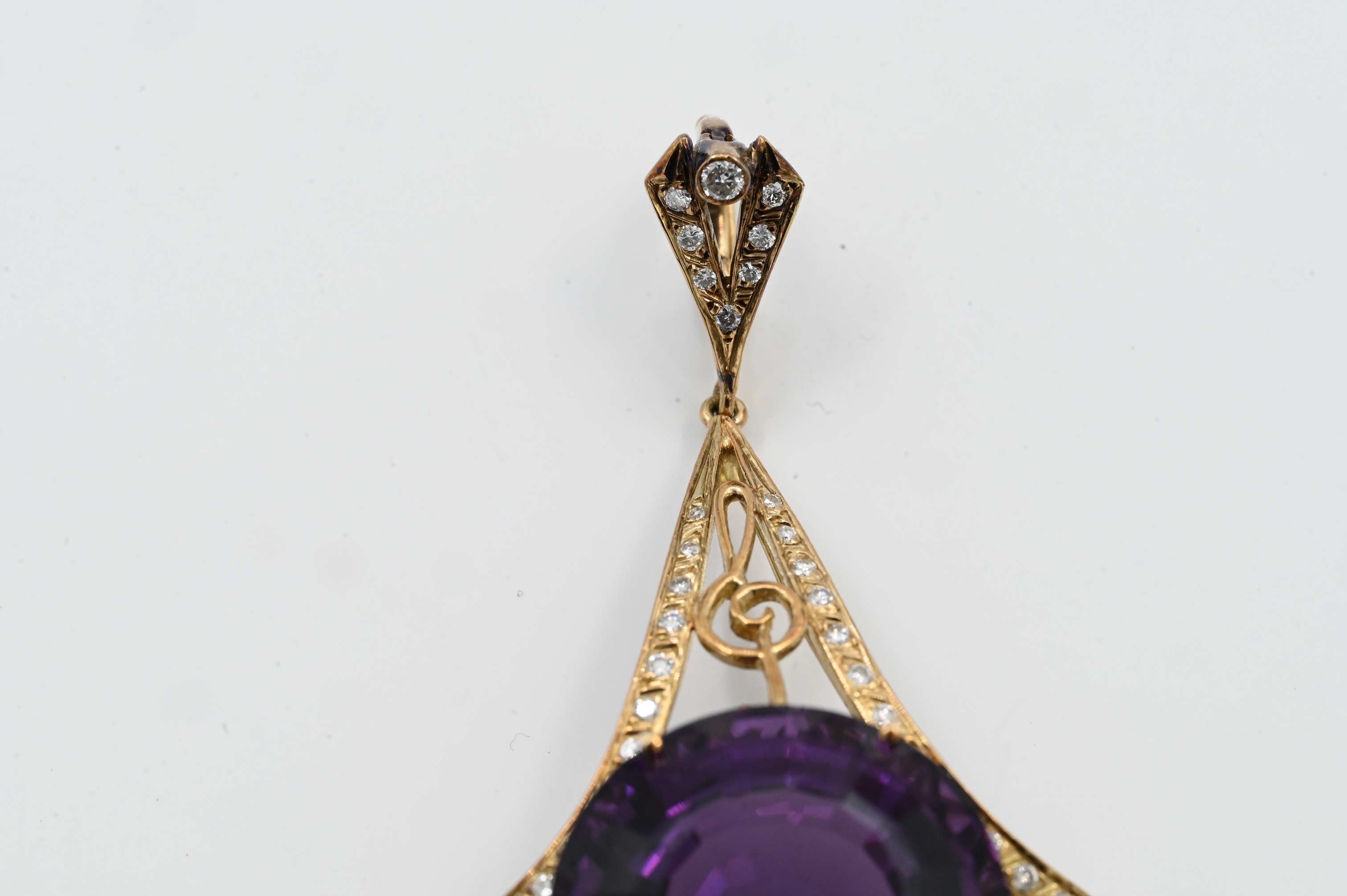 Lot 40F: 14K Yellow Gold Diamond and Amethyst Pendant