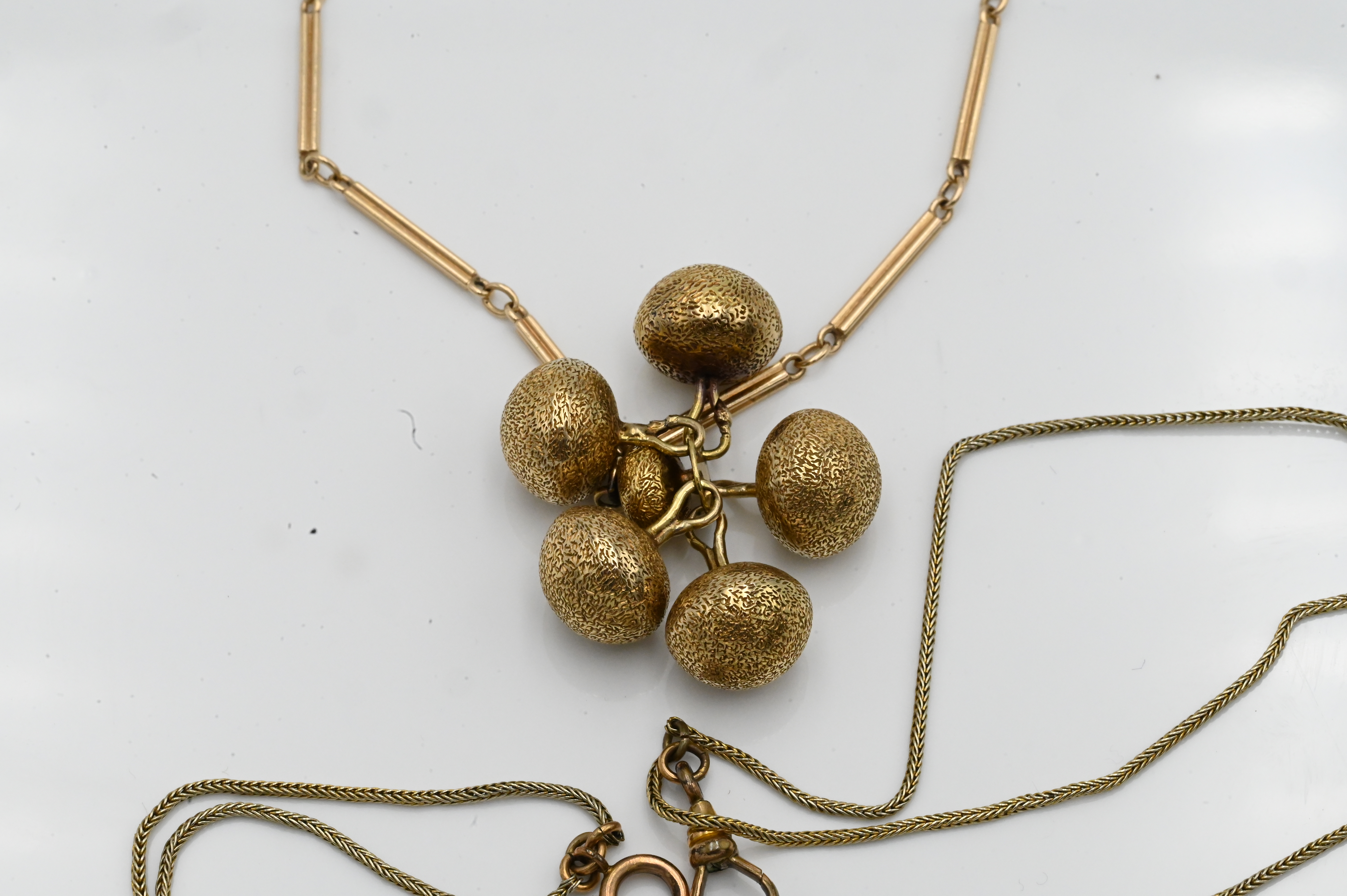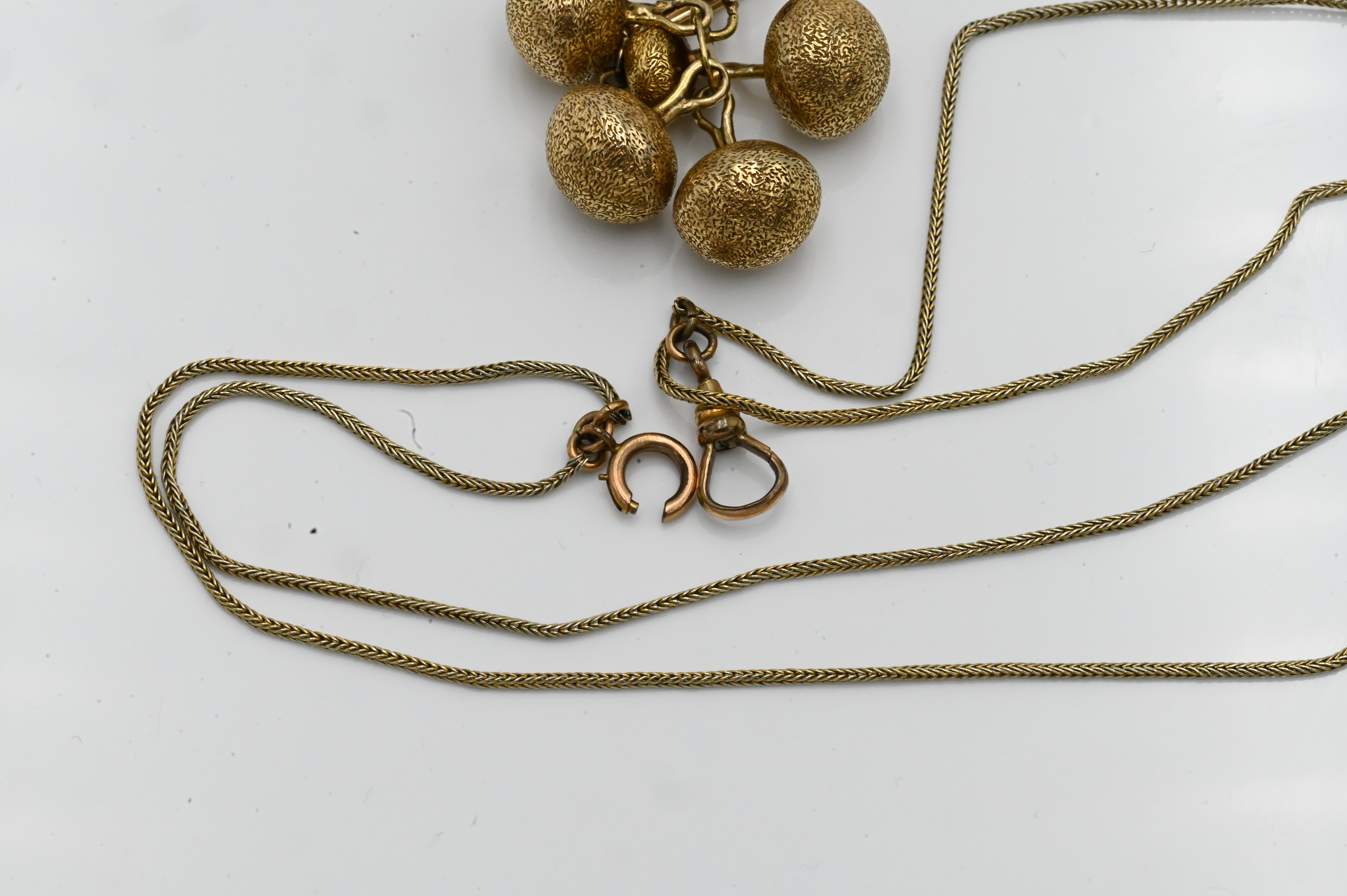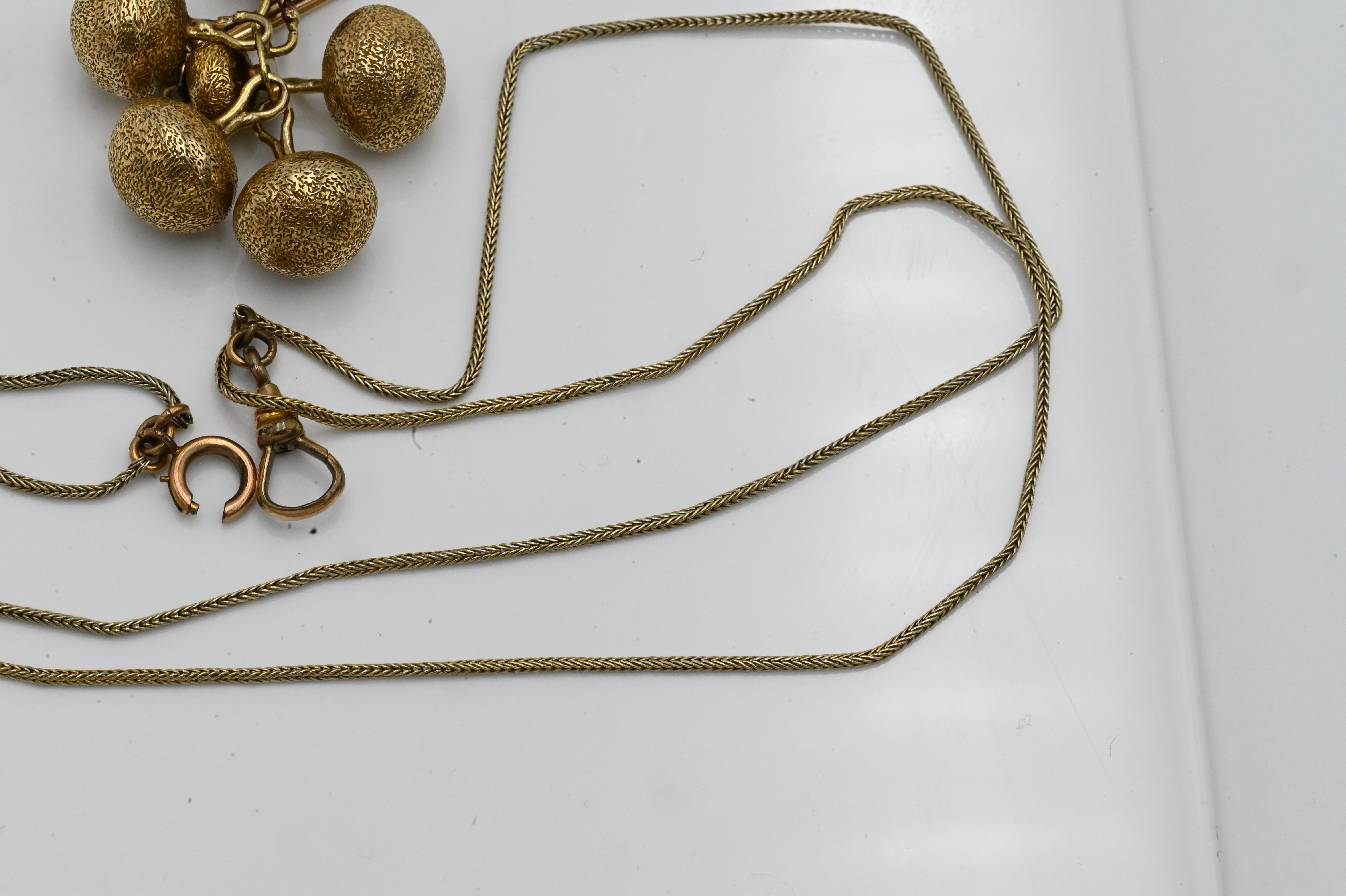 14 Karat Yellow Gold Watch Chain, having textured spheres, align with a small chain, 22.8 grams.