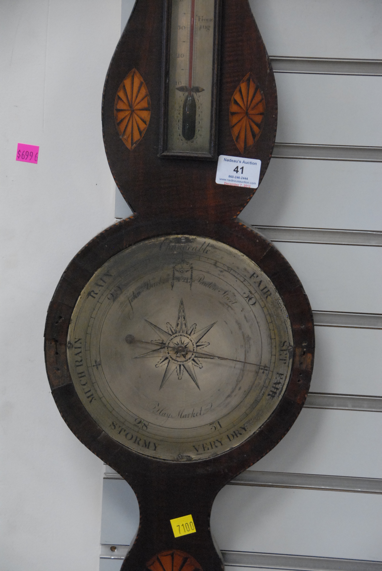 Early inlaid barometer marked John Barben as is, ht. 38in.