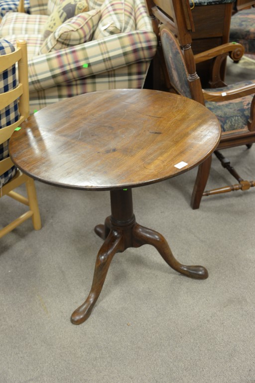 Georgian mahogany bird cage tip top table, dia. 30in.