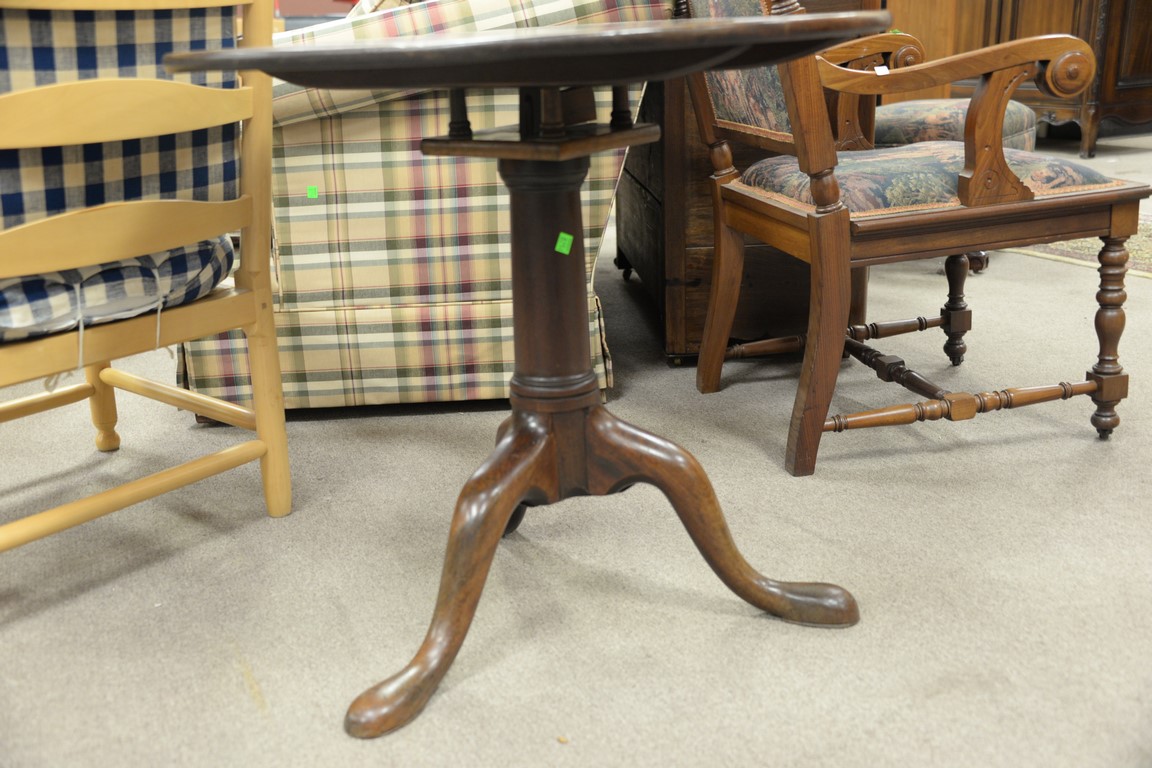 Lot 41: Georgian mahogany bird cage tip top table, dia. 30in.