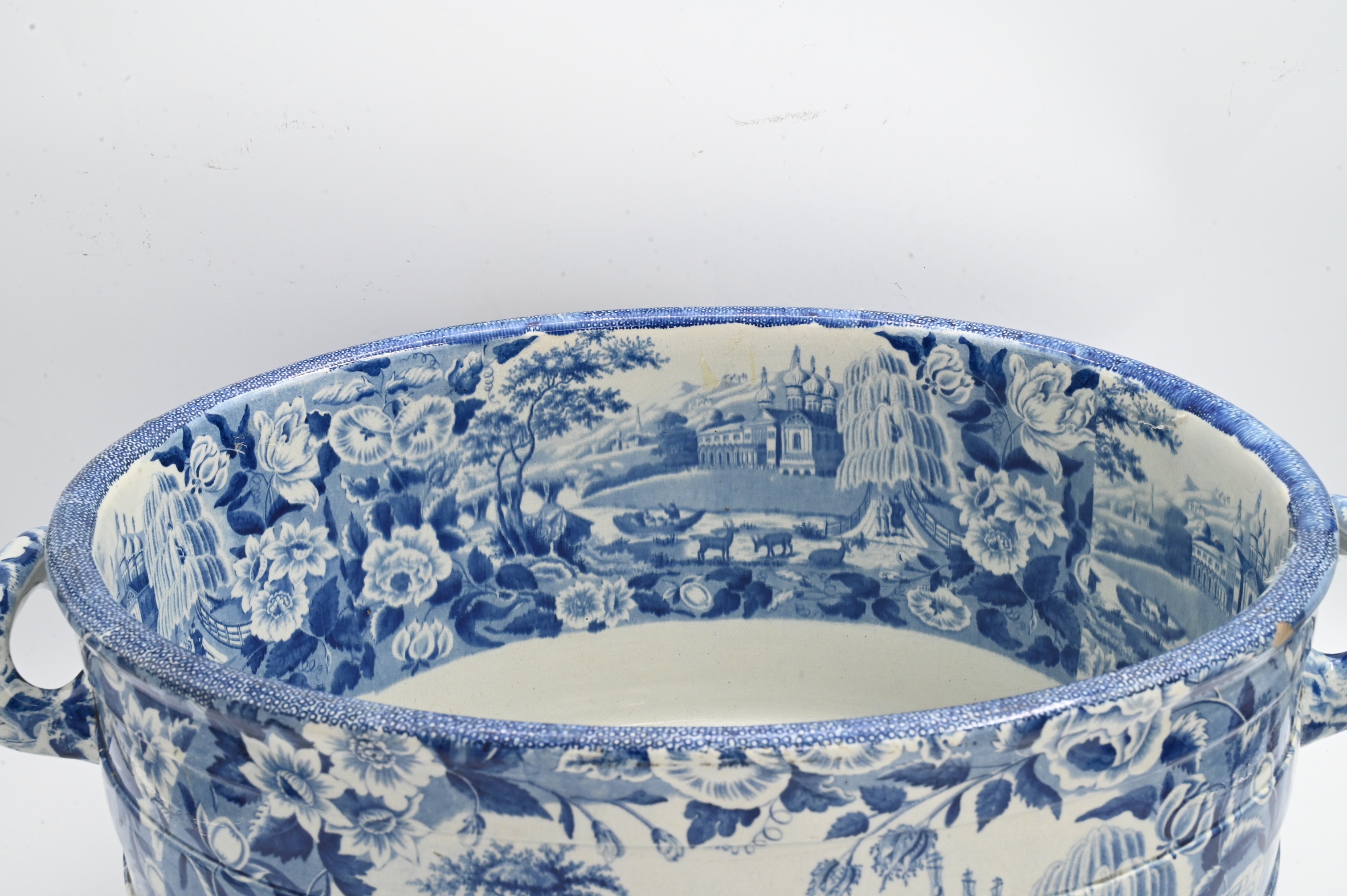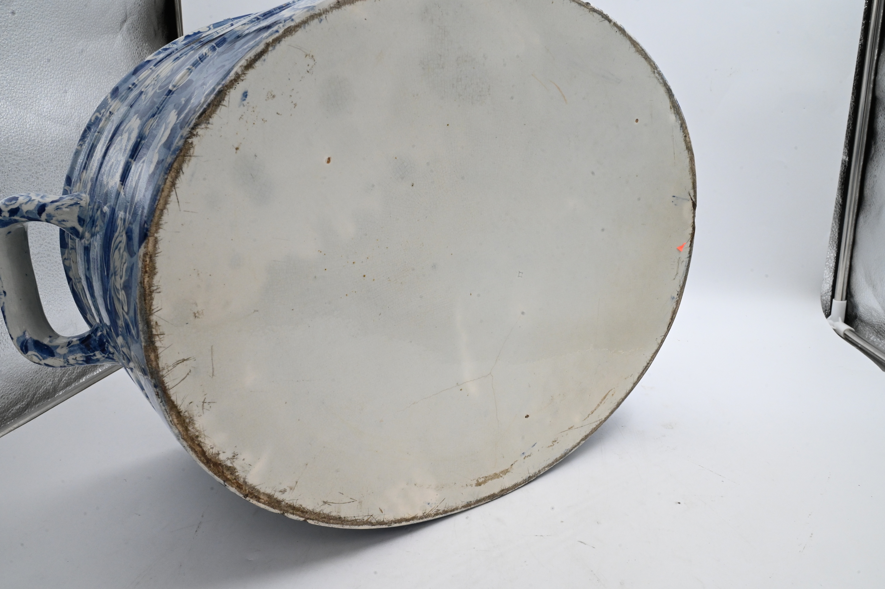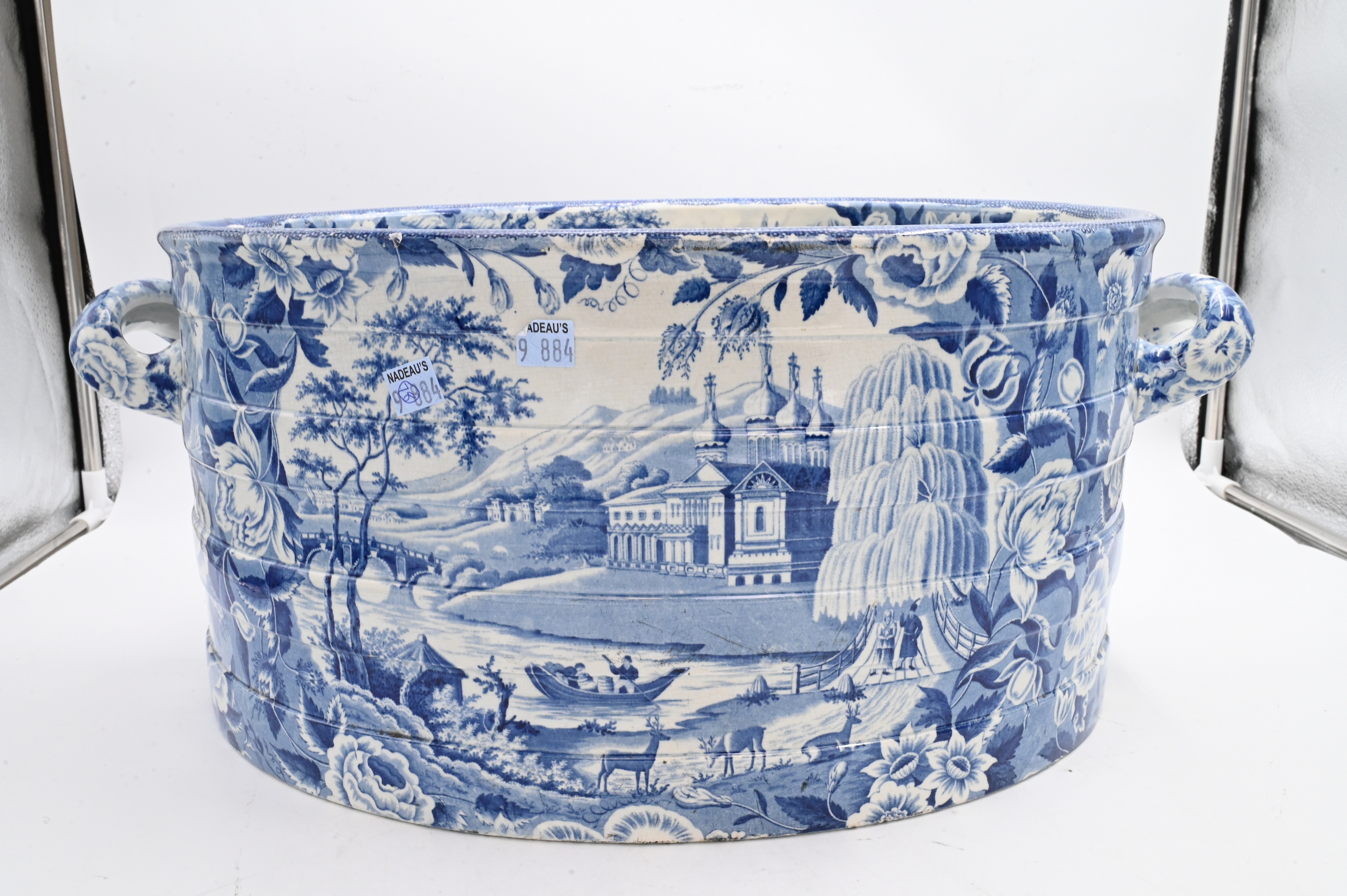 Lot 41: Large Oval Blue and White Chinoiserie Staffordshire Double Handle Foot Bath