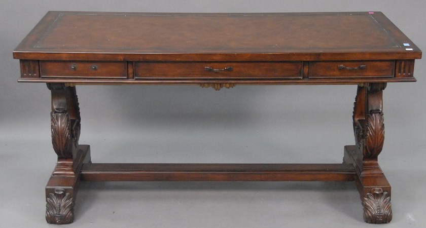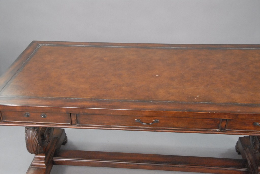 Leather top mahogany contemporary writing table, ht. 30in. lg. 60in.