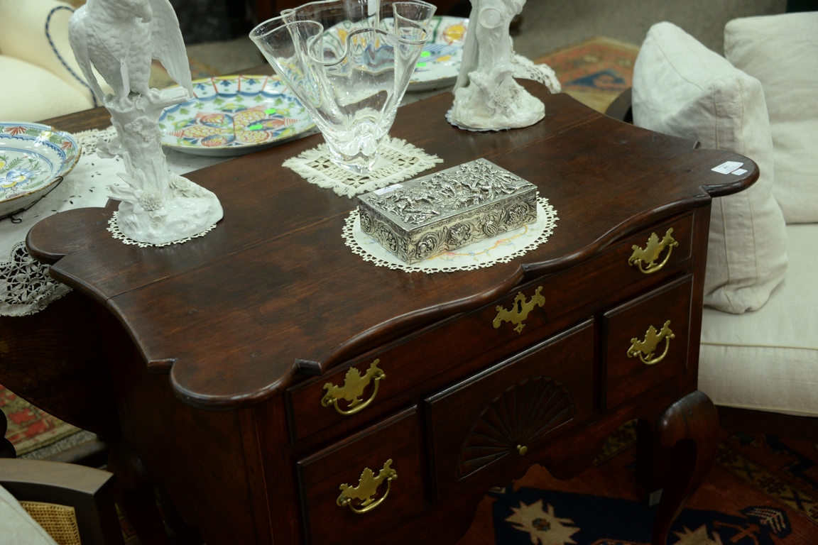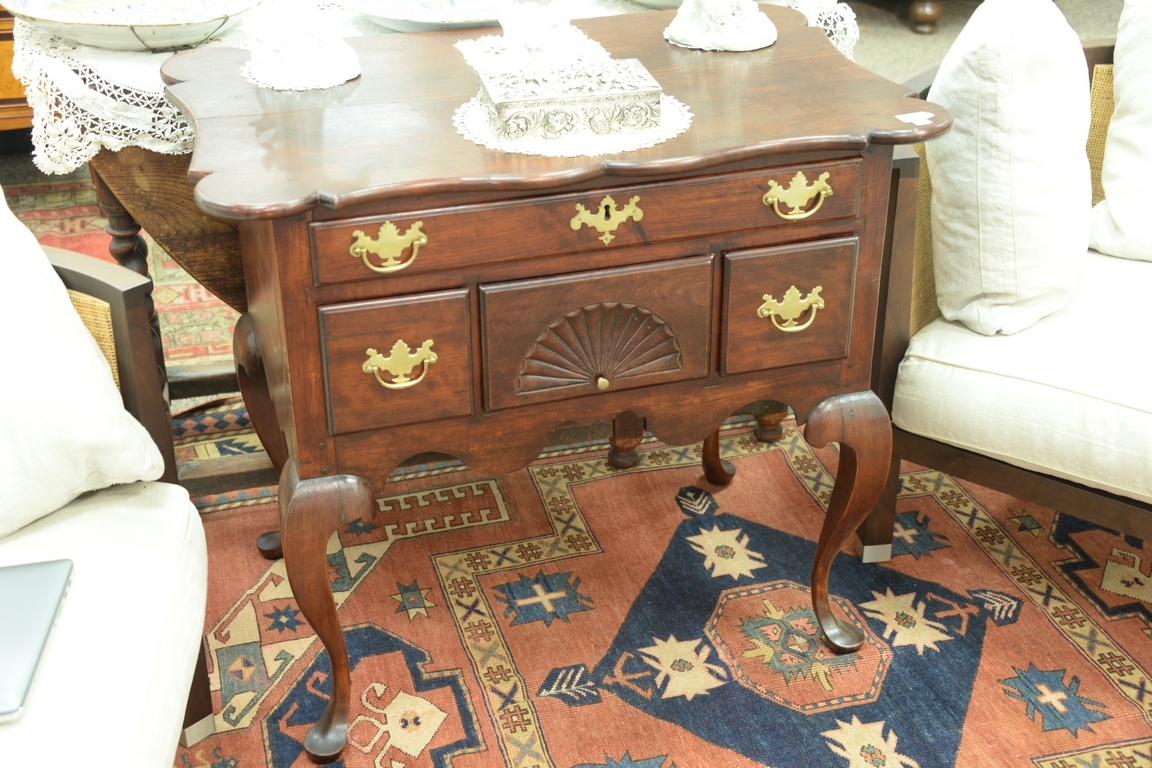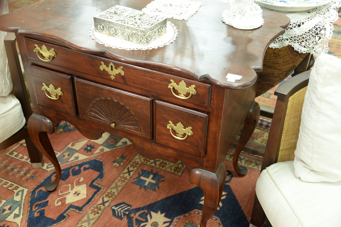 Queen Anne style cherry lowboy with shaped top made up of old wood. ht. 31in., 21 1/2 x 33