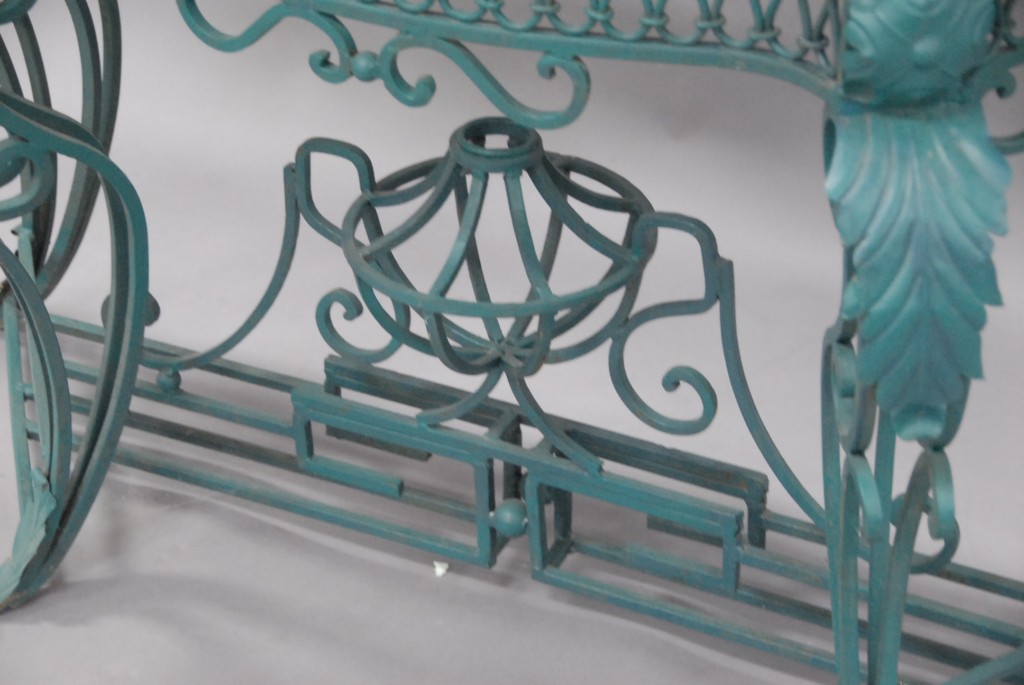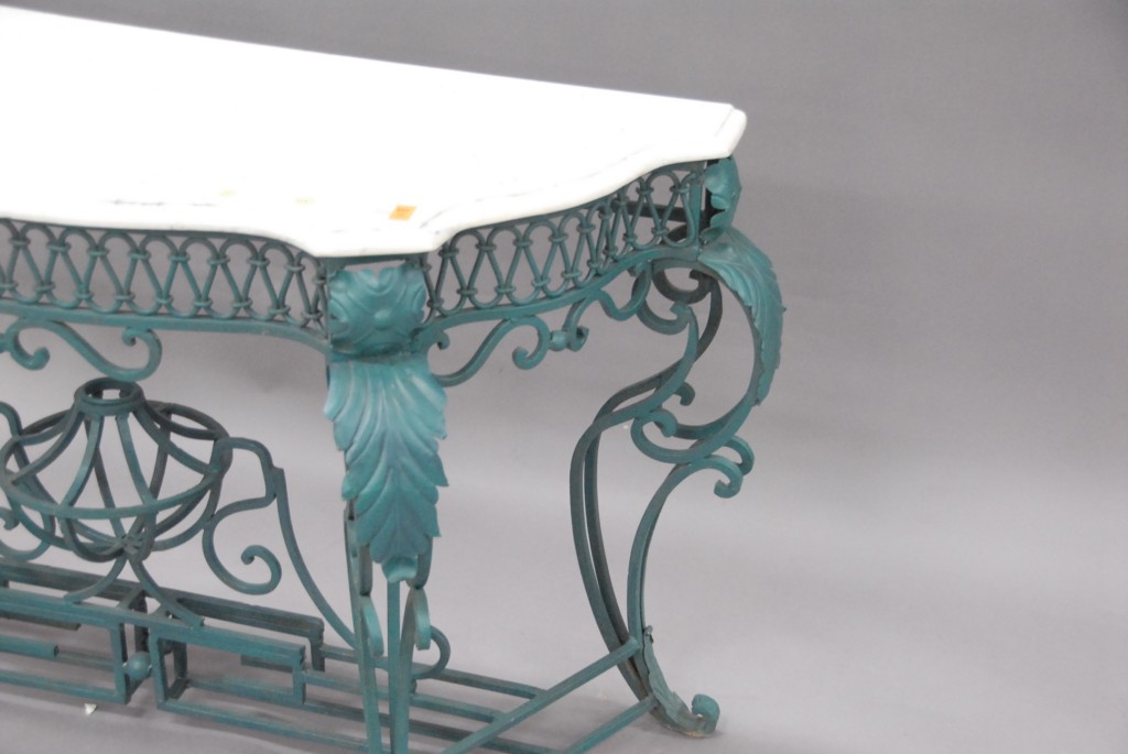 Shaped marble top hall table with iron base.