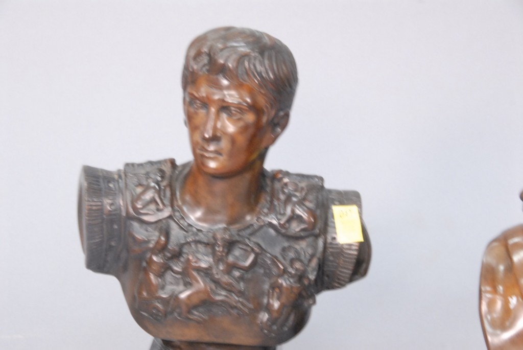 Lot 41: Two bronze busts, both on marble base one base cracked, ht 14 and 14 1/2.