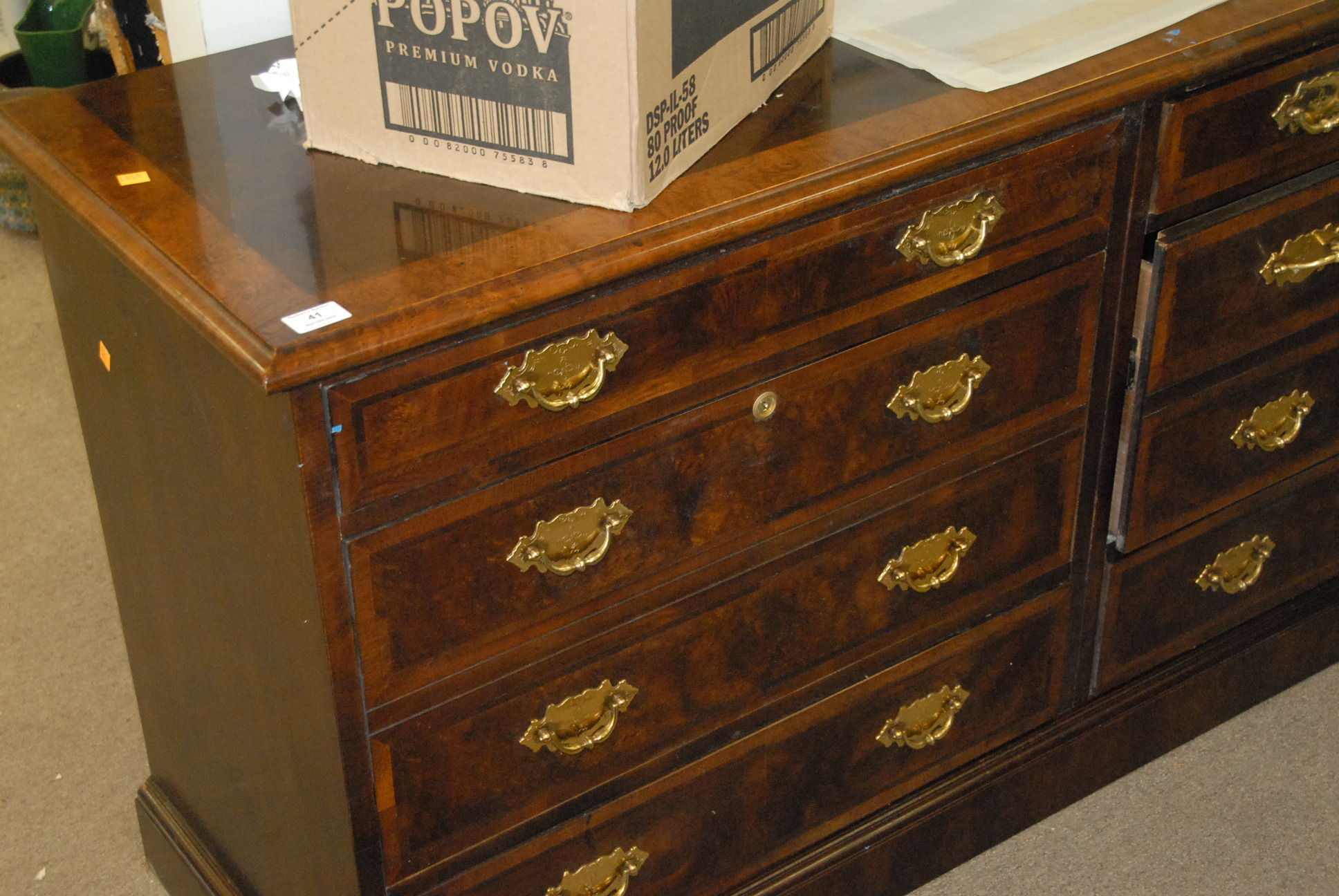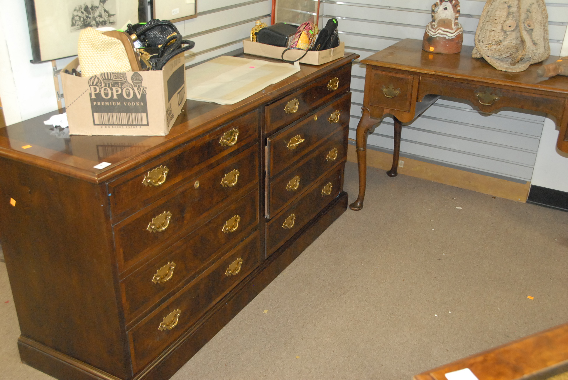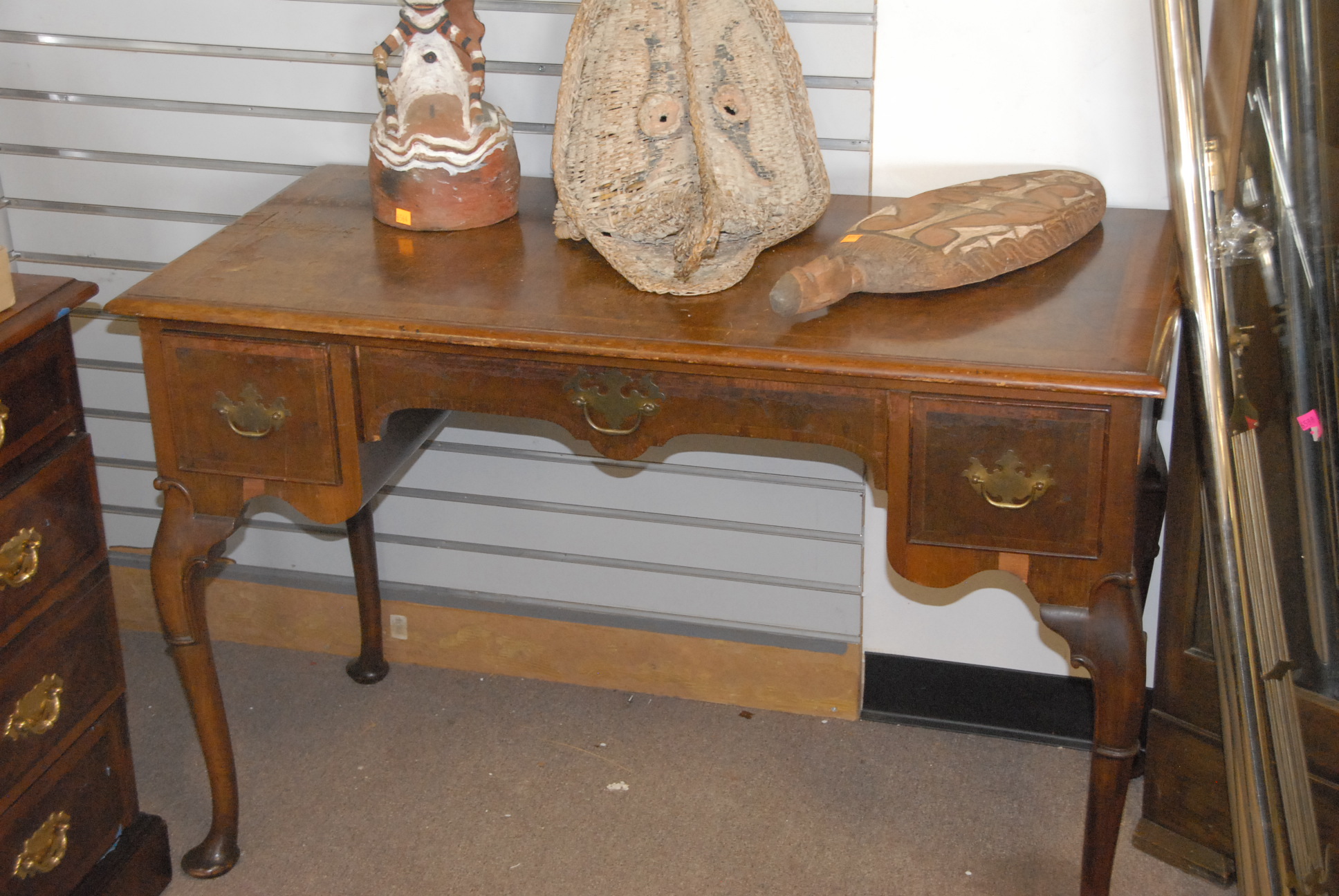 Lot 41: Two burlwood pieces Aston Court by Henredon credenza lg. 3’2, dp. 19 and Queen Anne style desk.